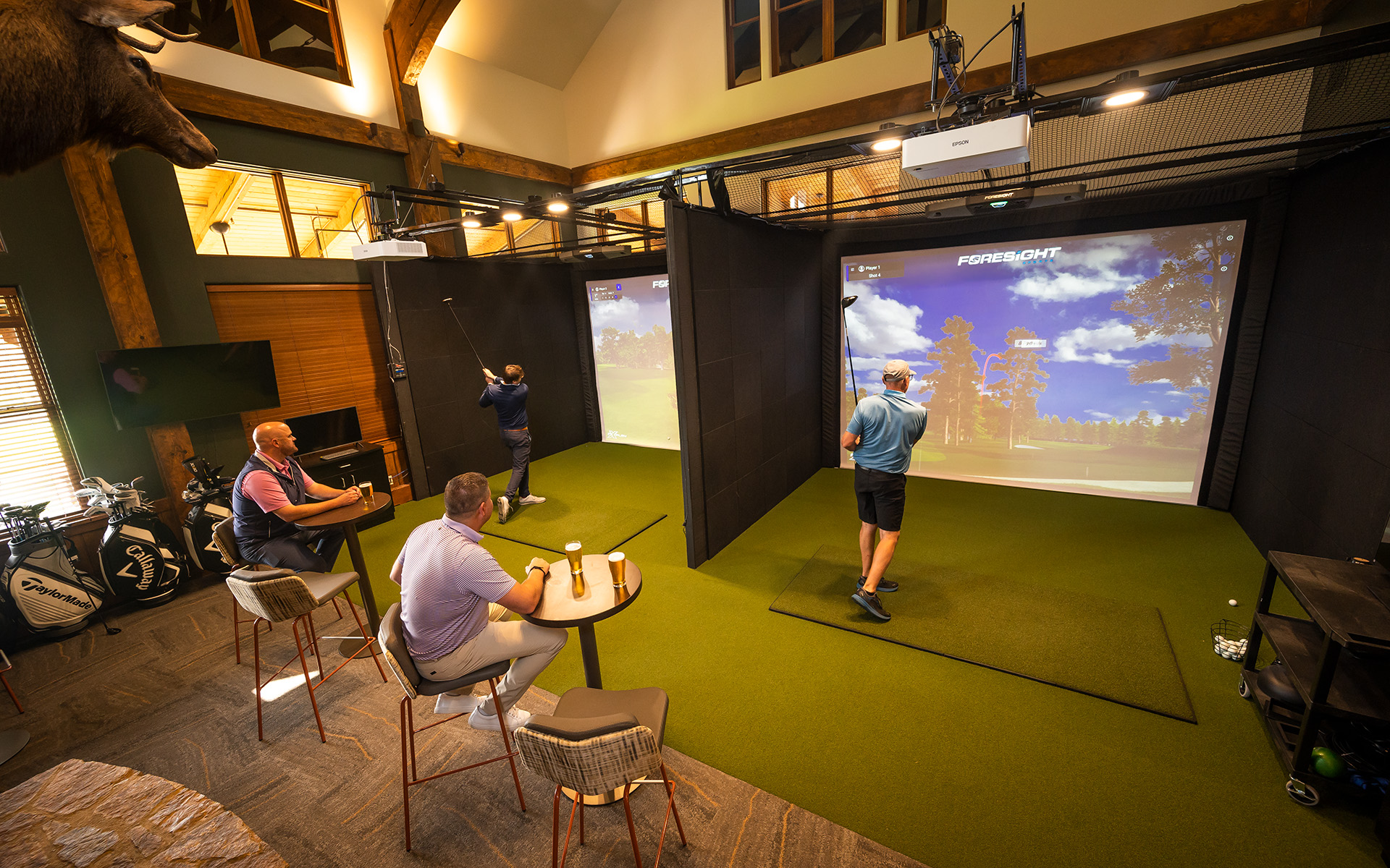 Aspen Glen's innovation extends beyond the course. Step into a world of cutting-edge technology with two golf simulators featuring Foresight Sports. Play legendary courses worldwide, analyze your swing metrics, and sharpen your skills in a relaxed and social atmosphere. The Den also provides the perfect post-game hang out, offering a comfortable lounge area with bar service, a poker table, and shuffleboard, making it the ultimate destination to unwind with fellow golfers.