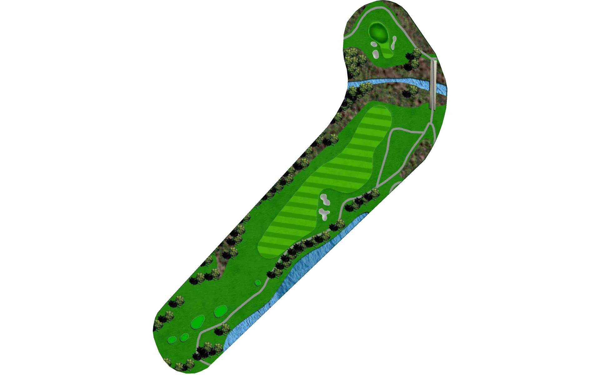 An accurate tee shot down the left side, avoiding the two fairway bunkers, is required on this par 5. On the second shot, players can either lay-up short of the creek about 100 yards from the green or try to attack the elevated green with a fairway wood. A penalty area left and three greenside bunkers will easily punish anything offline.