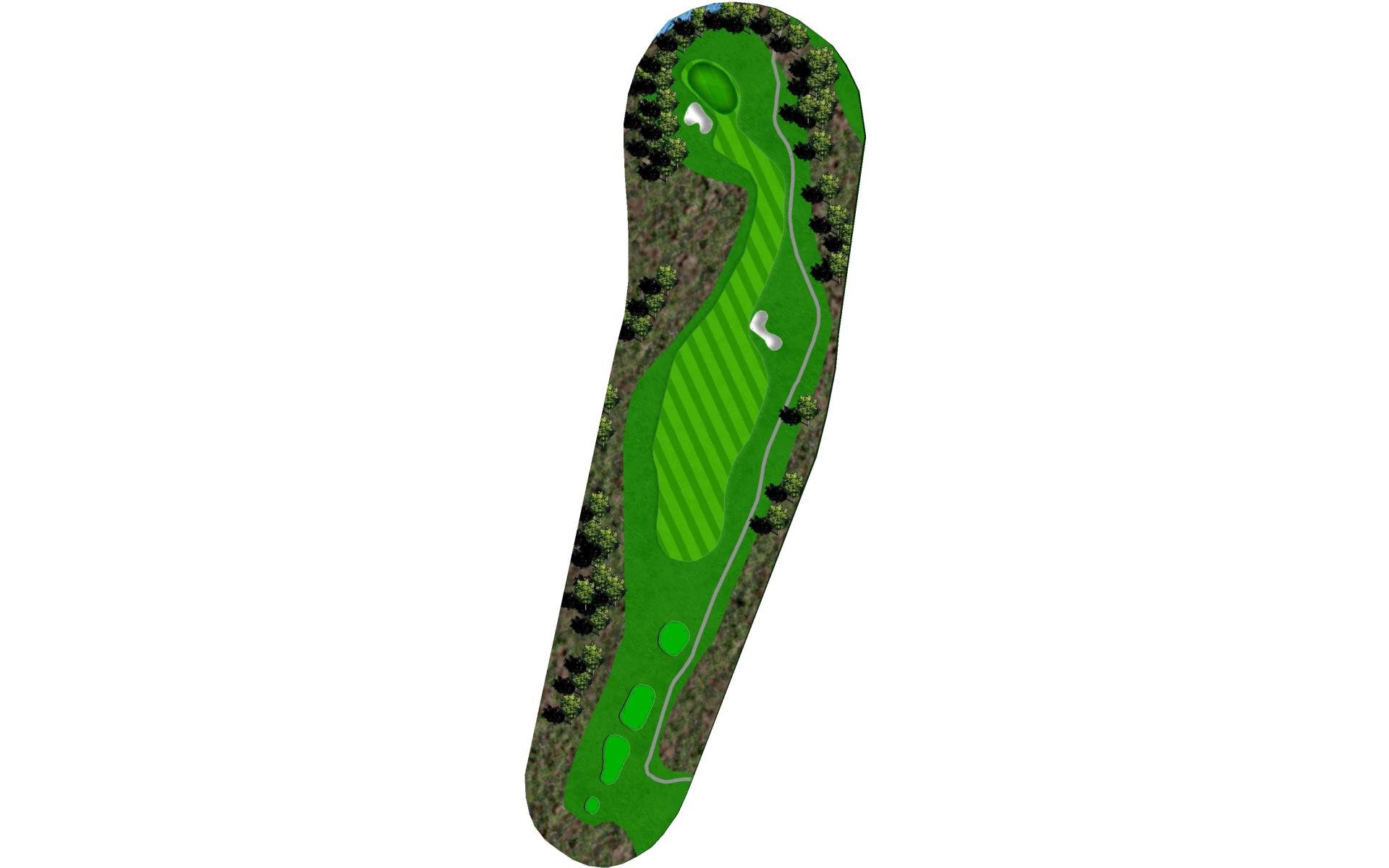 The finishing hole at Blackjack is an uphill par 4. A solid play off the tee is to aim between the bunkers. Approach shots play into a green that heavily sloped from back-to-front and is guarded by two bunkers.