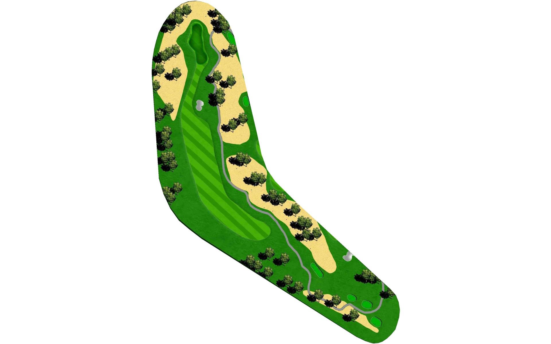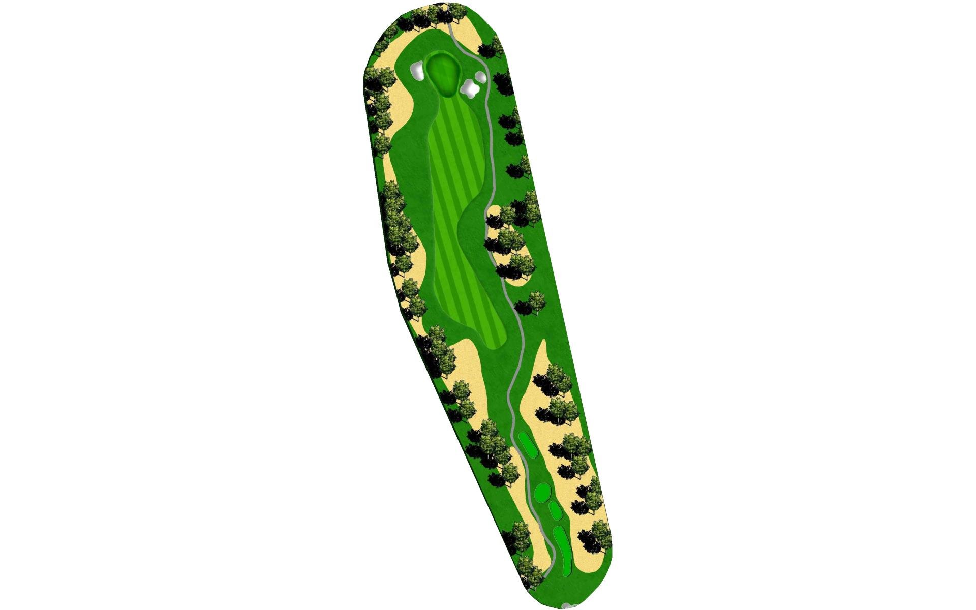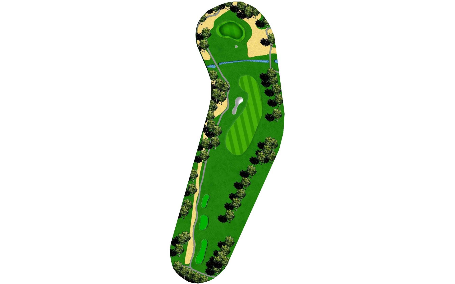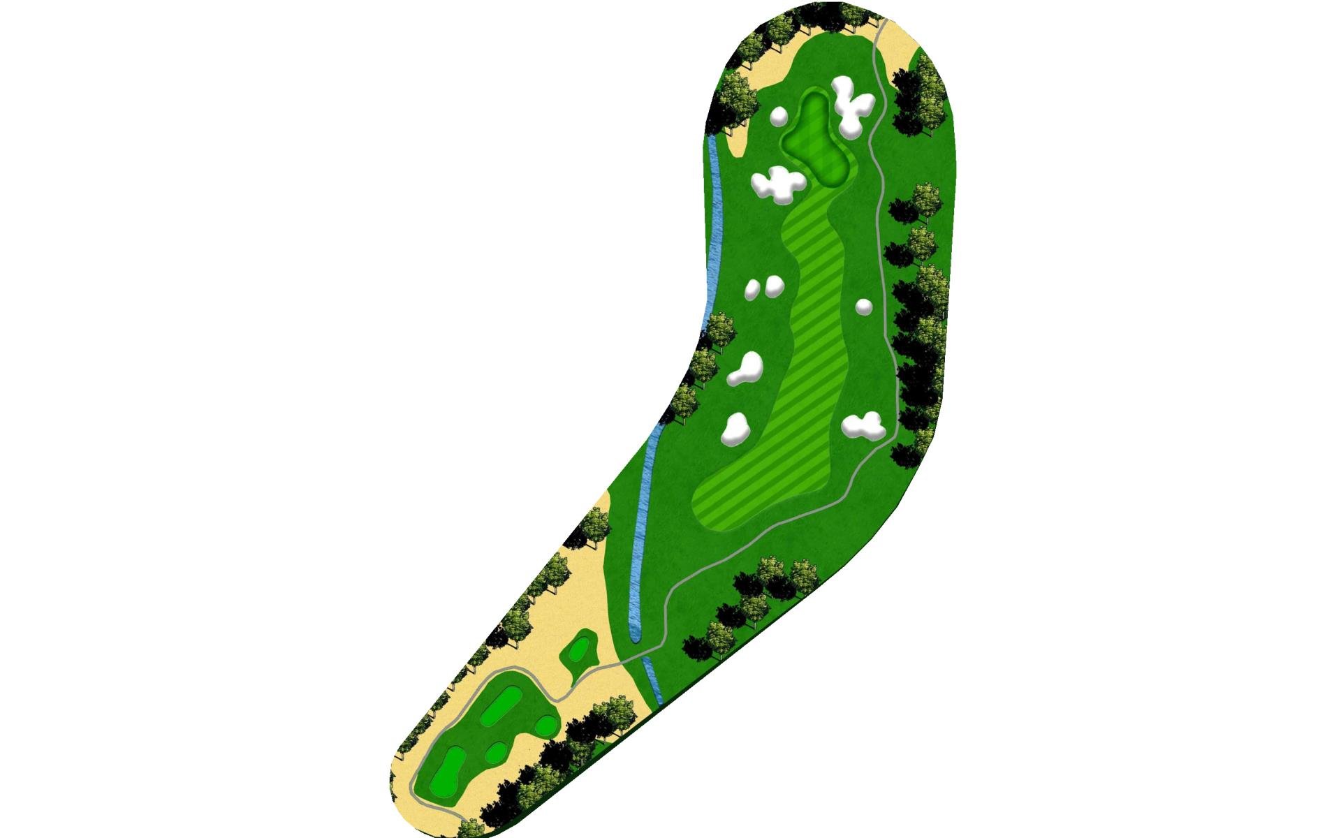 Although this par 4 bends slightly right overall, the tee shot favors a right to left shape to avoid the trees hanging over the left side of…