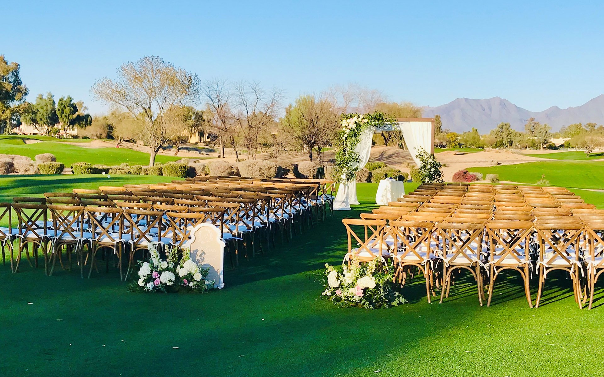 Gainey Ranch Golf Club is where dream weddings become reality. Our pristine ceremony lawn leads to our warm and inviting clubhouse, complete with a wraparound patio and panoramic views. You’ll enjoy a curated menu of delectable cuisines, artfully prepared by our Executive Chef. We'll provide flexible, customizable planning assistance and coordination so all of your heart’s desires will come true.