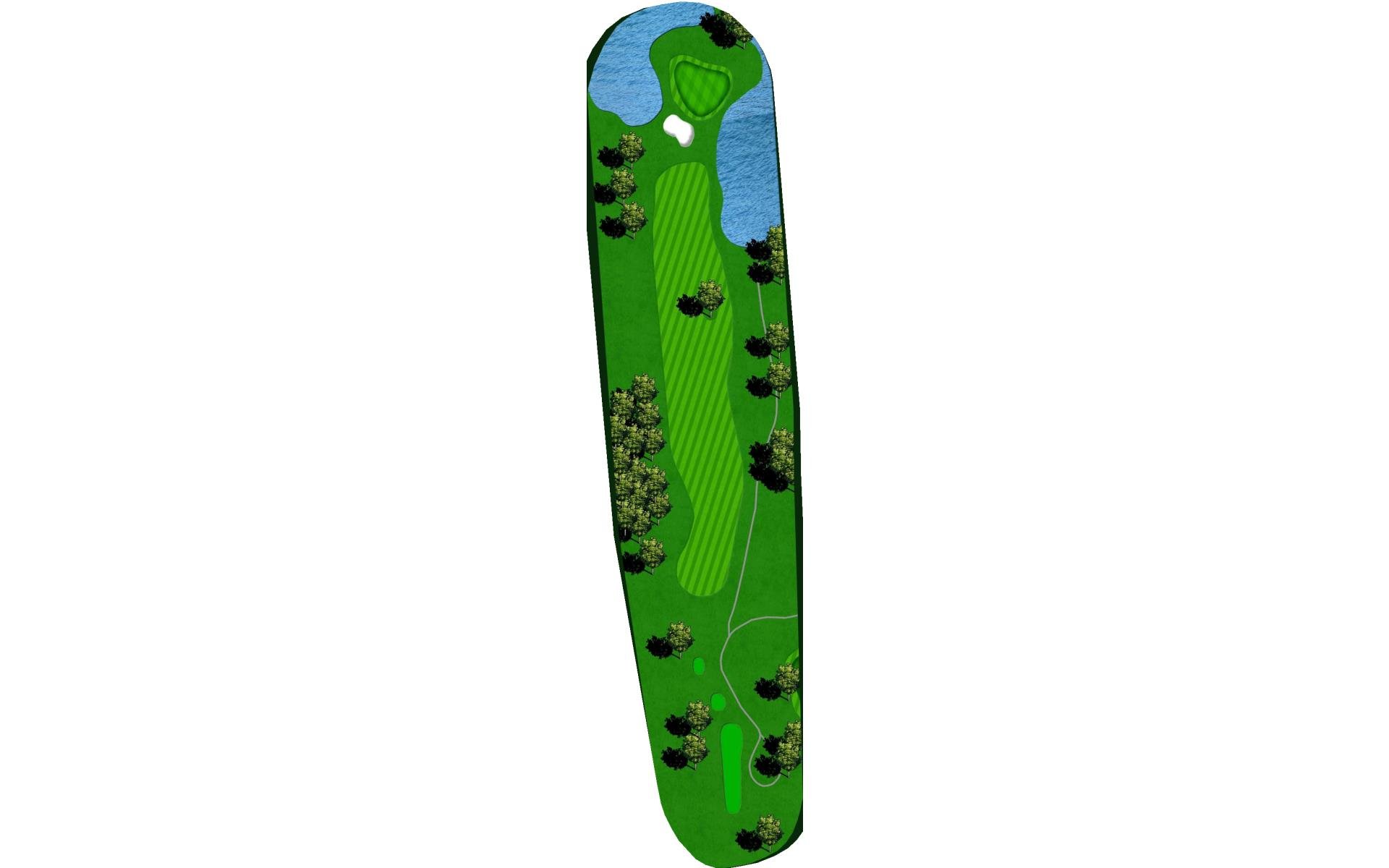 You must be in the fairway to have a chance to hit the green. Protected by penalty area short and right this sloping green makes par a prize.