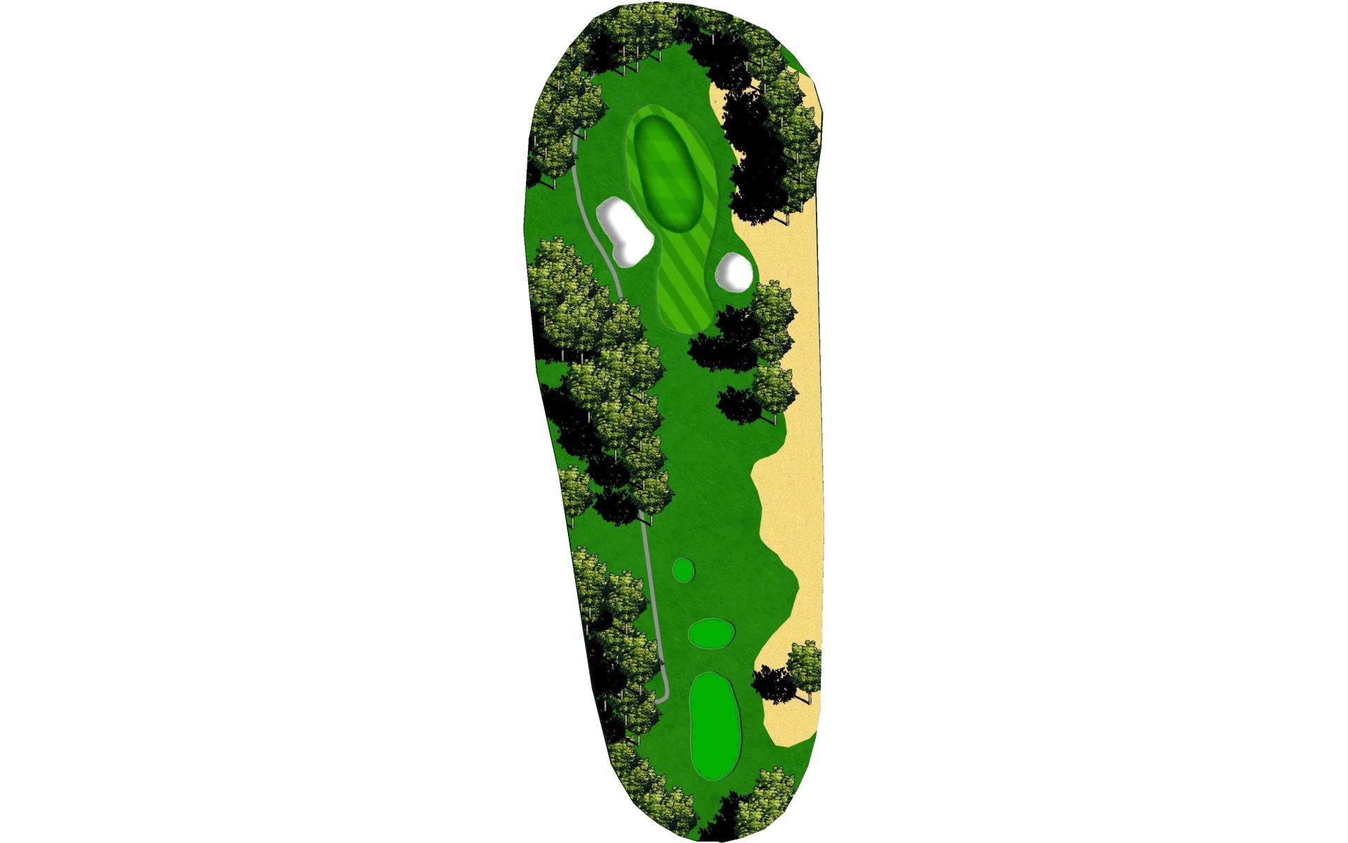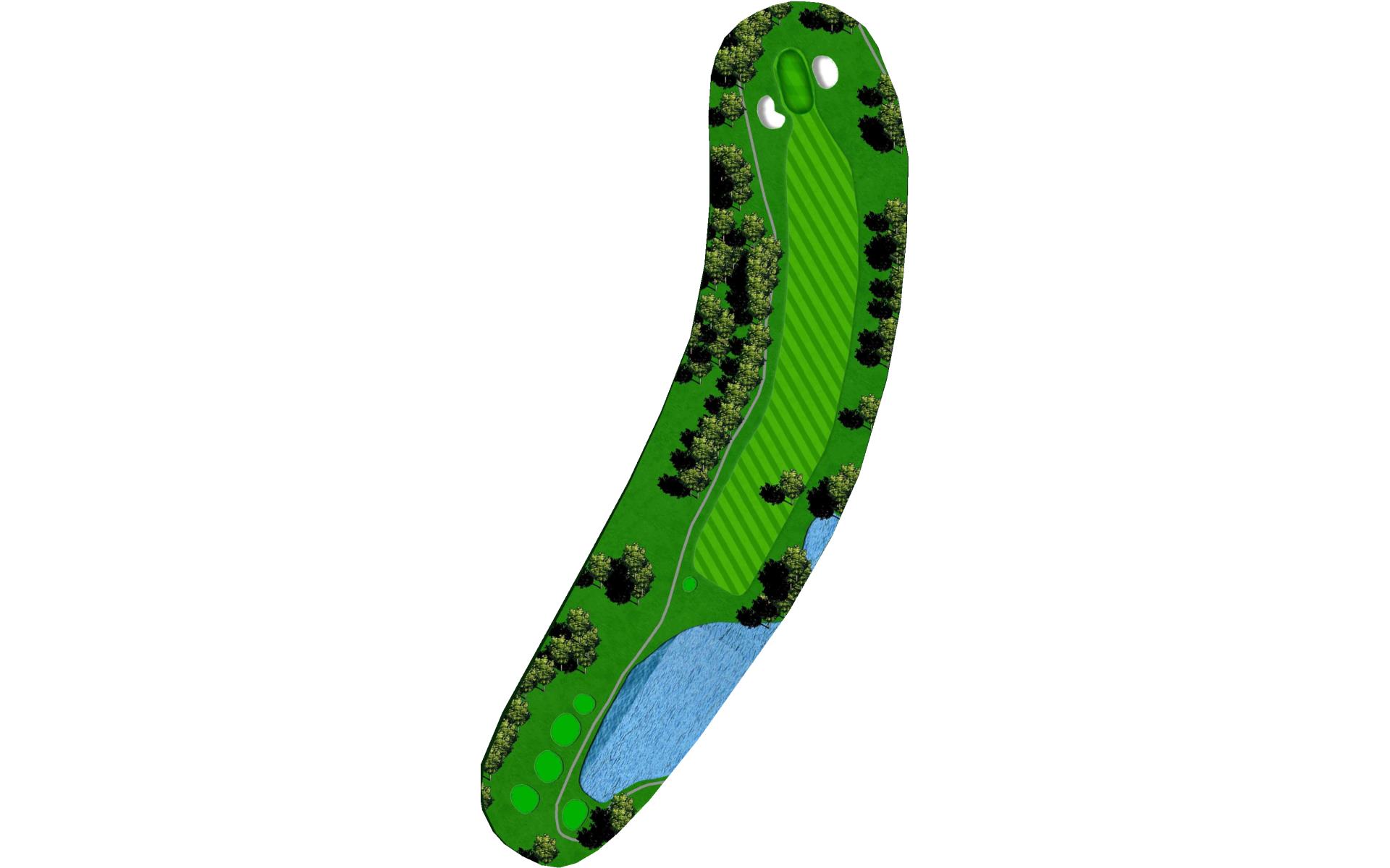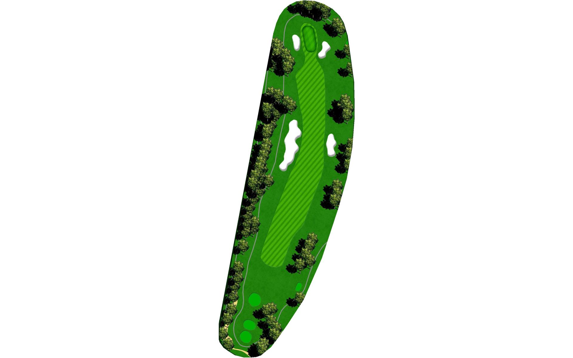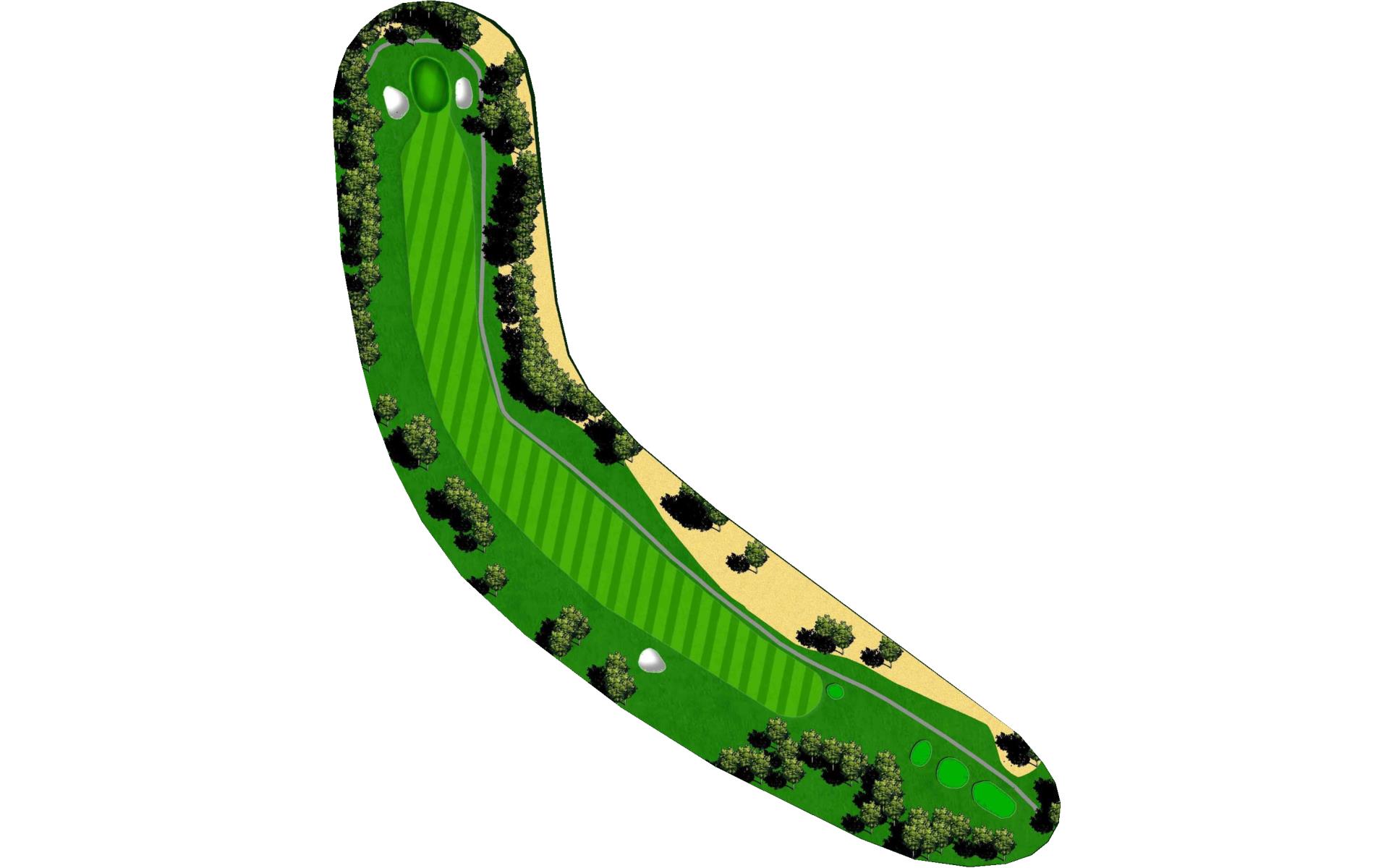 Dog-leg left risk reward - cut the corner and o.b. is in play. Get your second shot on the green as par is a solid score on this hole.
