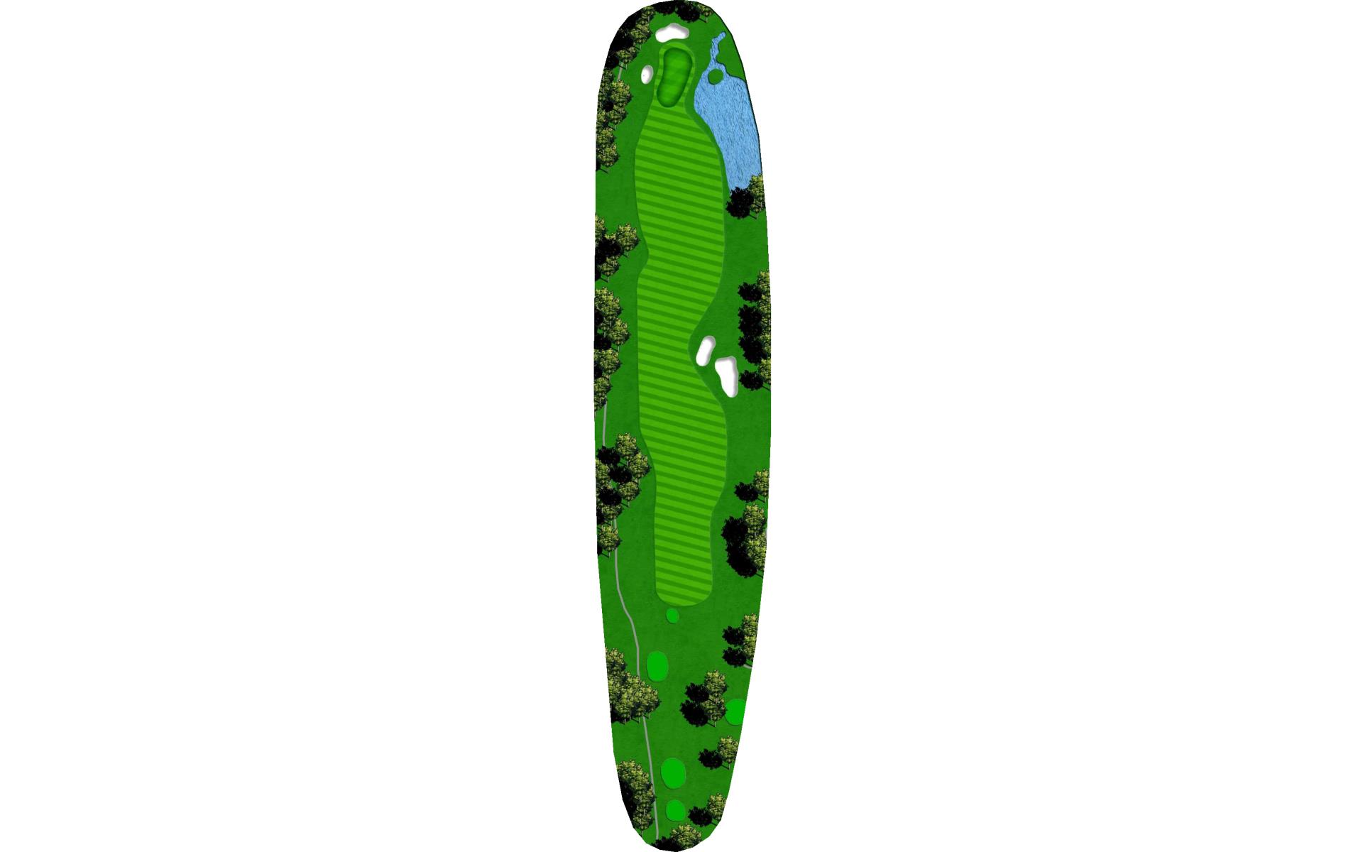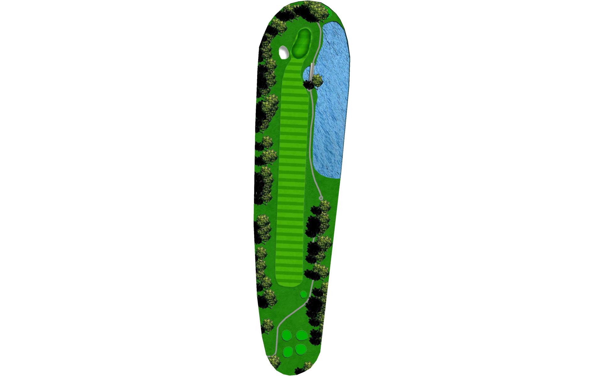 Enjoyable par five with plenty of room in the fairway - water threatens, but you have choices you may decide to go for it, or lay up to about 50 yards with a wide approach landing area.