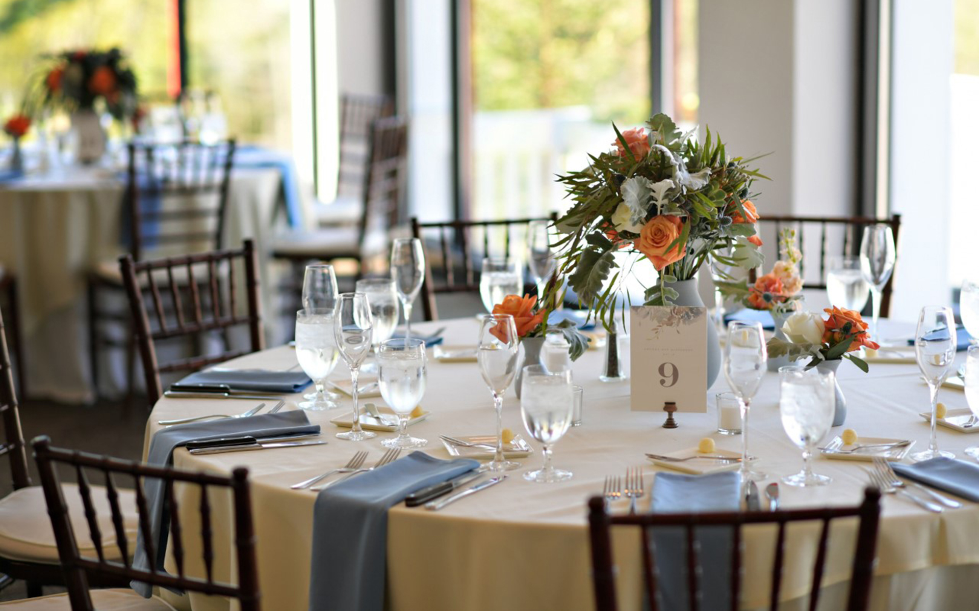 Learn more about our wedding offerings for your big day! Our Clubhouse can host small and intimate weddings of 20-40 people and accommodate 80-250 guests in our sophisticated Grand Ballroom. Our Event Sales Director will assist with resources for unique floral arrangements, photography, limousine services, and on-site custom culinary creations to make your special day memorable.