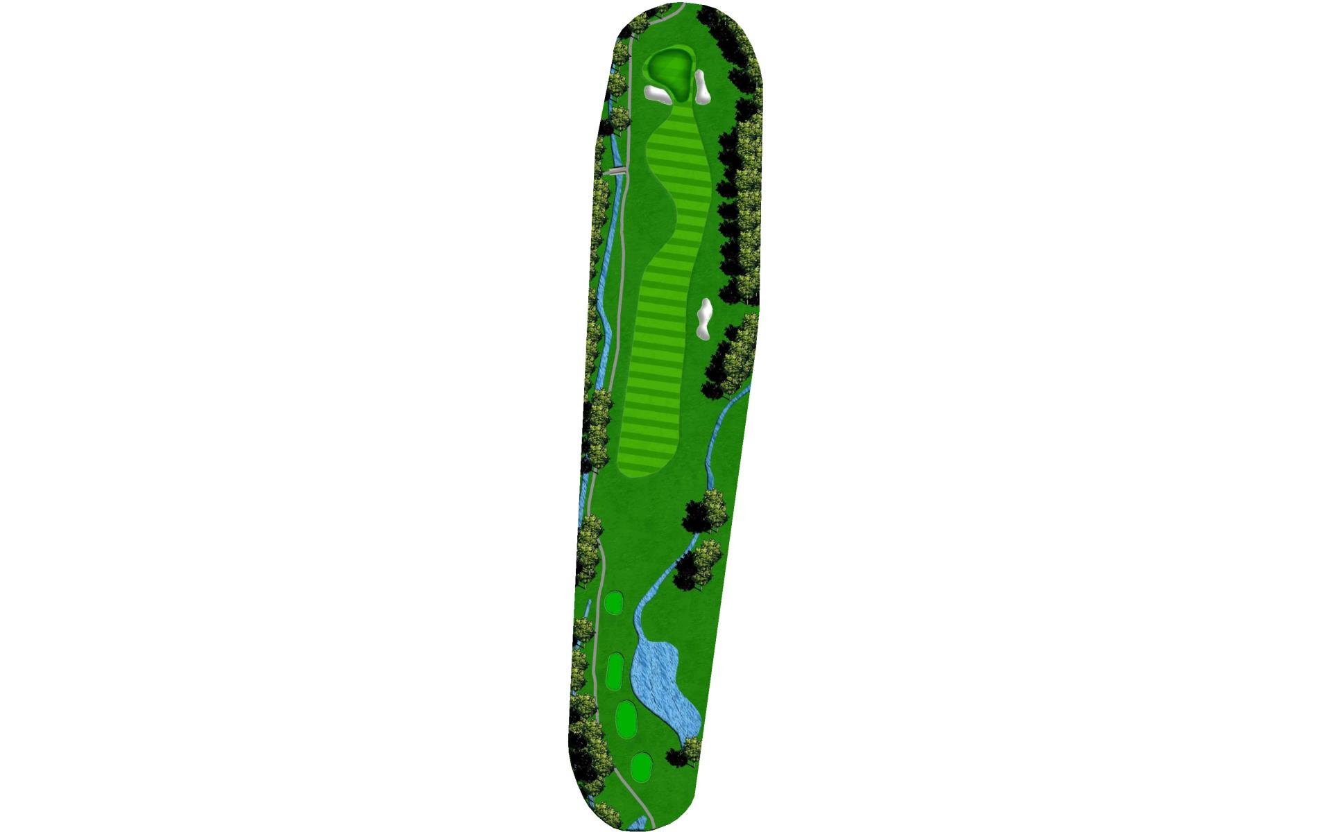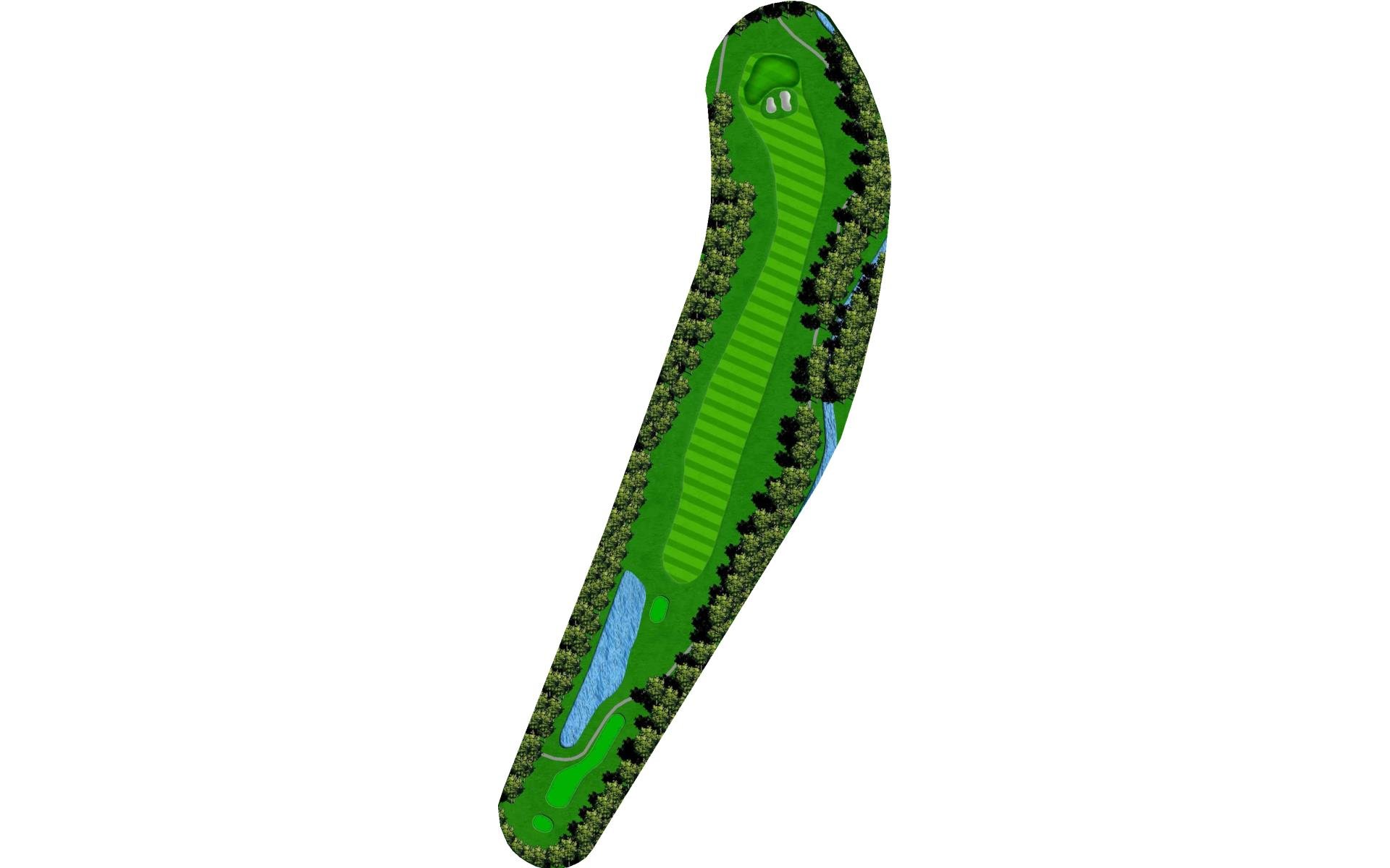 | Your tee shot is your most important here. A long drive over Swift Creek sets up a short iron approach and chance for birdie. A laid-up drive creates a more difficult approach. |