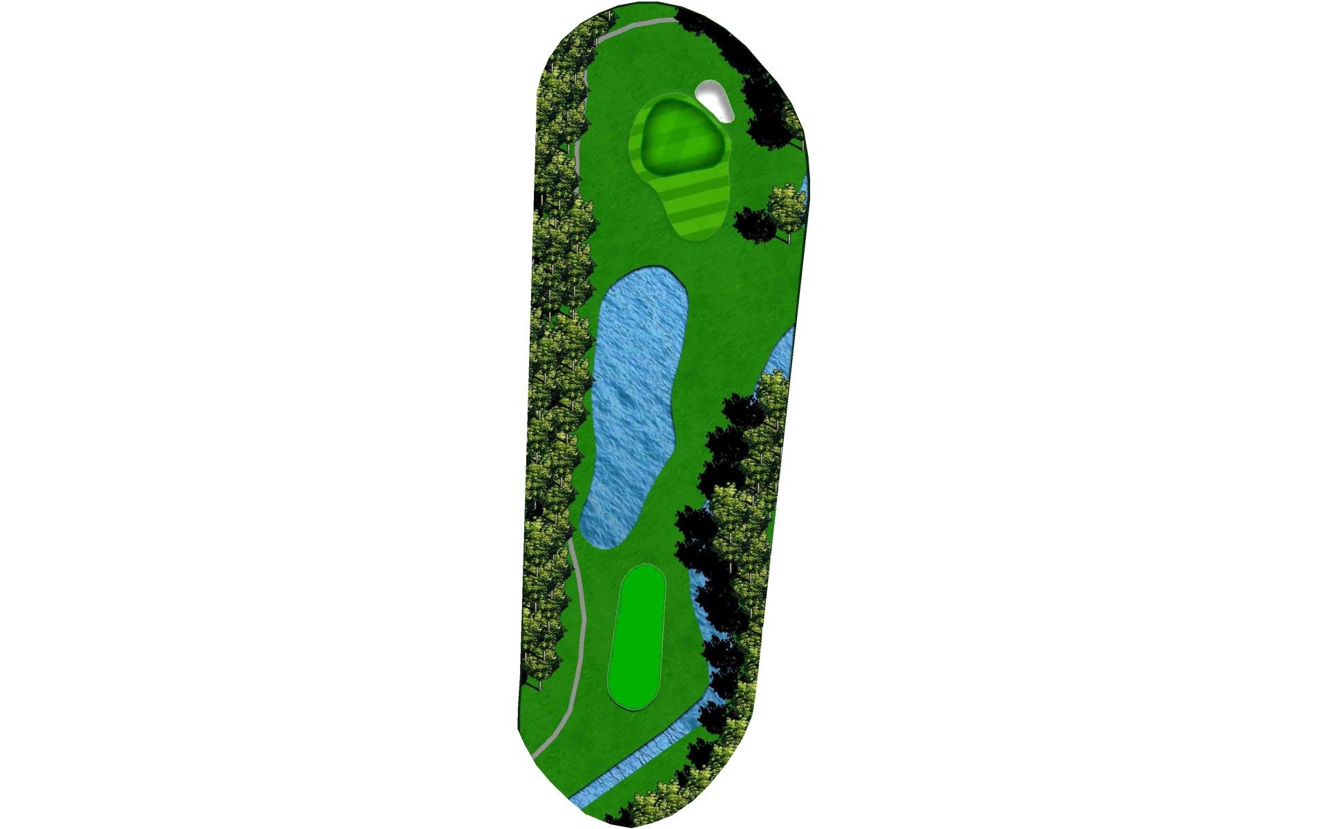 | The longest hole on the course is extremely difficult to reach in two shots because of the pond guarding the green. The smart play is to lay up short of the pond. |