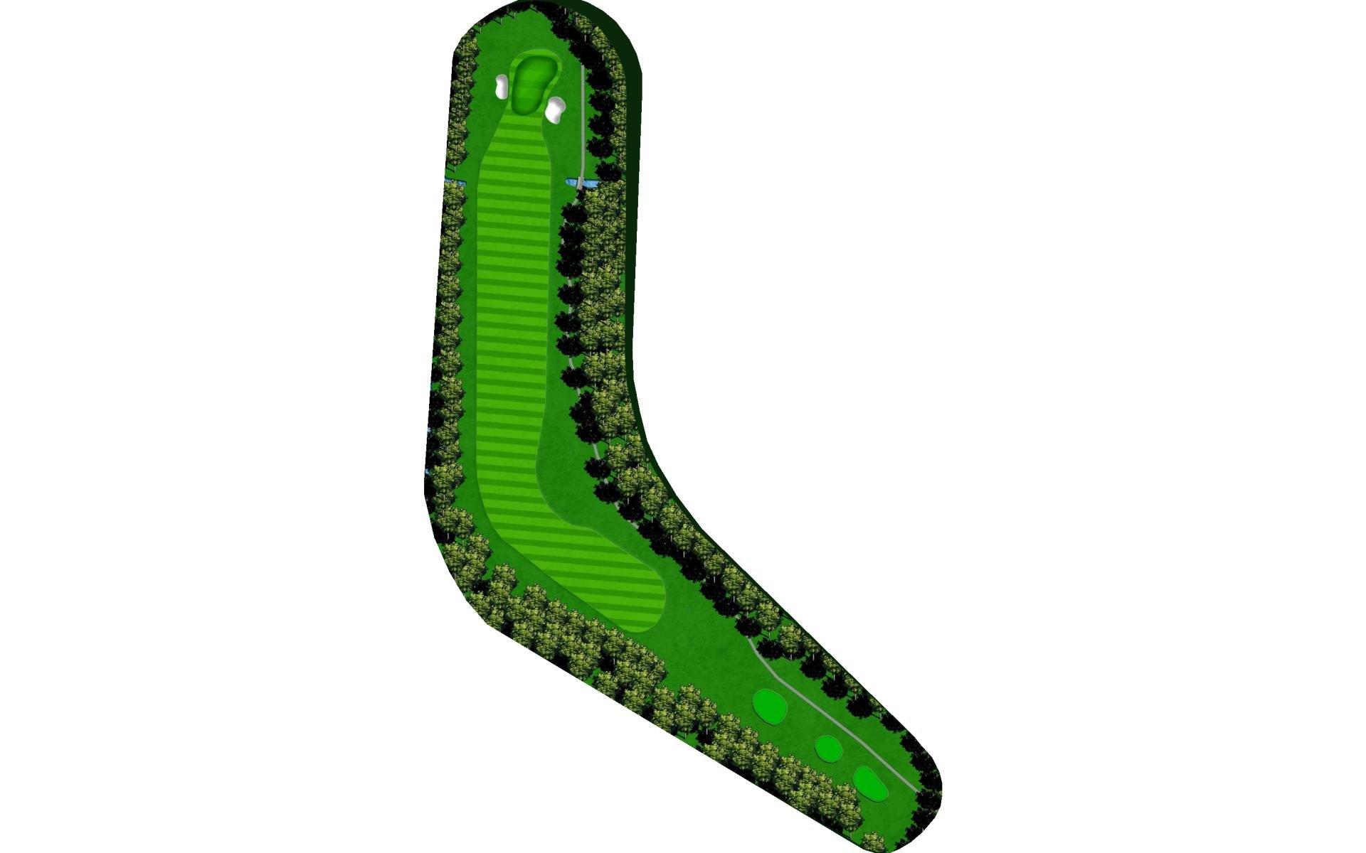 | An accurate drive is most important. Don't cut too much off the dogleg or get blocked by tall trees. Club selection is vital on your second shot. |