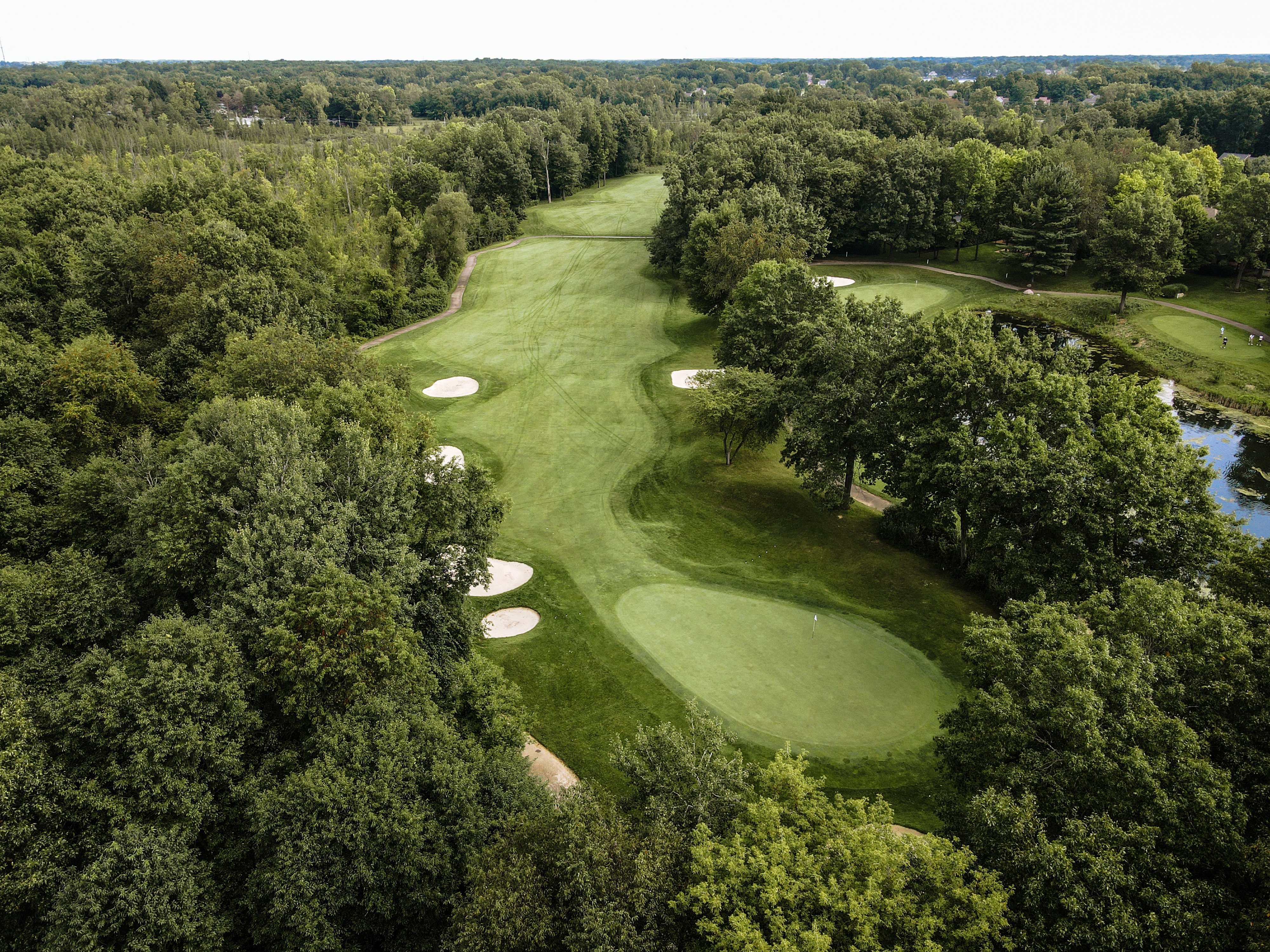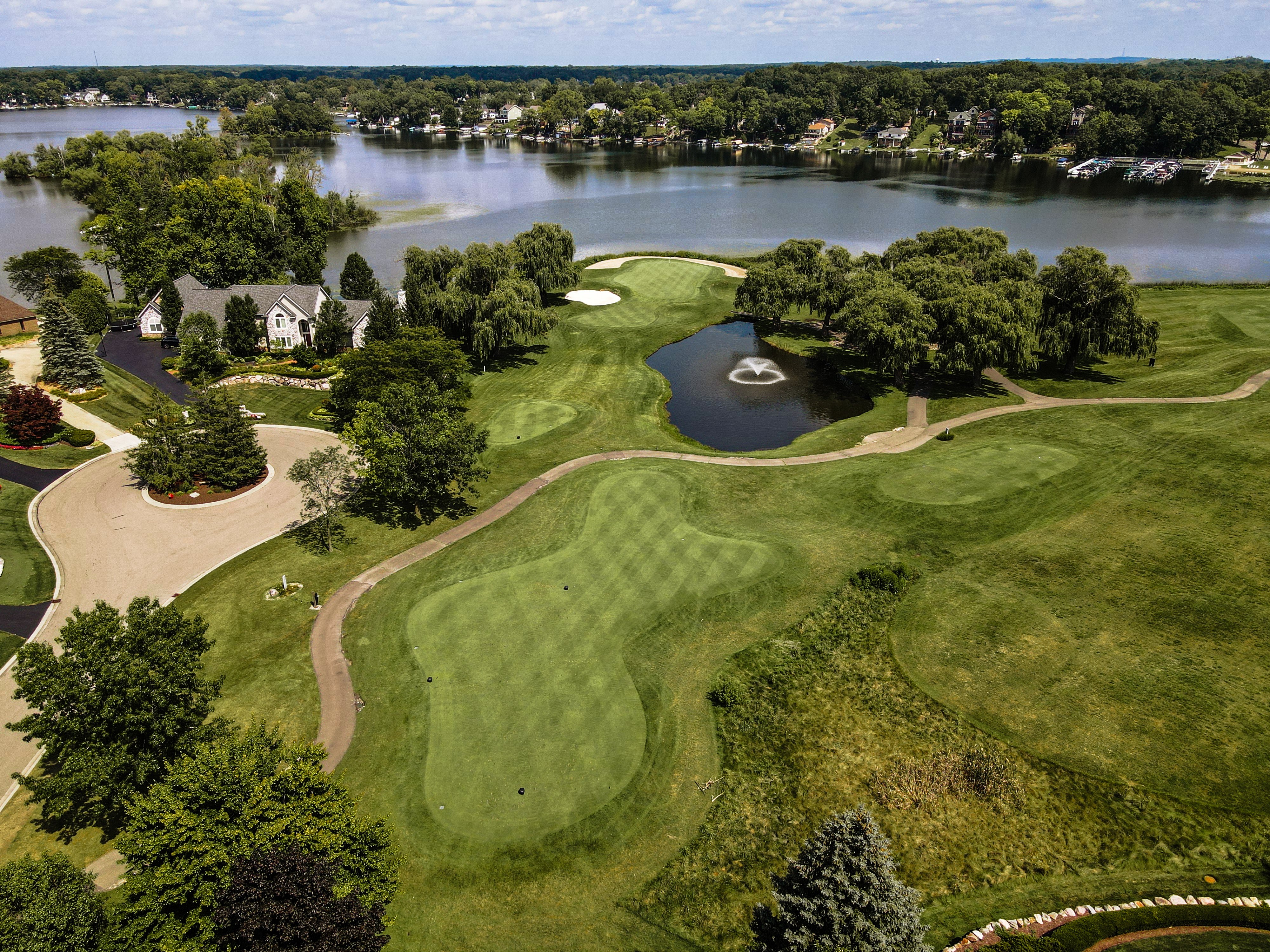 Walking up to the tee of this beautiful hole, Crooked Lake just beyond the flag stick creates a Scenic back drop. This green is protected by a front left bunker and another wrapping the backside of the green