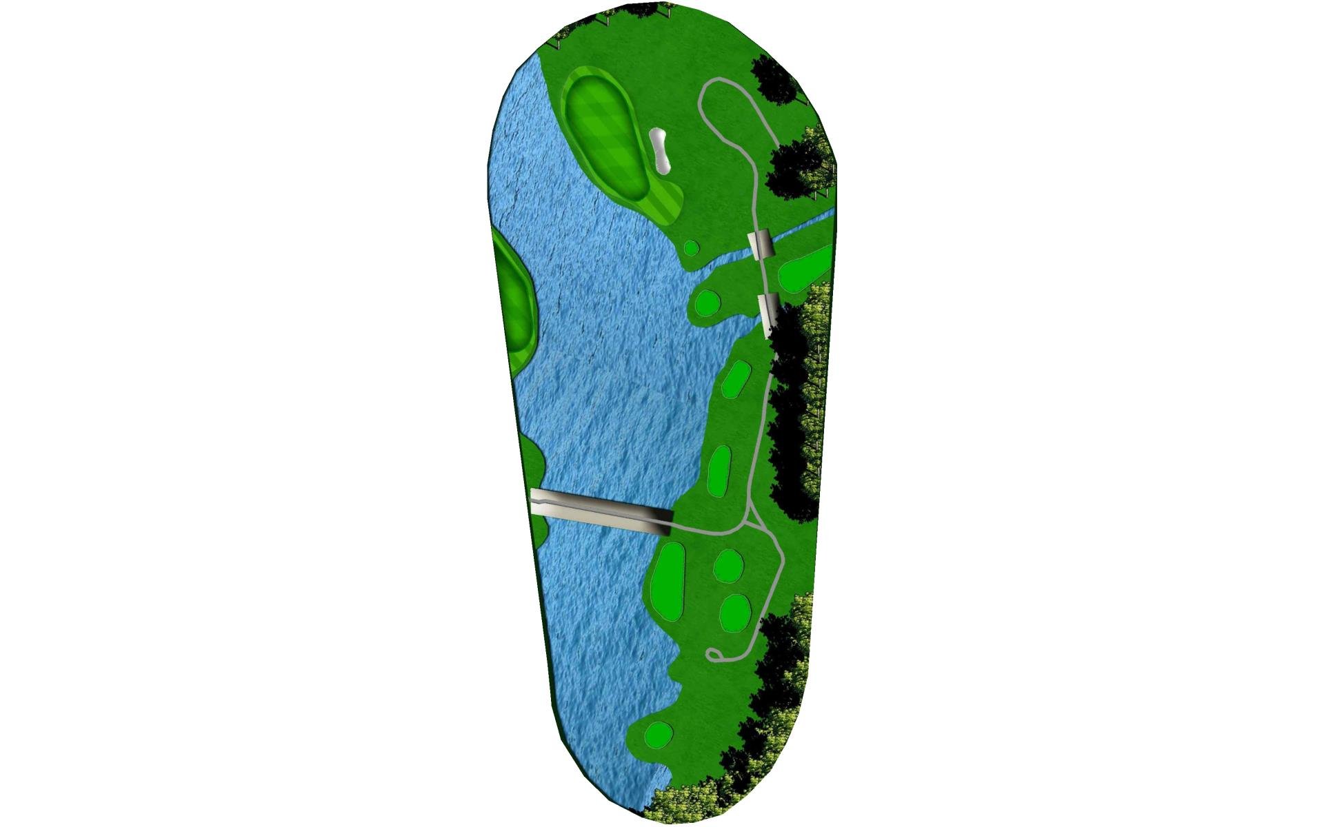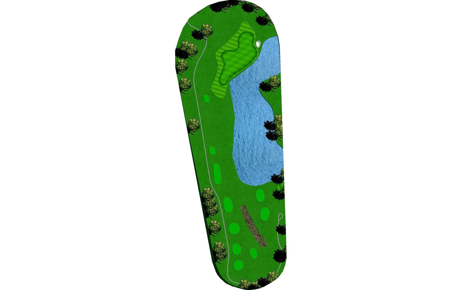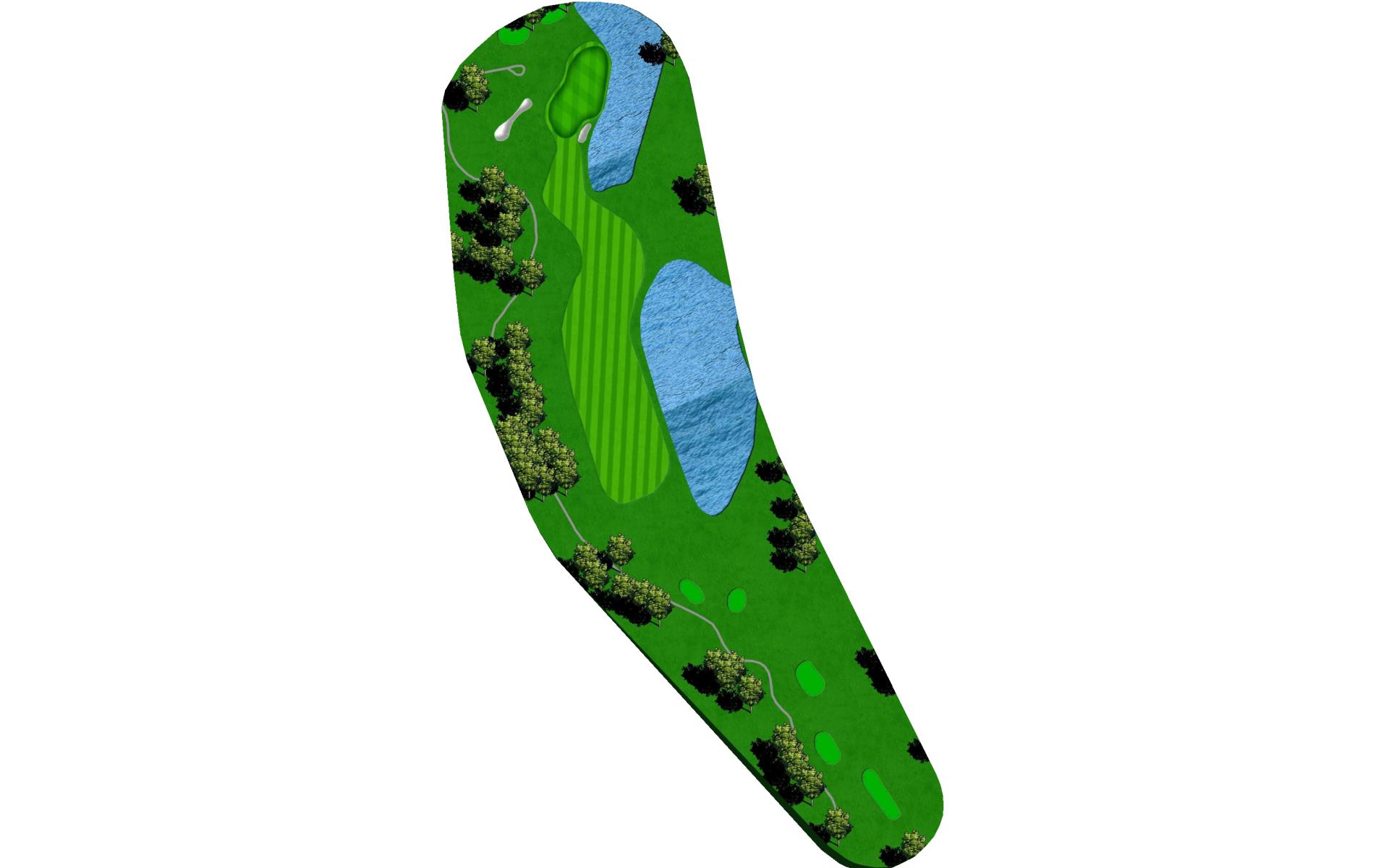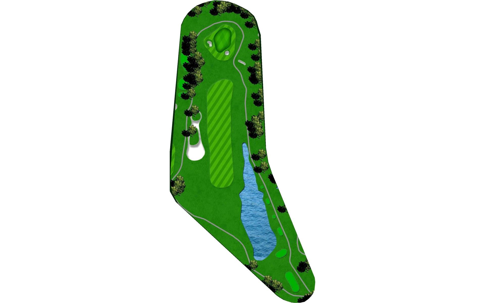 Short par 4 protected by two ponds and OB on the left. A good drive here can leave short iron to wedge depending on your club choice off the tee. Second pond wraps around right side of green that slopes towards the water. Narrow green makes accuracy a premium.