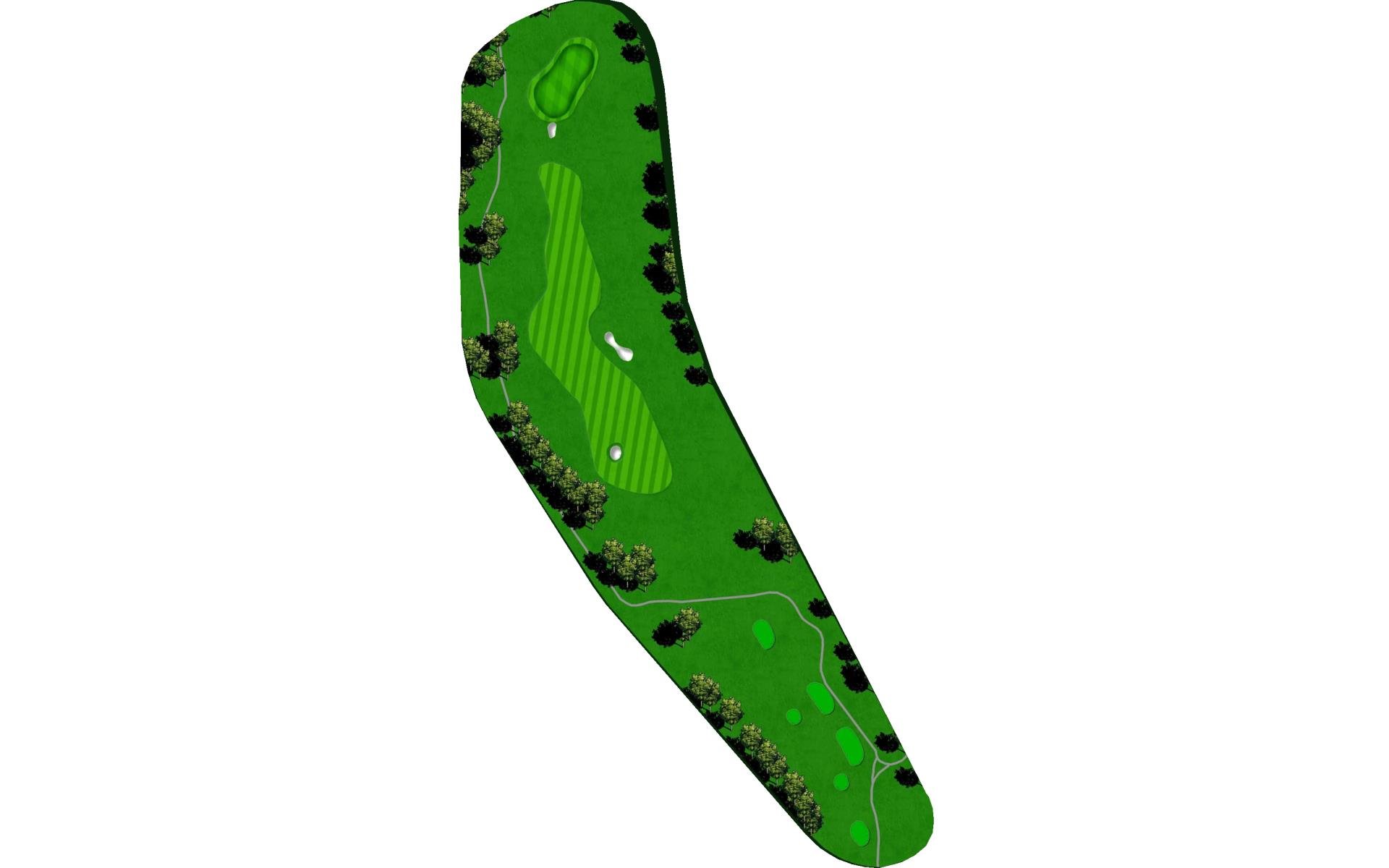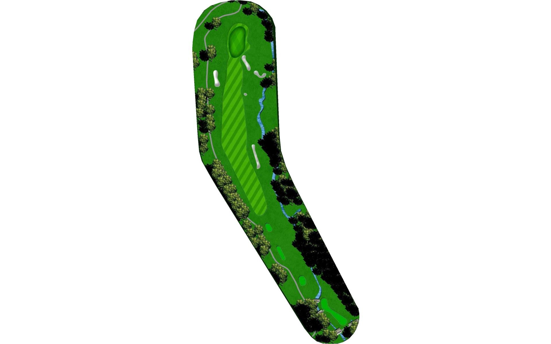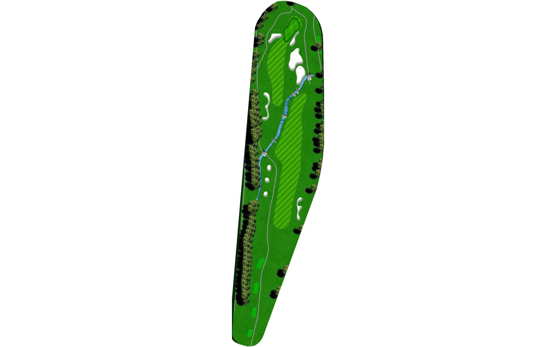 First and only Par 5 on front nine. Aim at the famous Railroad box car to ensure you hit this fairway. Bunkers and OB left are only the start of the trouble. A creek runs diagonally through the approach landing area with large bunkers right and short of green, but a good drive makes this a reachable hole with long iron or wood.