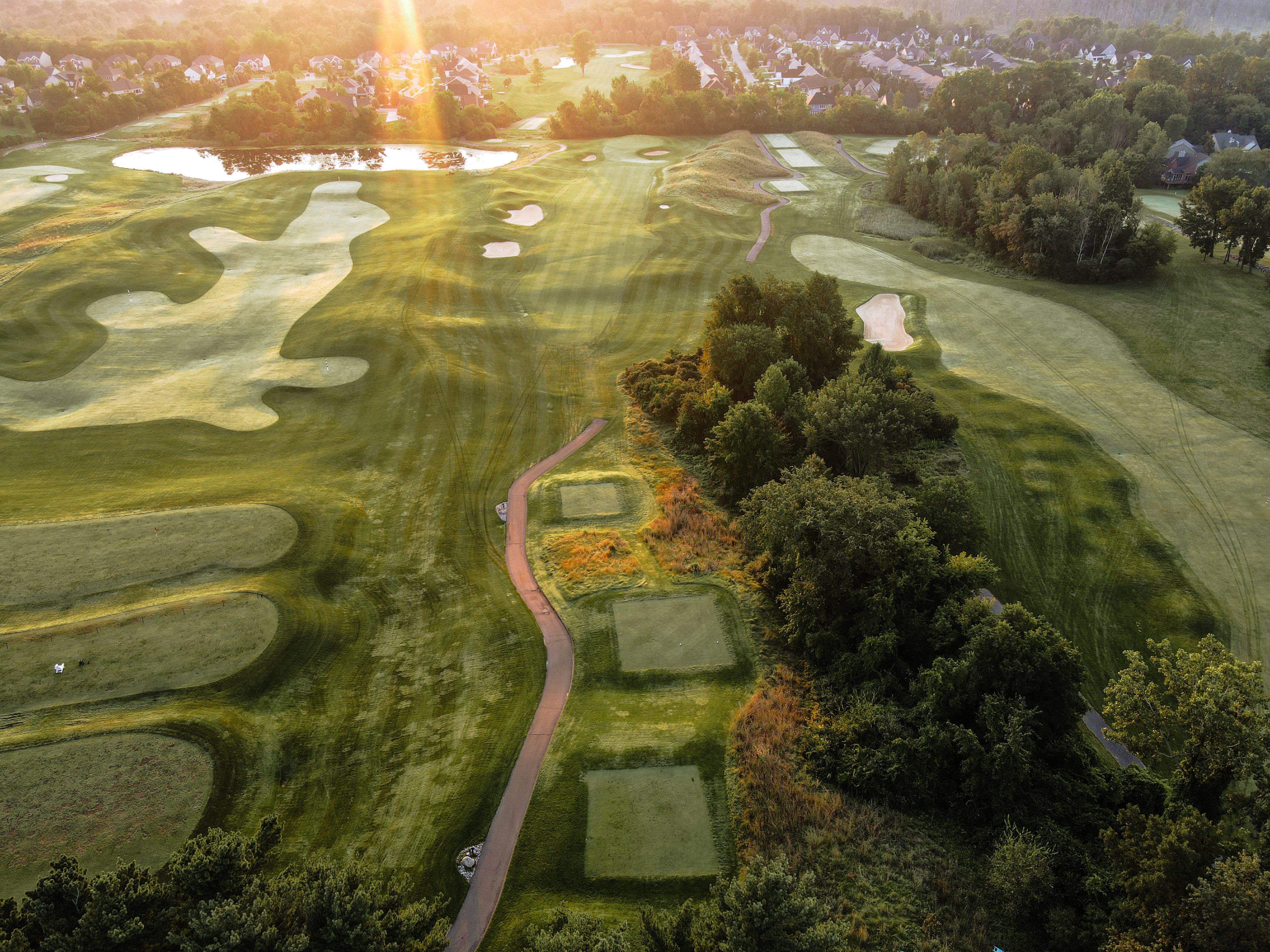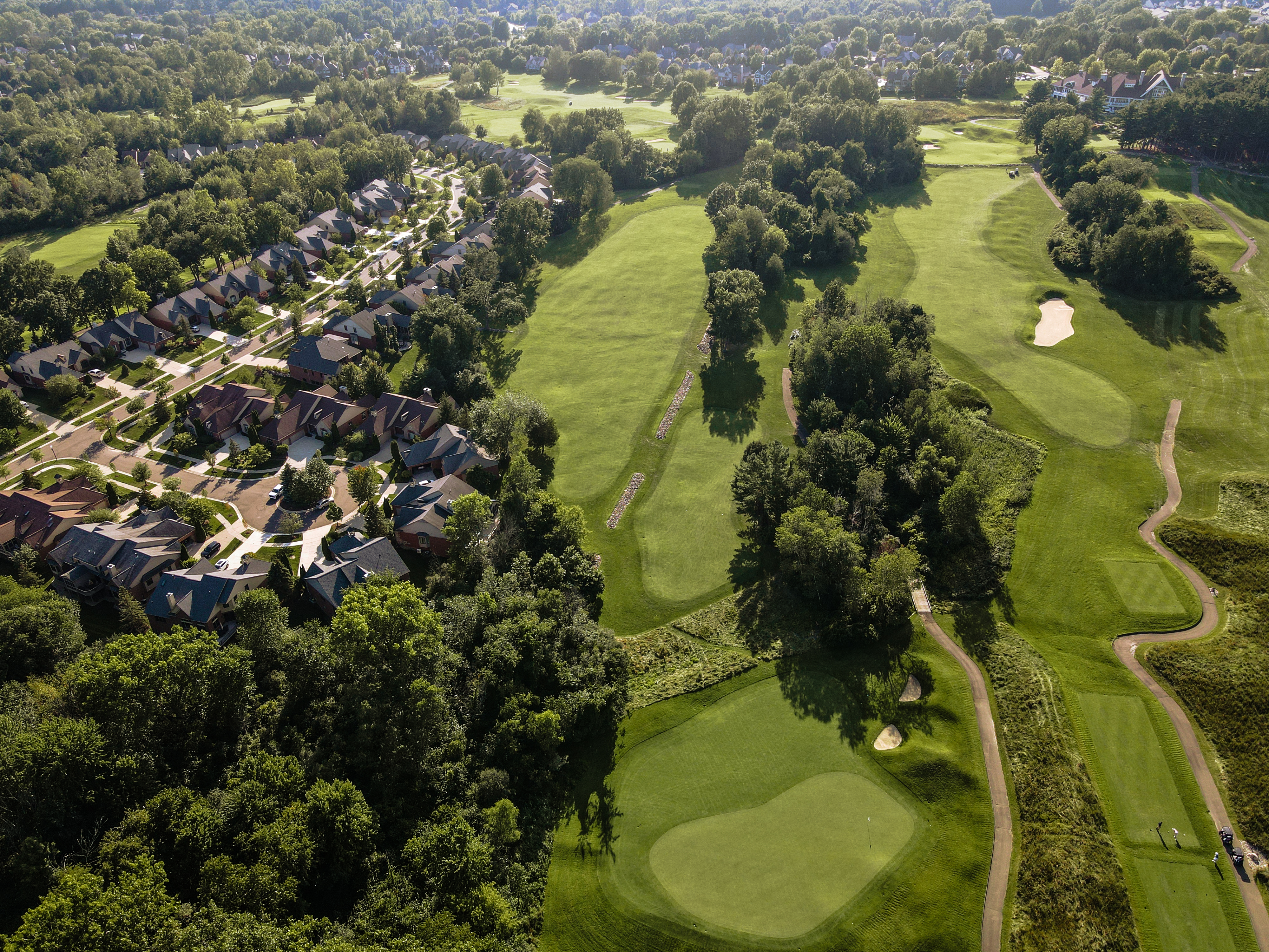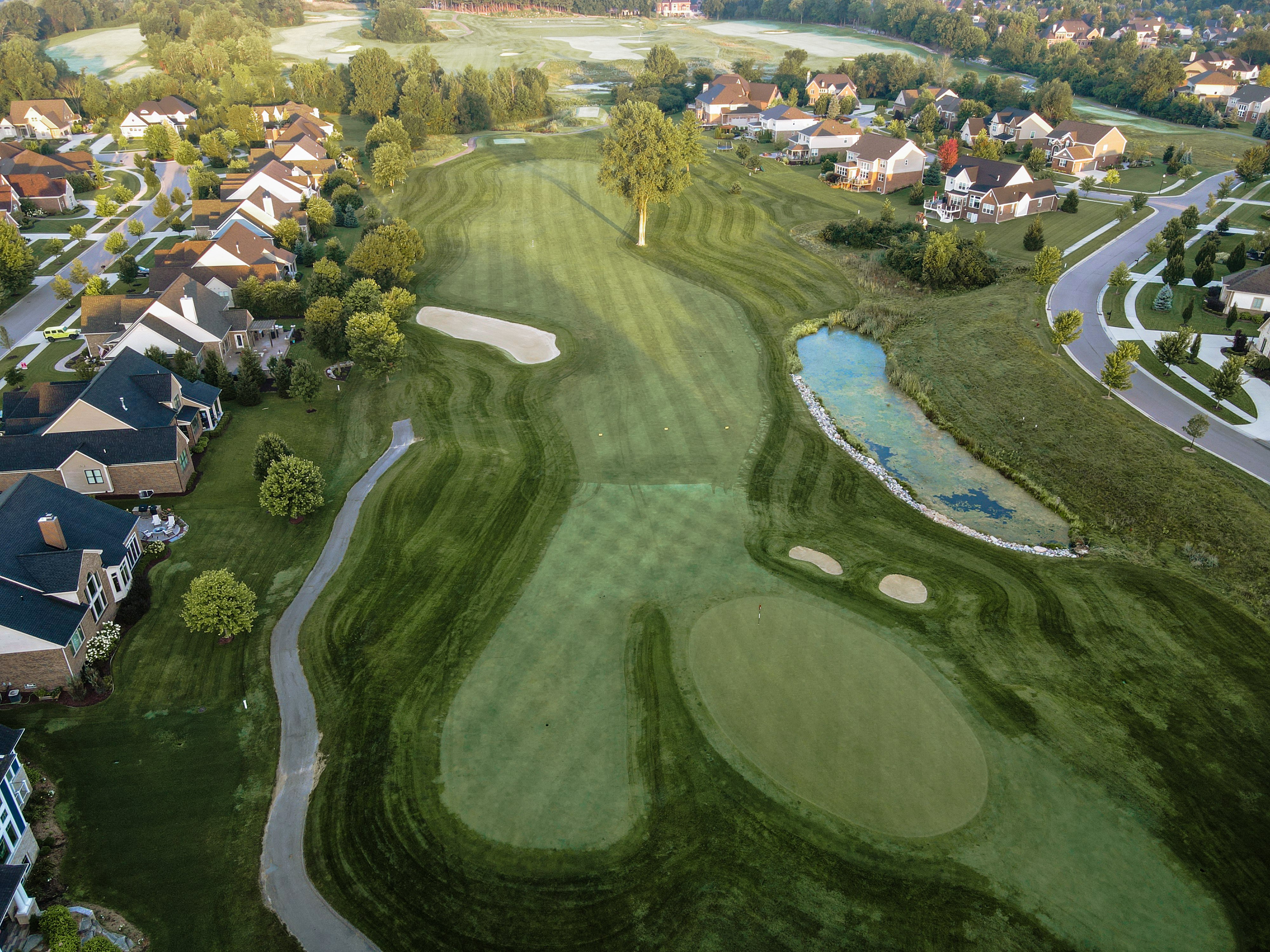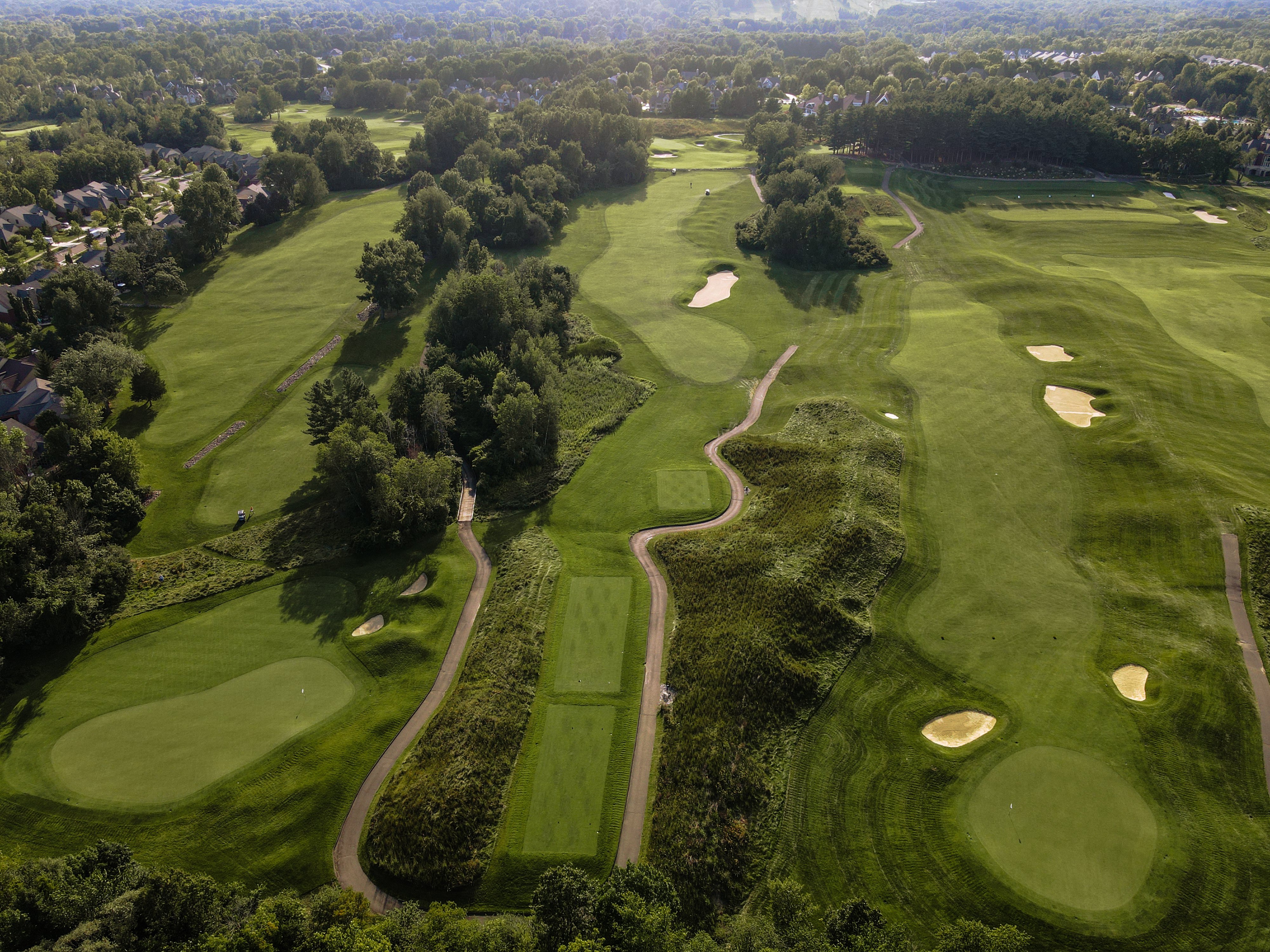 A long fade drive just over the right side of the large oak on the left will run down the hill. Too far right brings back yard unplayable out of bounds into threat. Without a crushing second shot the smart play is a lay-up just beyond the rock ridges for a short iron into a wide, shallow green. A significant landing beyond the marsh in front of the green is hidden from view. Long and over the green will probably be gone. The green slopes more left to right but also slopes back to front.