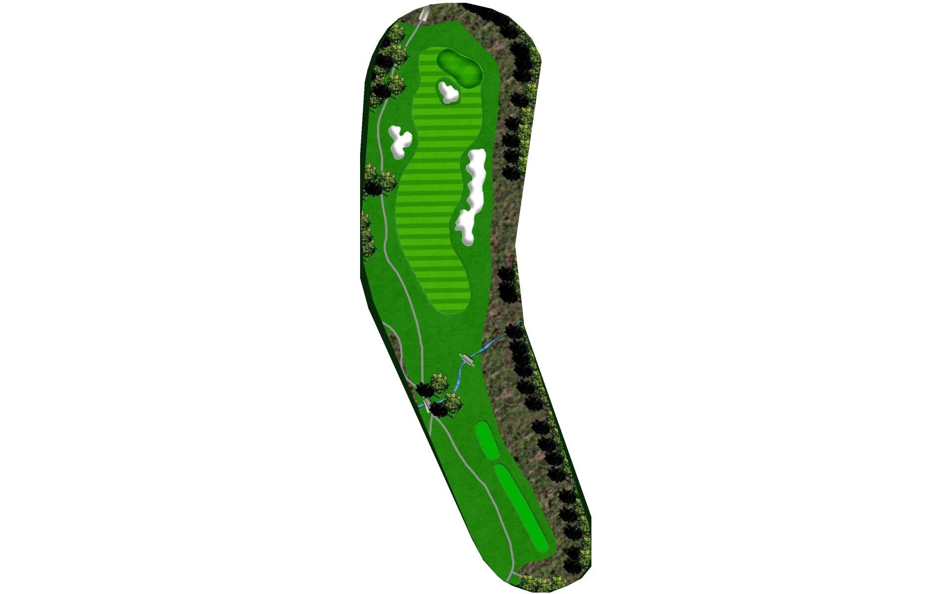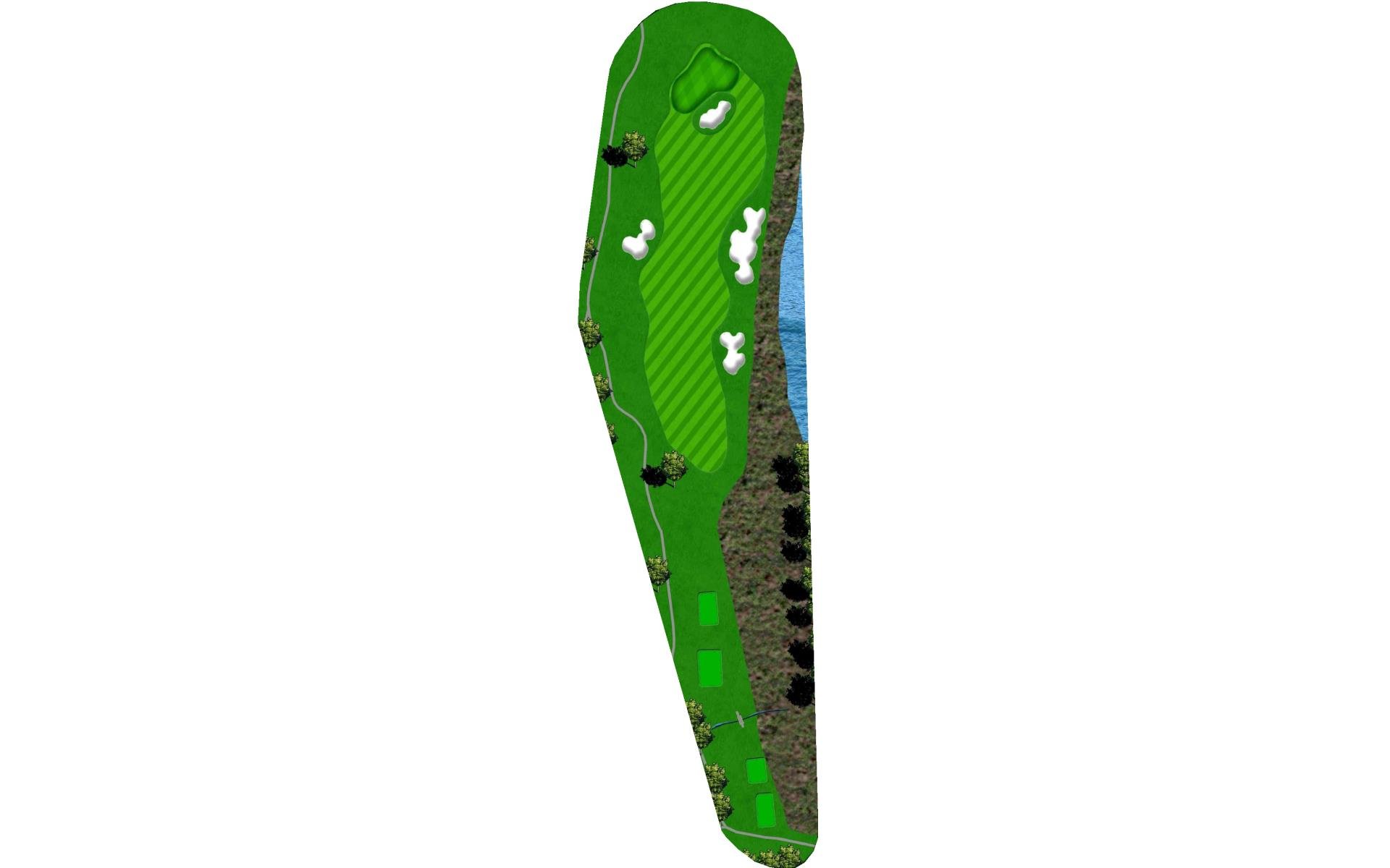 A slight dogleg right. Long hitters can try and challenge the bunker on the right for a shorter approach shot. The green has a false front and slopes from right to left as well as back to front. This challenging hole will test the best iron players because any shot into the green that lands on the left side of the green will roll off into the collection area.