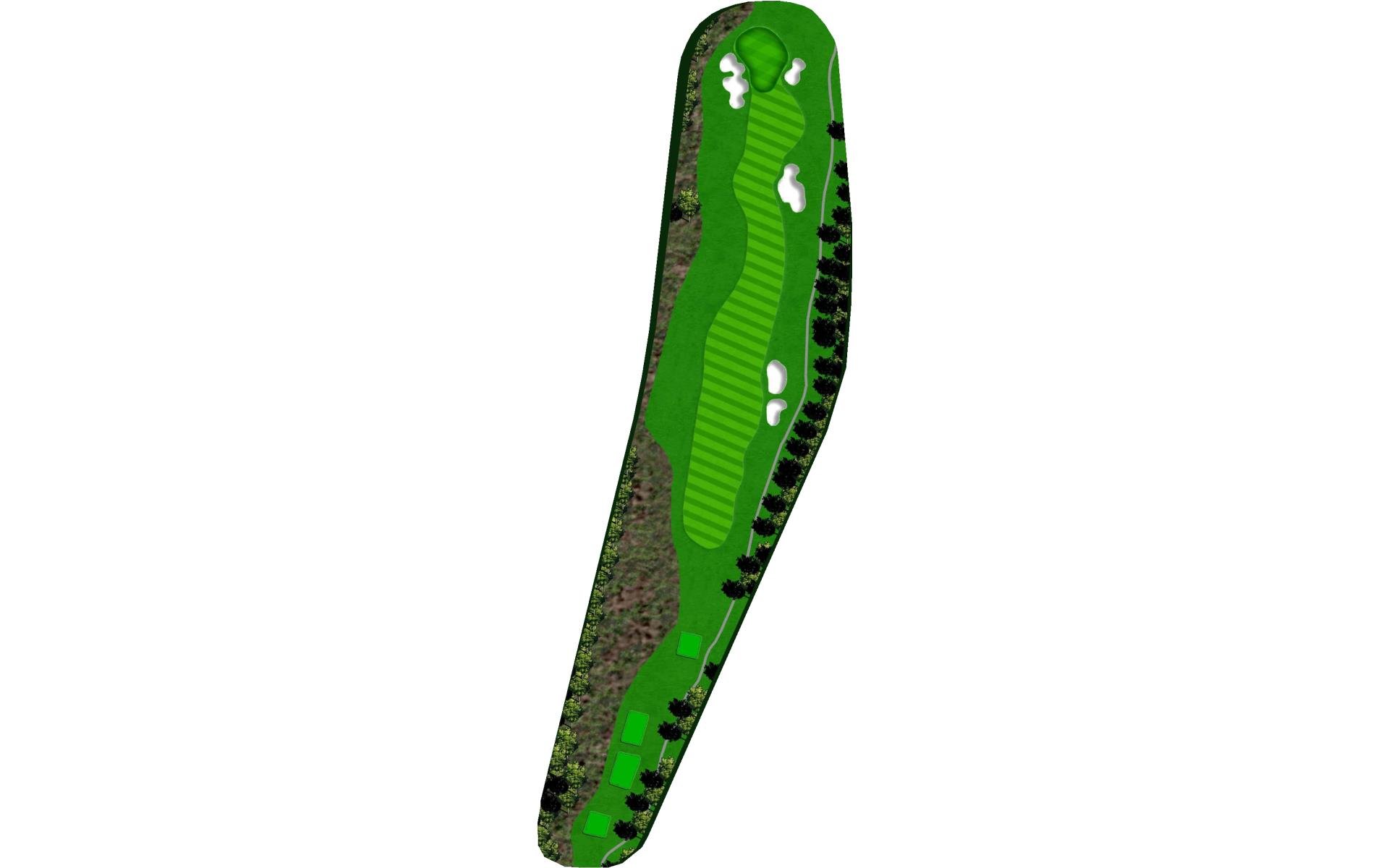 A slight dogleg left that requires a well-positioned tee ball. A large fairway bunker on the left and trees on the right make hitting this fairway a premium. A long iron or hybrid is best for this hole, leaving a full wedge into this green. Green slopes from back to front.
