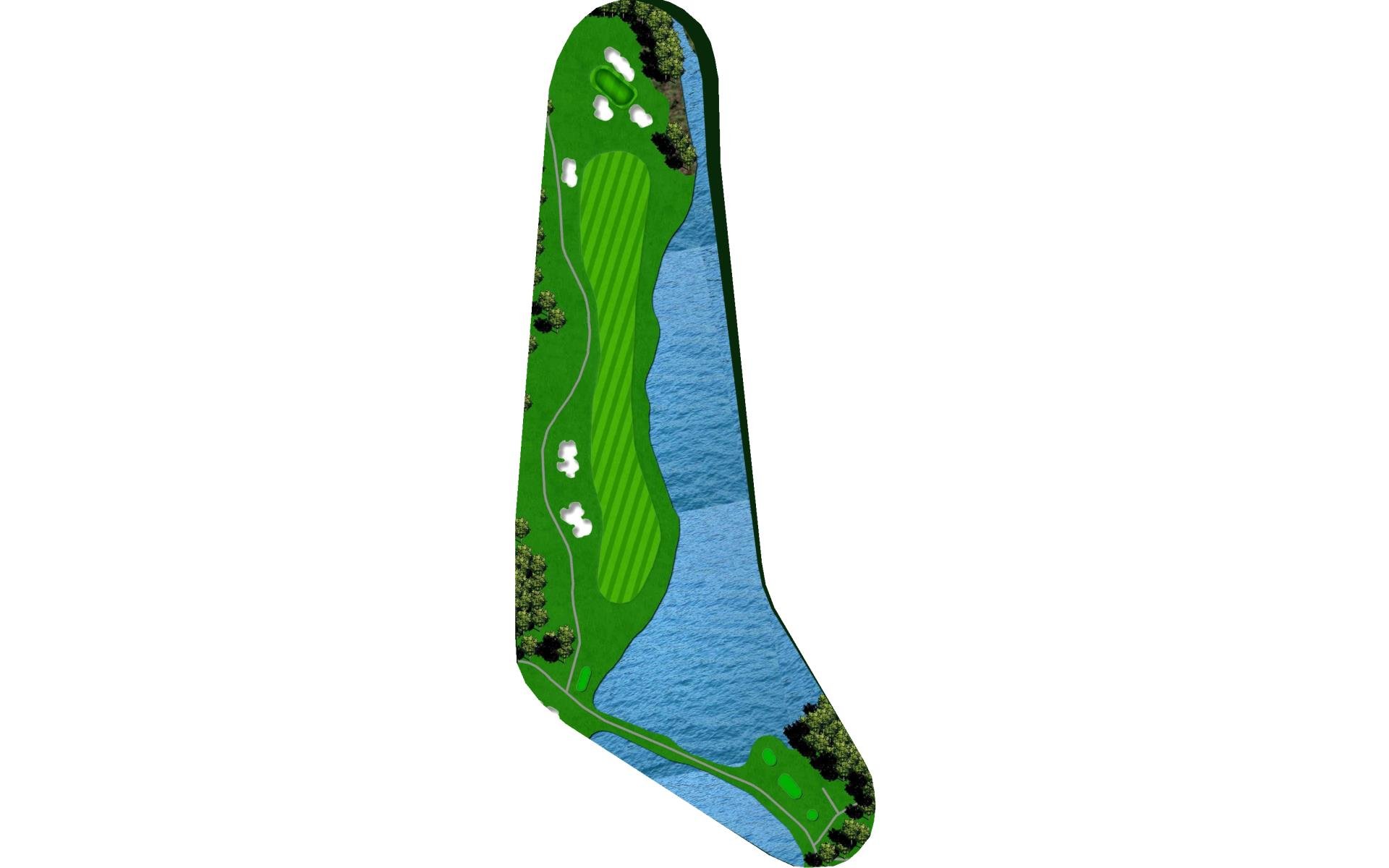 The shortest of the par 5's. Water along the right side and bunkers and OB guarding the left. A well guarded green, with bunkers left, while short and right of the green will certainly be wet.
