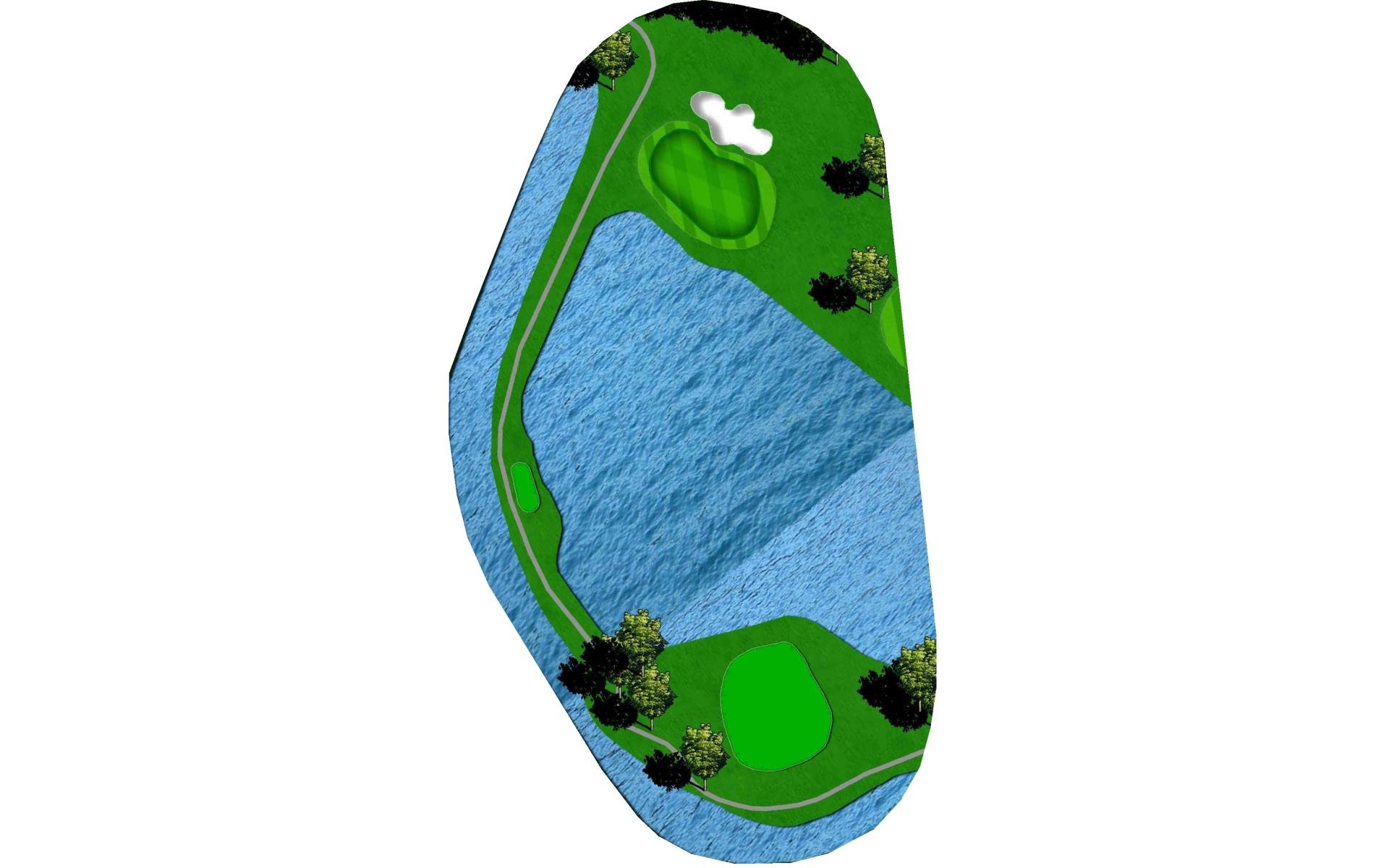 Short but challenging uphill par 3. Missing short, right or long will certainly visit the lakes penalty area. The green is tough with multiple slopes and a bowl area on the front right.