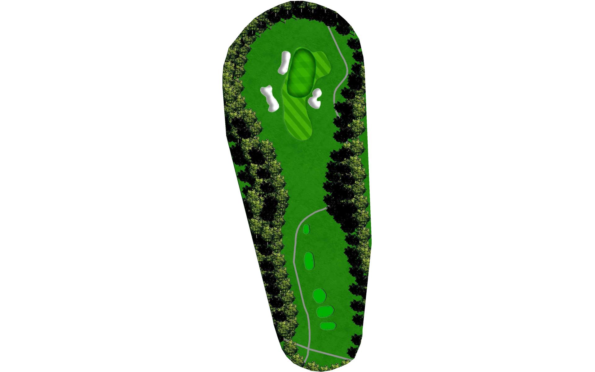 A medium length par 3 with another large green with a variety of difficult pin locations. Favor the left side and avoid the deep bunker on the right.