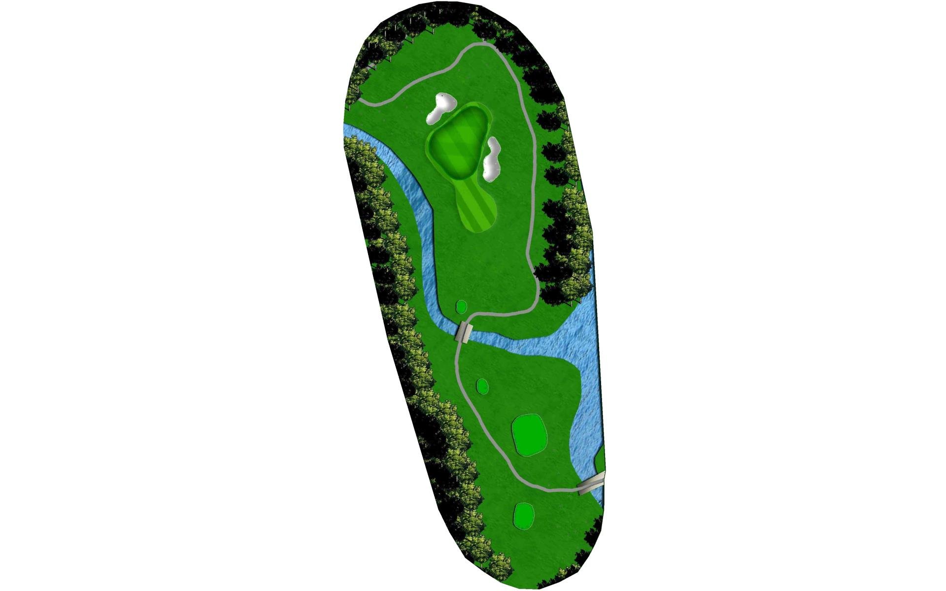 A short but difficult par 3, well bunkered with water to the left side of the green. A severely sloping green will require an accurate shot to stay below the hole. Proper club selection is key here, as overhit shots will be severely penalized over the green.