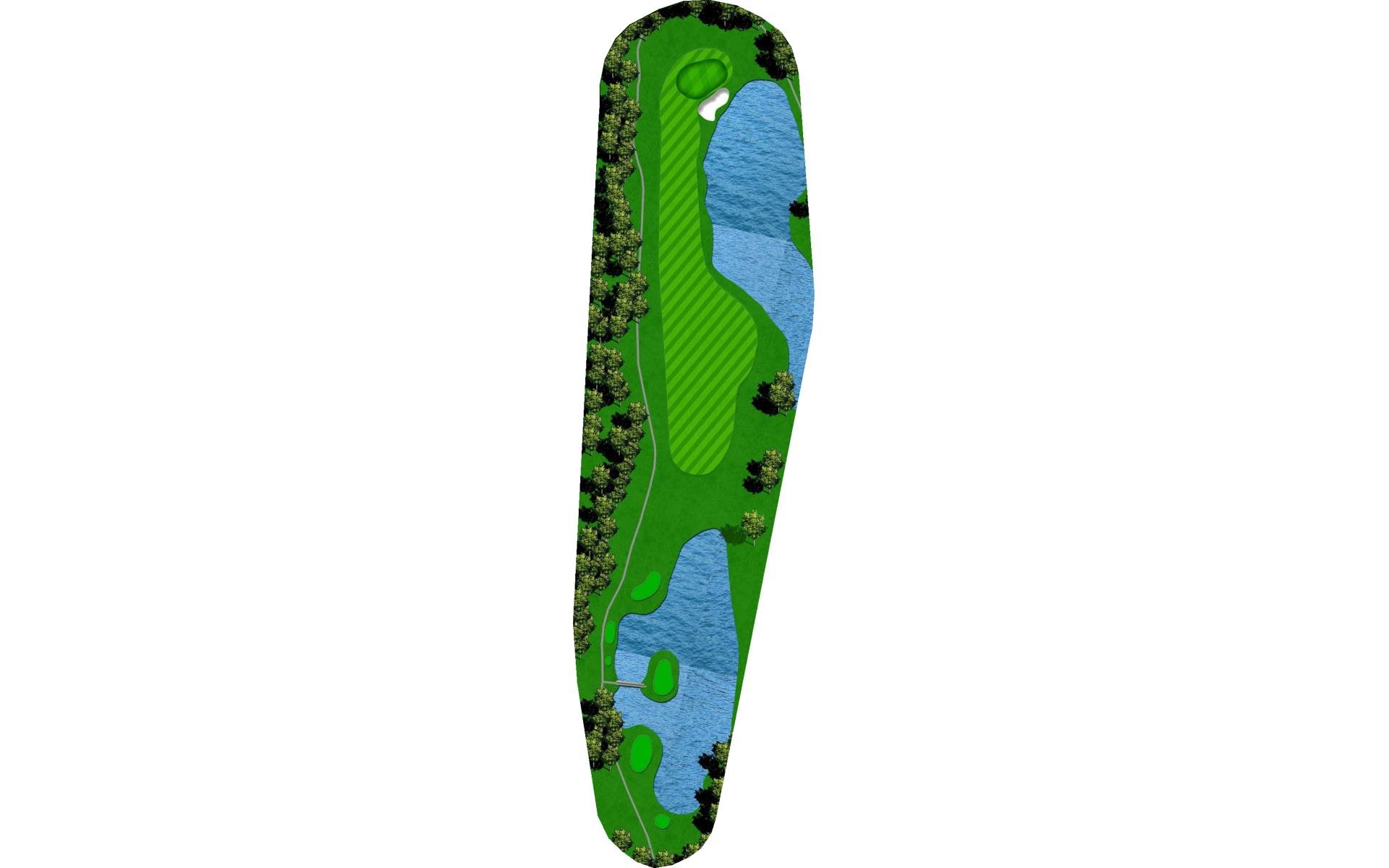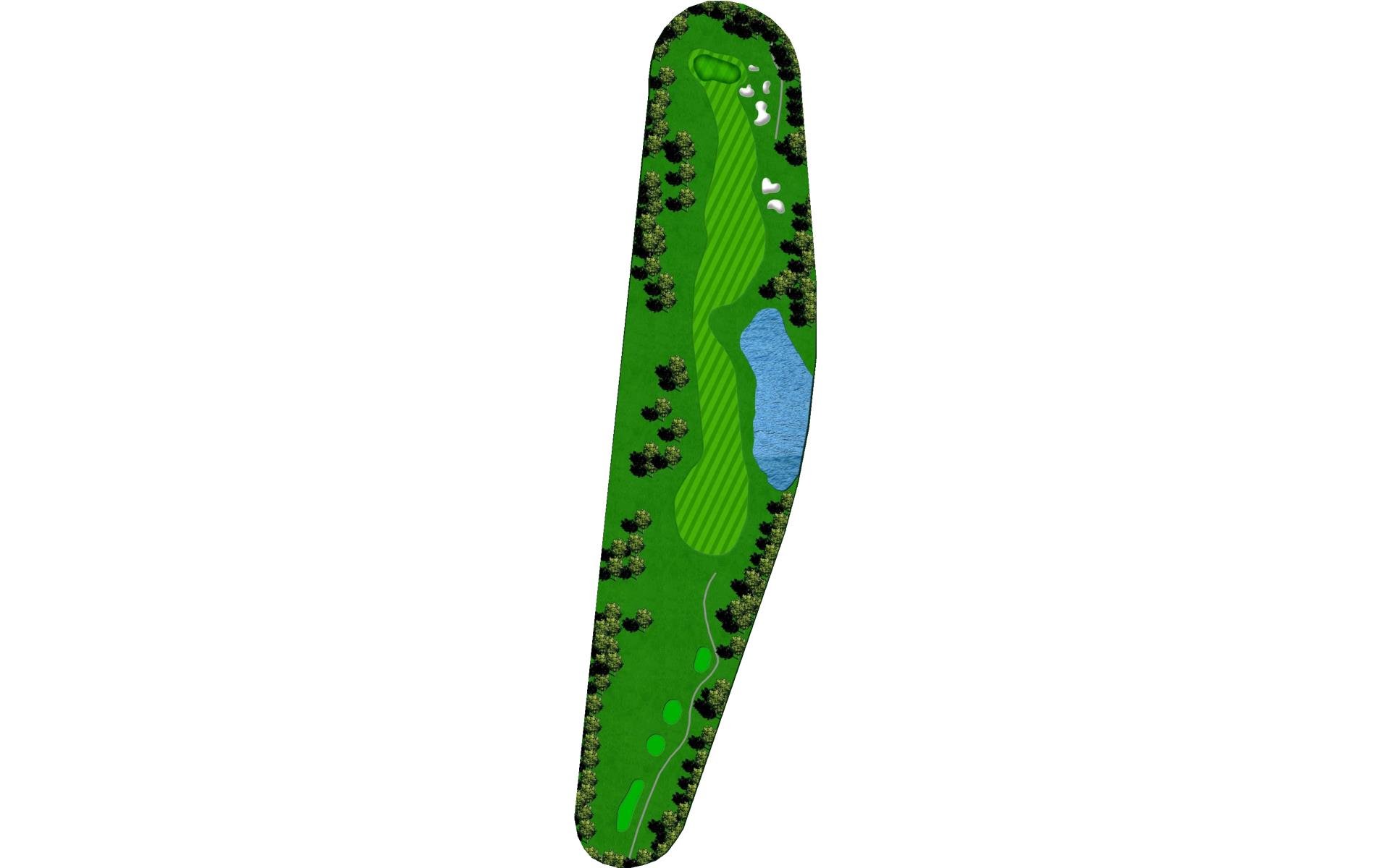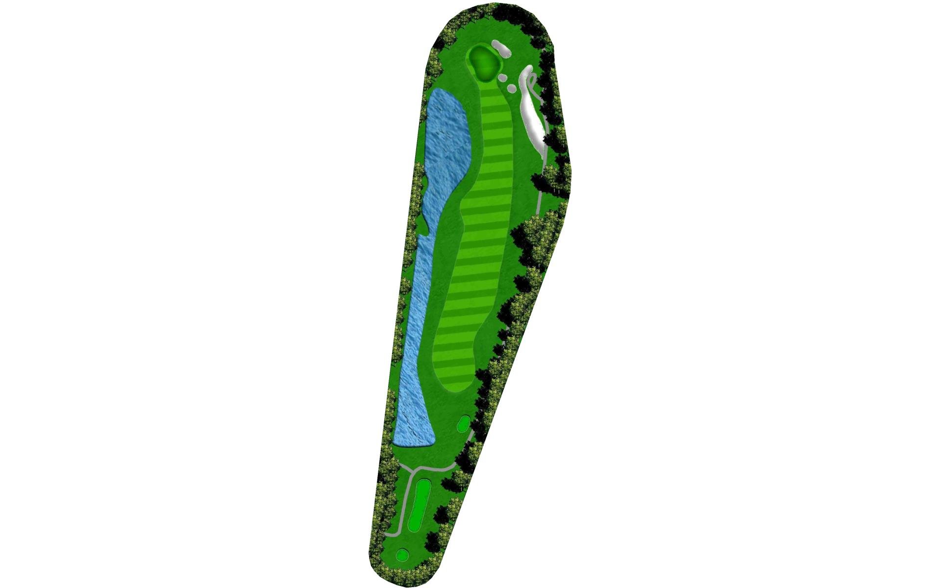 A Shot-makers PAR 5. With a long drive that favors the right side of the fairway, the green is reachable in two shots. An excellent high-risk, high reward approach shot into the green can lead a great score. The less riskier Lay-up second shot will leave you with a wedge or short iron third shot into green.