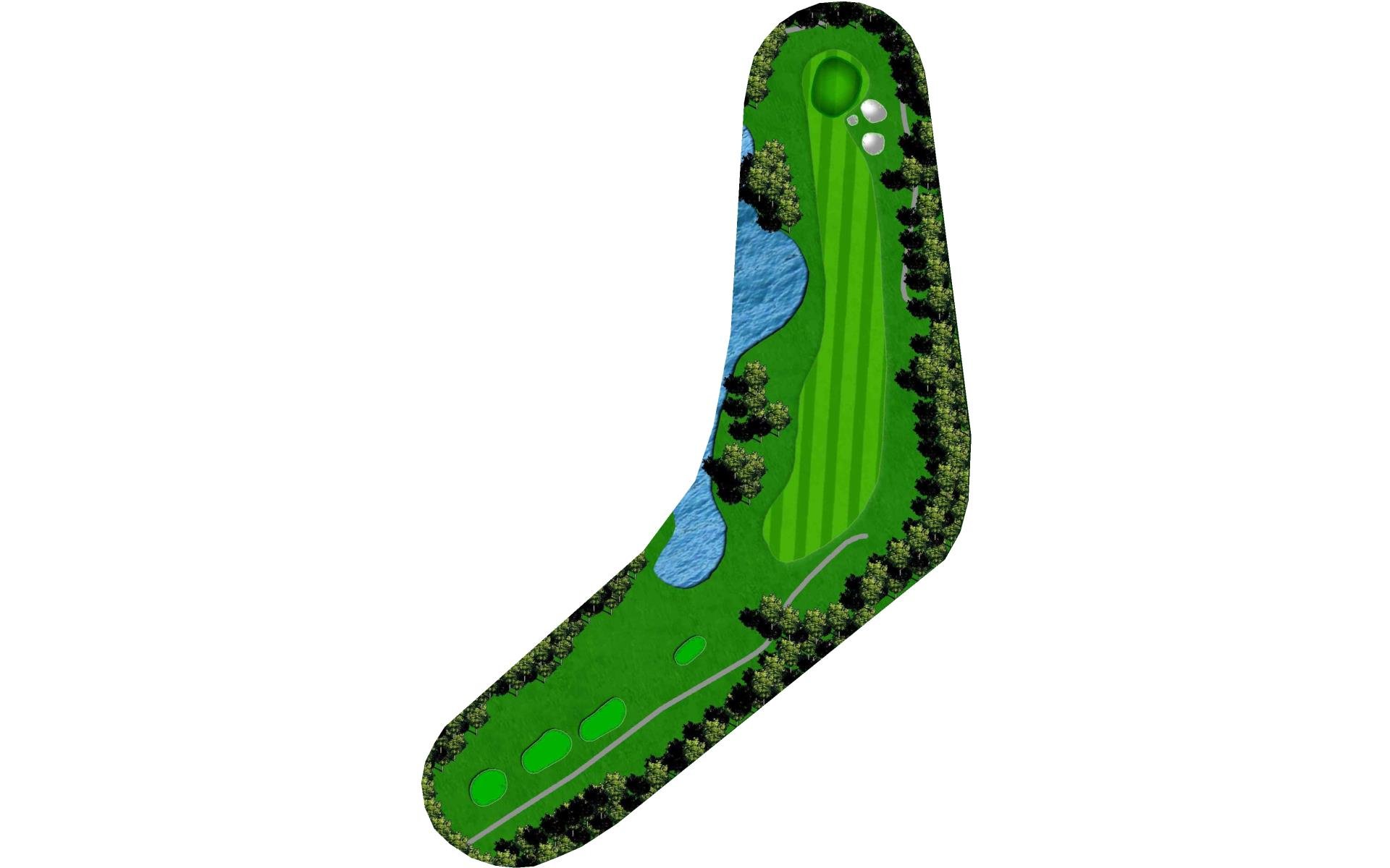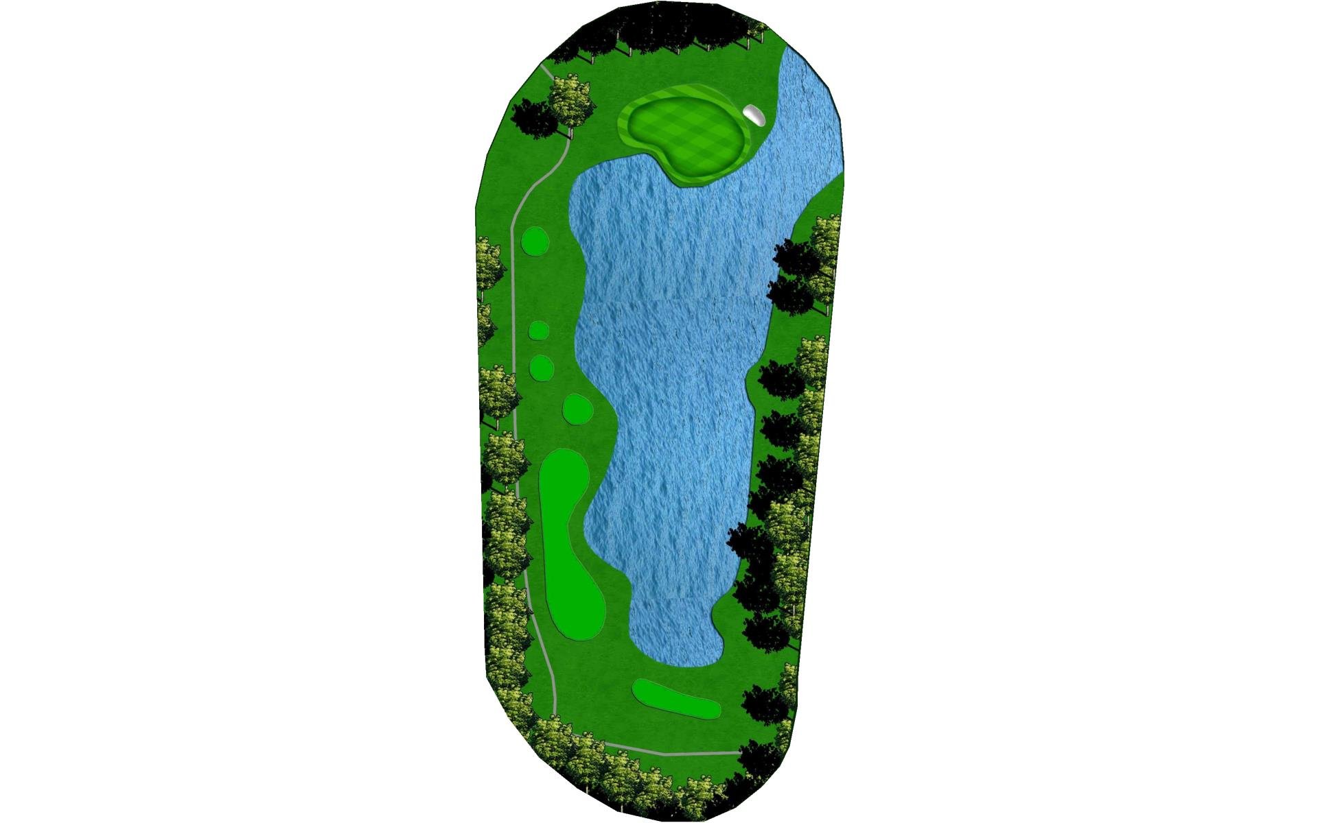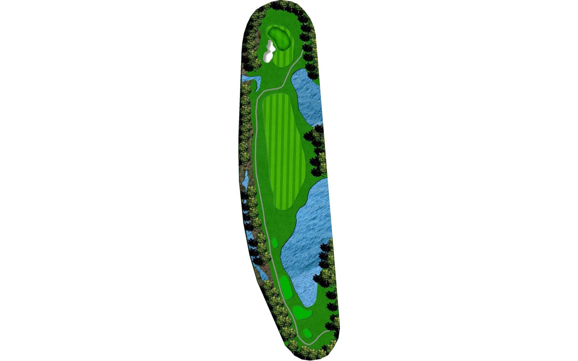A Shot-makers PAR 5. With a long drive that favors the right side of the fairway, the green is reachable in two shots. An excellent high-risk, high reward approach shot into the green can lead a great score. The less riskier Lay-up second shot will leave you with a wedge or short iron third shot into green.