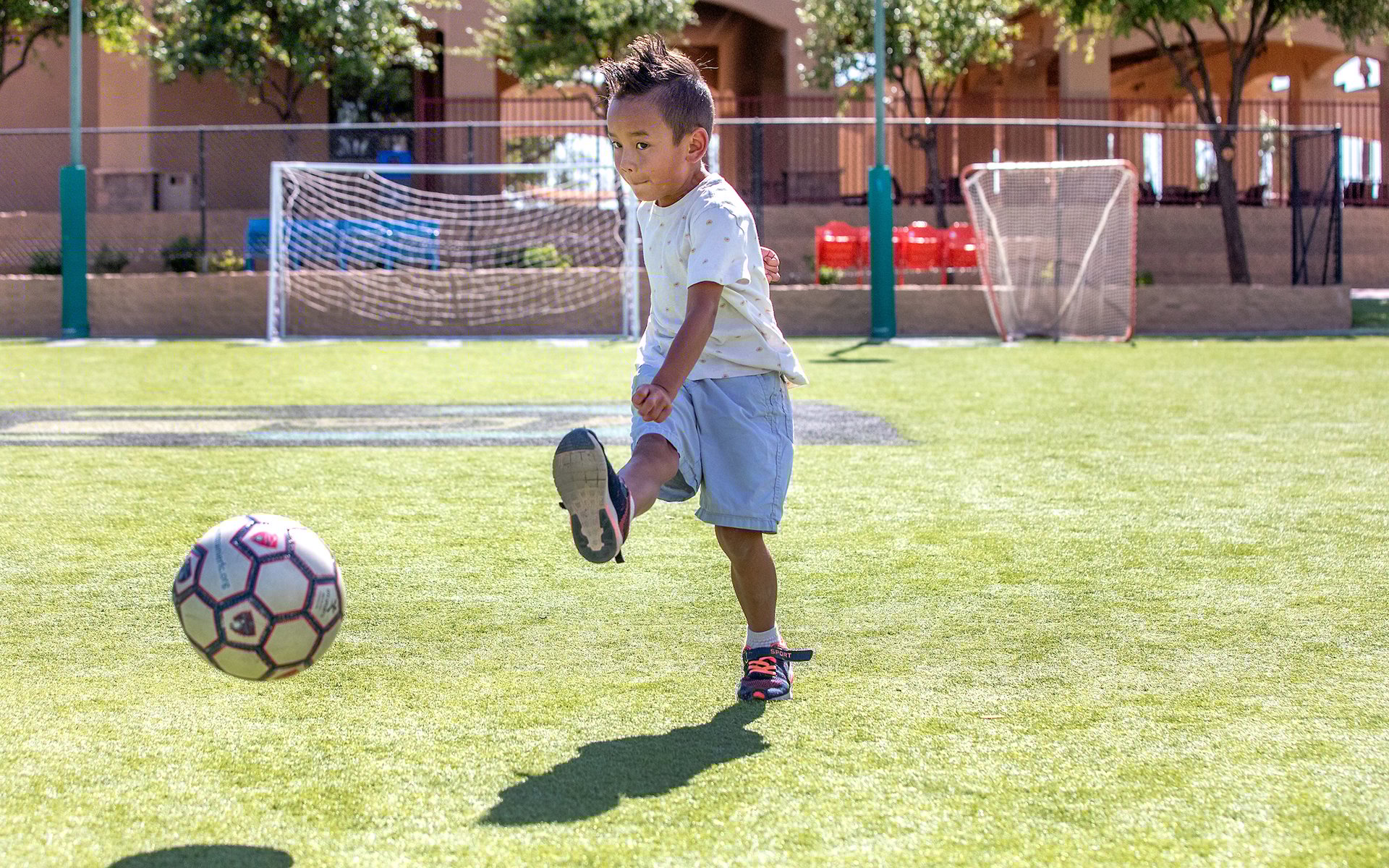 Enter the Sports Zone and get ready for the ultimate resort recreation experience. Join us on the 10,000 square-foot artificial turf field for skills and drills, play a variety of your favorite games and activities like soccer, football and more. We also offer a batting cage where you can practice your swing and basketball court for casual or competitive play with family and friends.