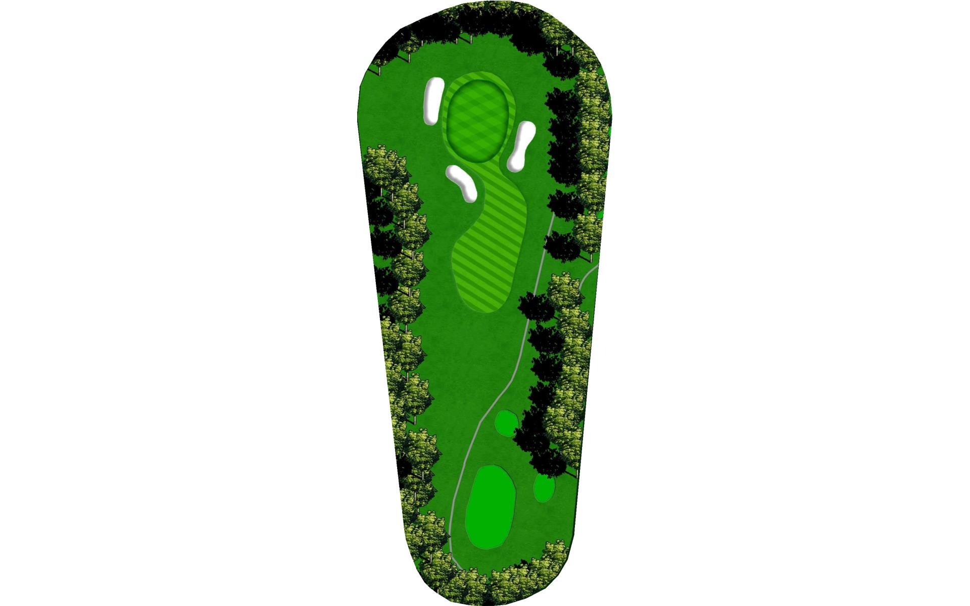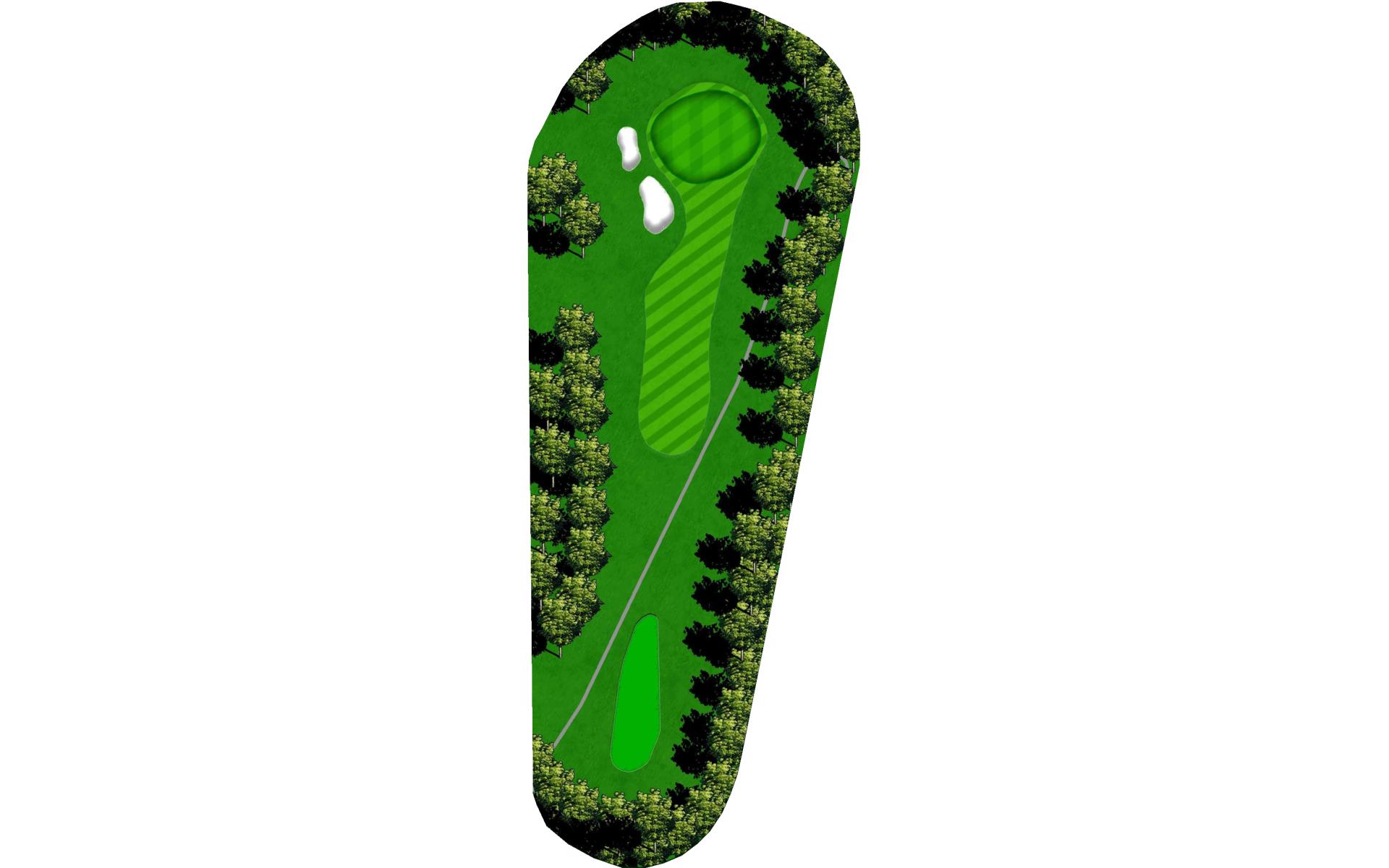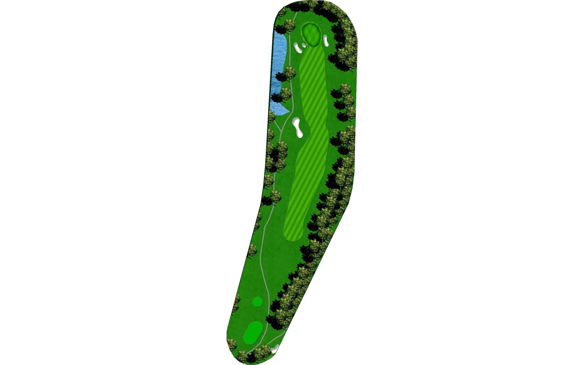 Difficult short hole that features a hazard down the left side and a challenging sloped back to front green. Stay below the hole.