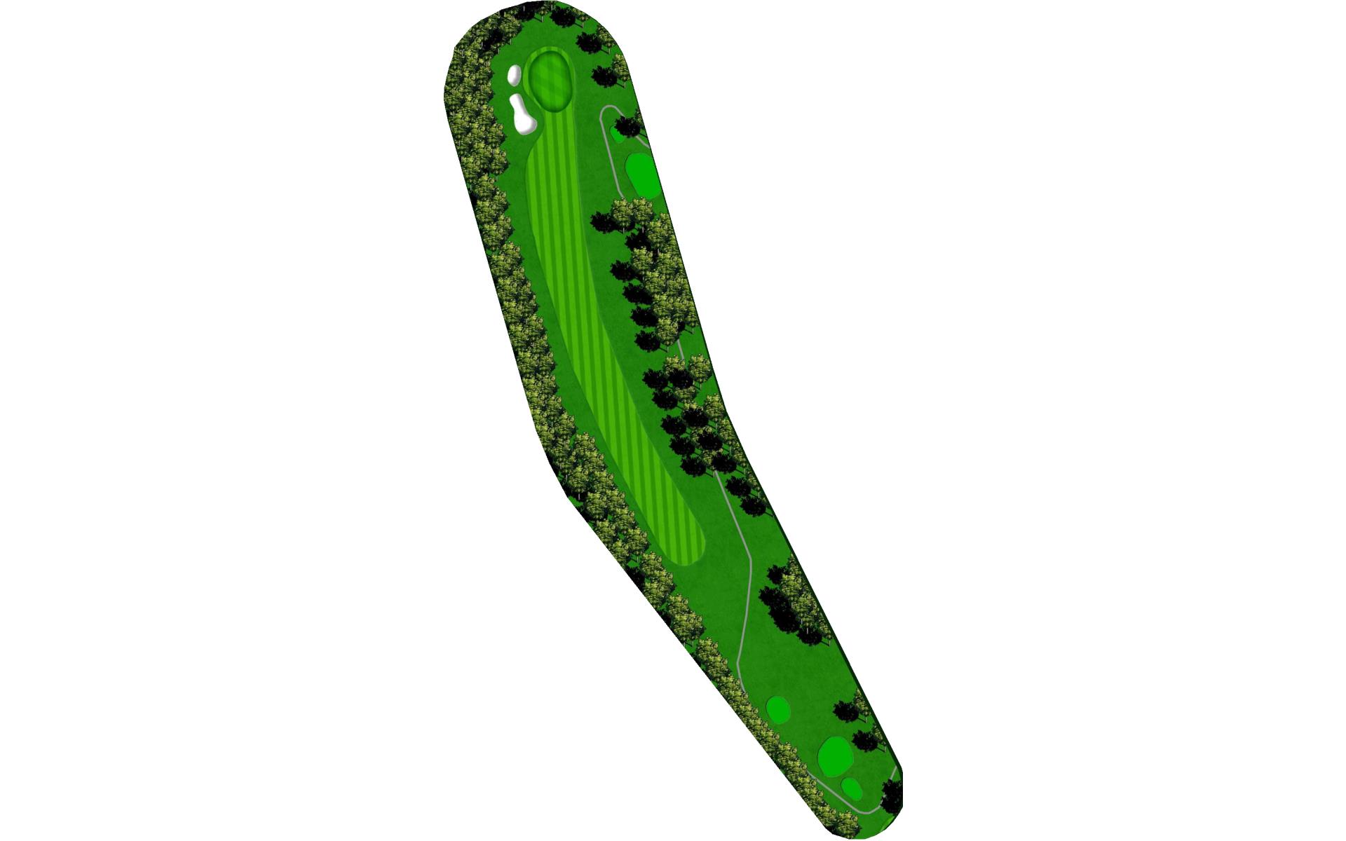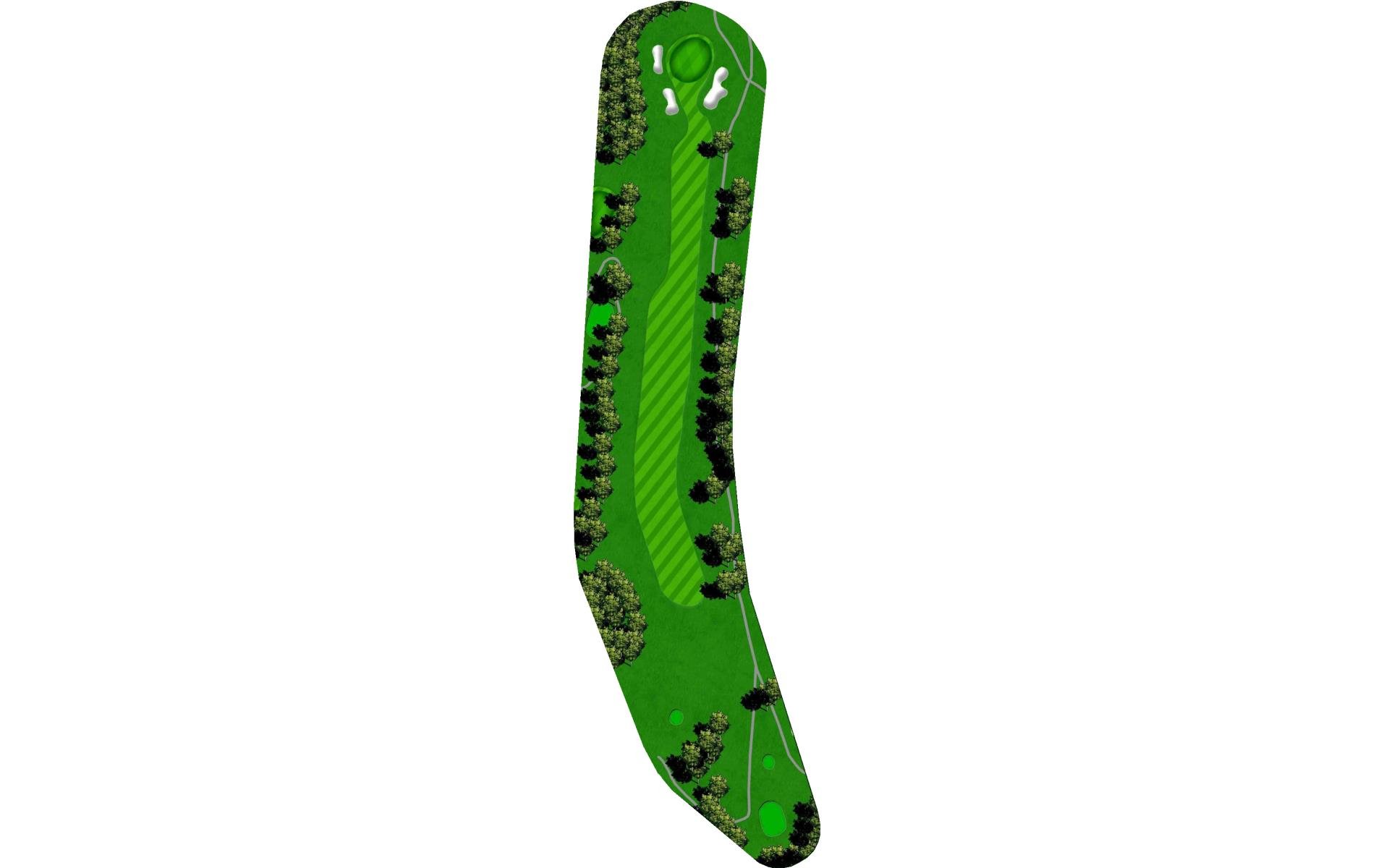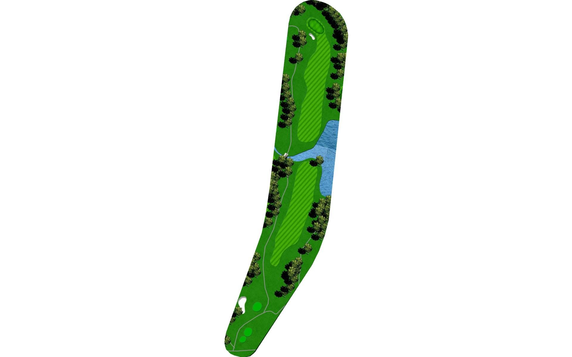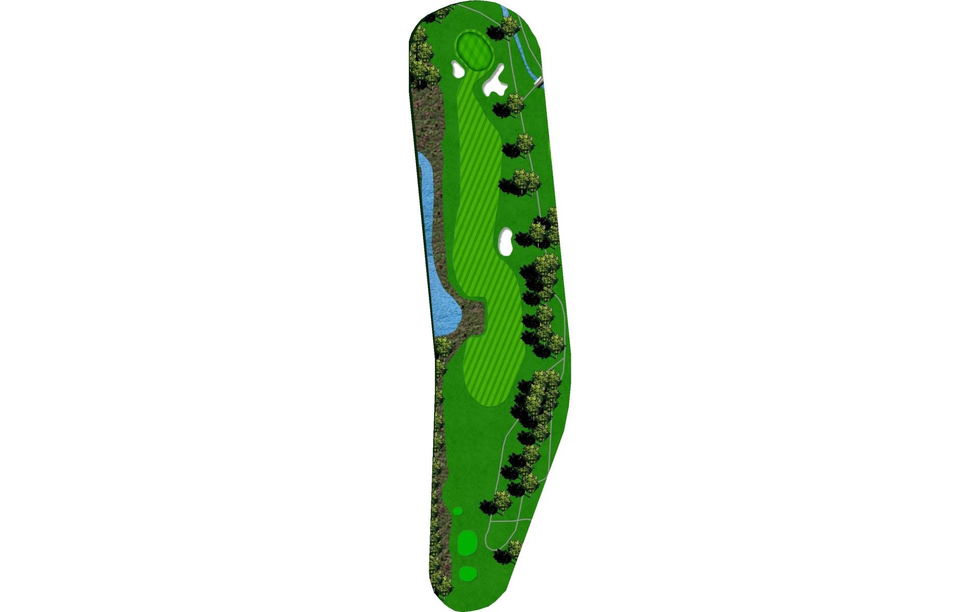 Difficult short hole that features a hazard down the left side and a challenging sloped back to front green. Stay below the hole.