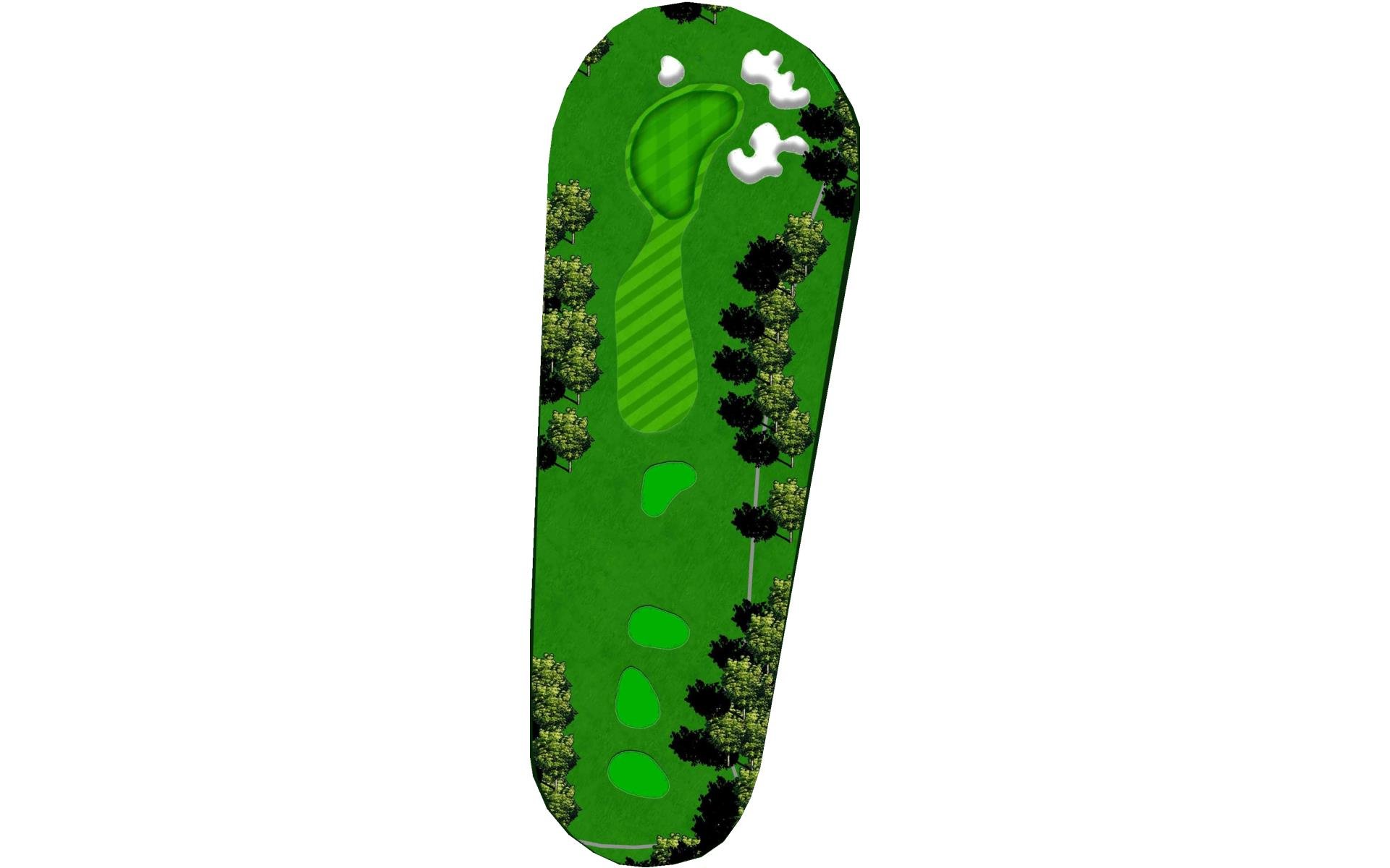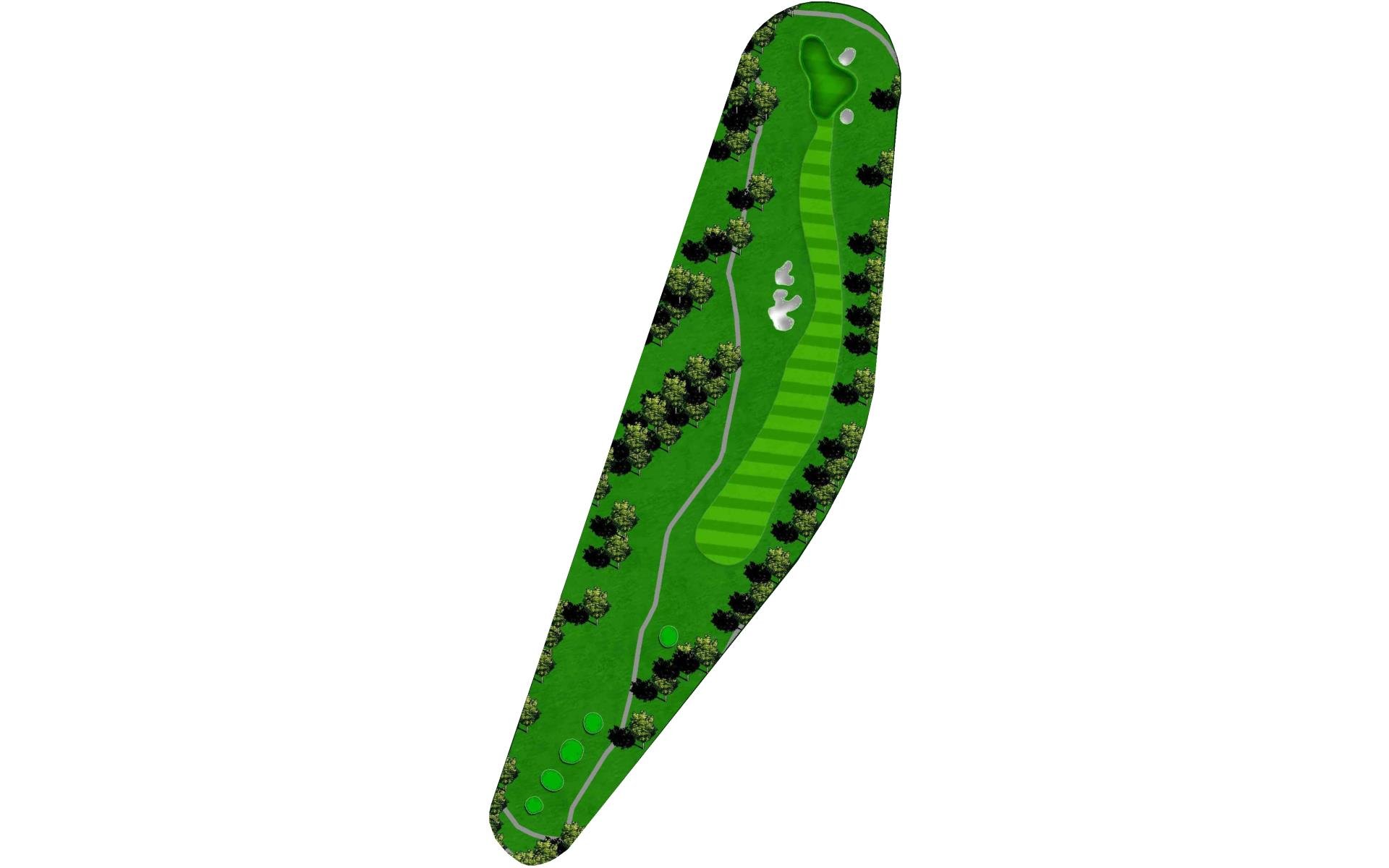 Is a challenging par 3.The safe shot here is to take aim at the front-middle of the green.This green is protected on the right and left sides.