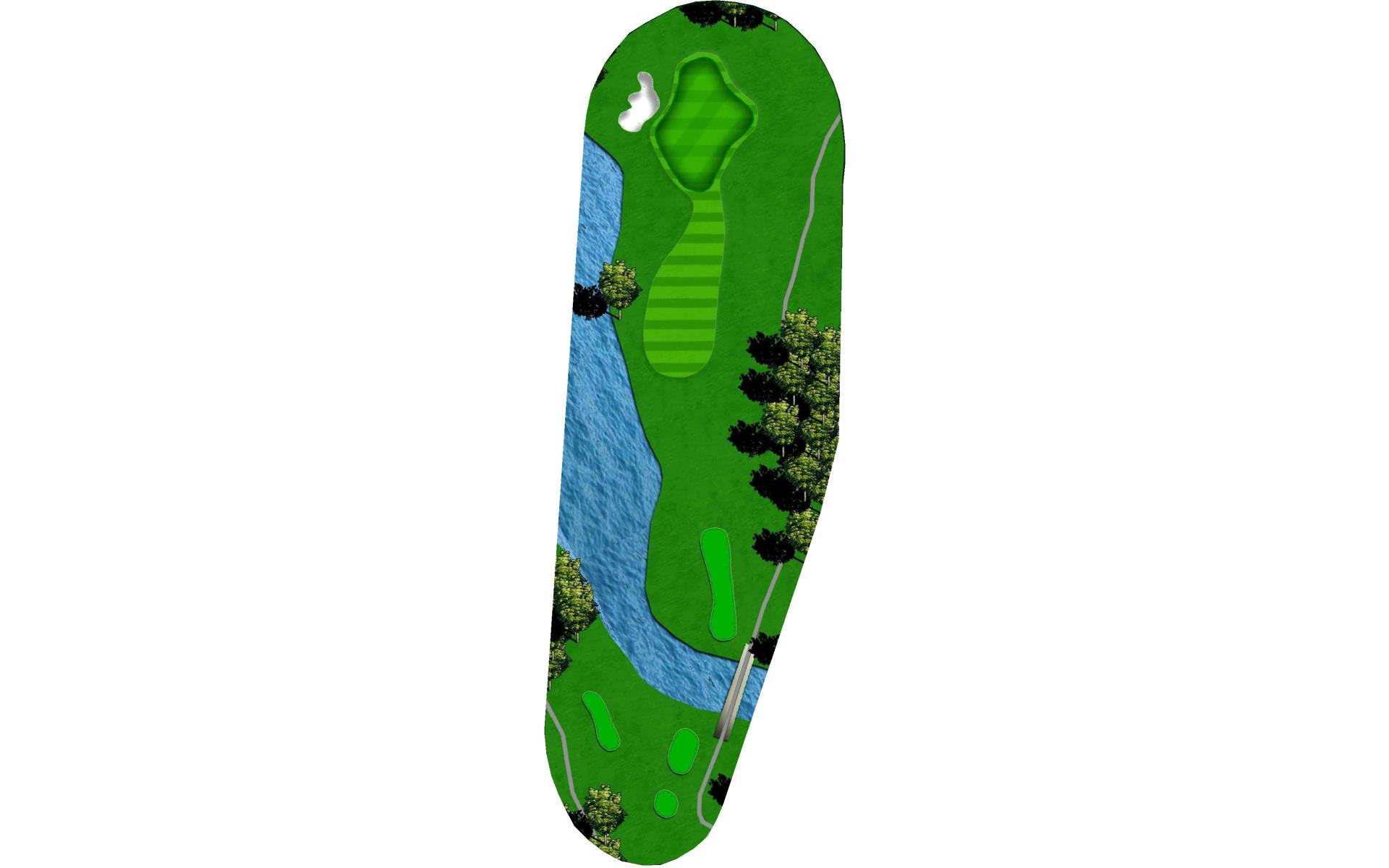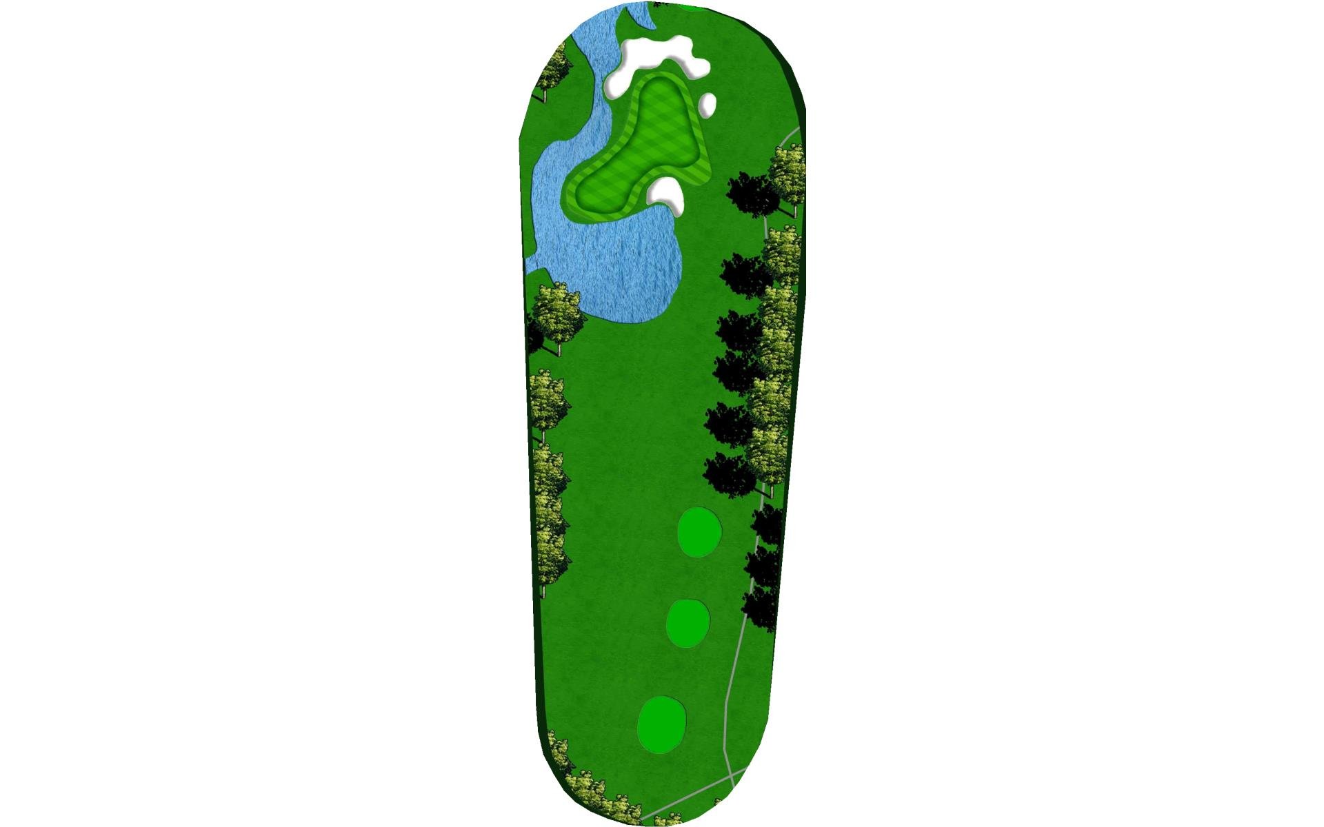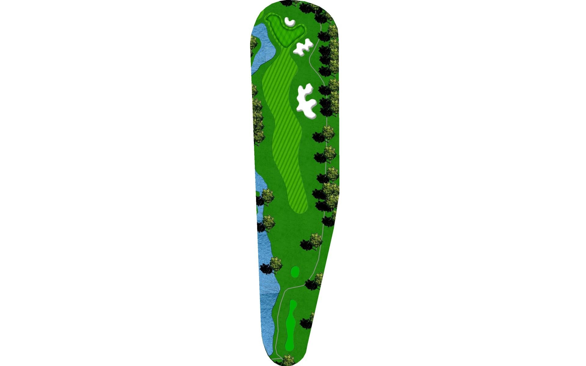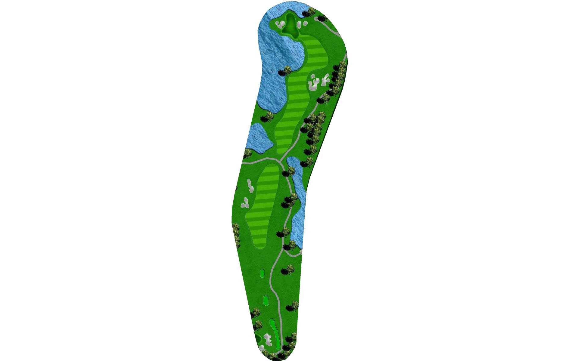 Long par 5. Driver or 3 metal off the tee is the play on this long Par 5. A pond about 270 yards out comes into play with any tee shots that miss the fairway on the right side. Another pond begins on the left side of the fairway roughly 200 yards away from the green and wraps around the left side to the back of the green. Layups must be positioned correctly as water comes into play on both your 2nd and 3rd shots.