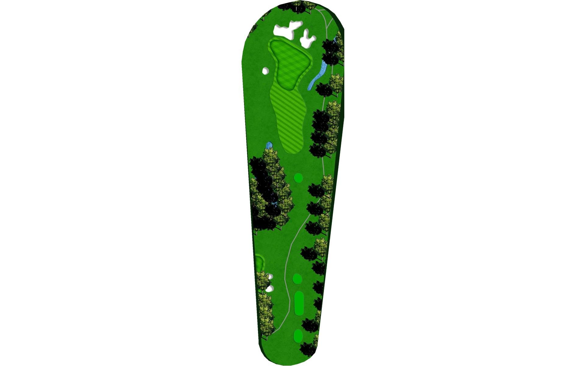 The tee box is extremely elevated from the fairway. Shorter hitters can take dead aim at the bunkers on the left side of the fairway. Longer hitters can take a driver over the trees on the right side. Shots onto the green need to be accurate as a pond surrounds the right and back side of the green with not much room for error.