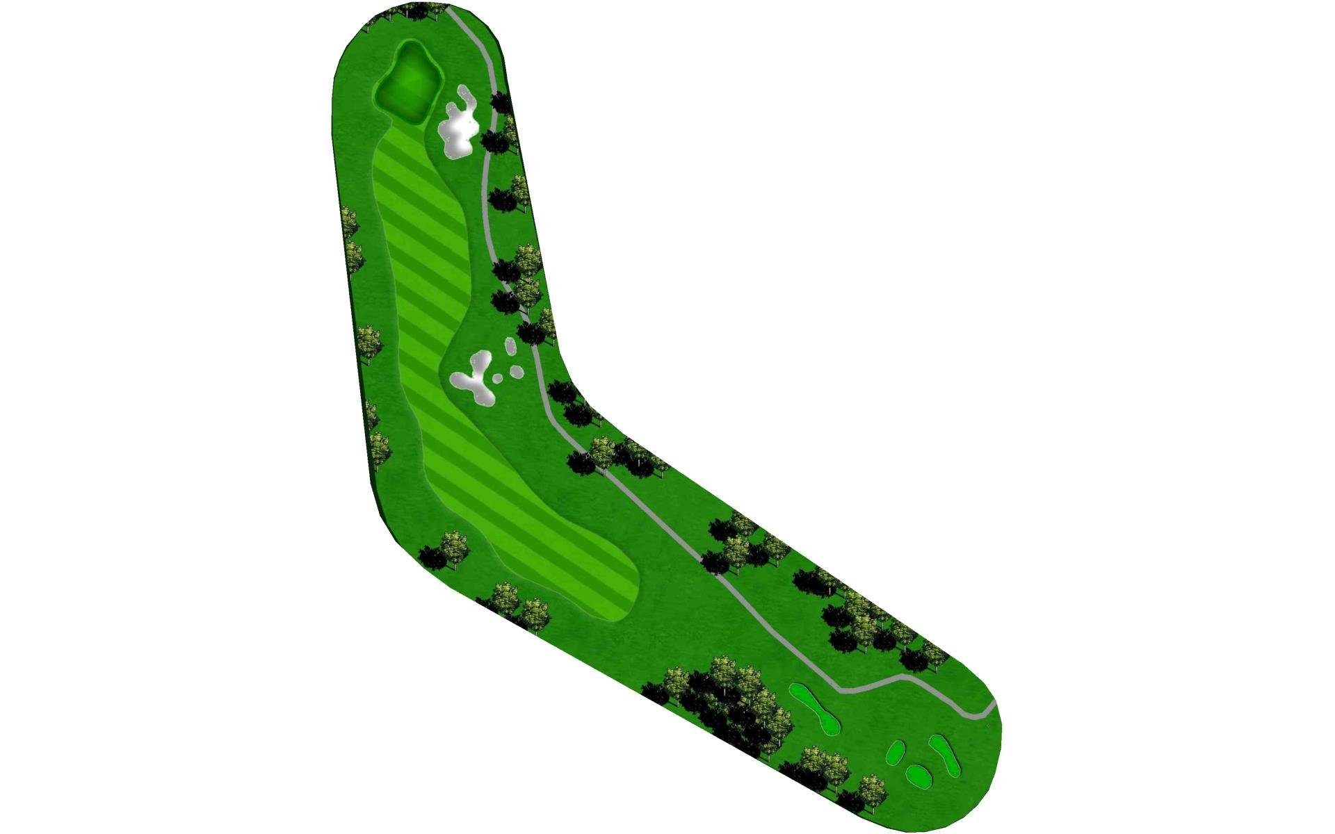 A difficult par 4, this dogleg right demands some distance and accuracy off the tee.The tree at the neck of the dogleg is your guide.Your tee shot needs to be beyond the tree and you’ll want to favor the right side. Anything left adds significant distance to your approach.