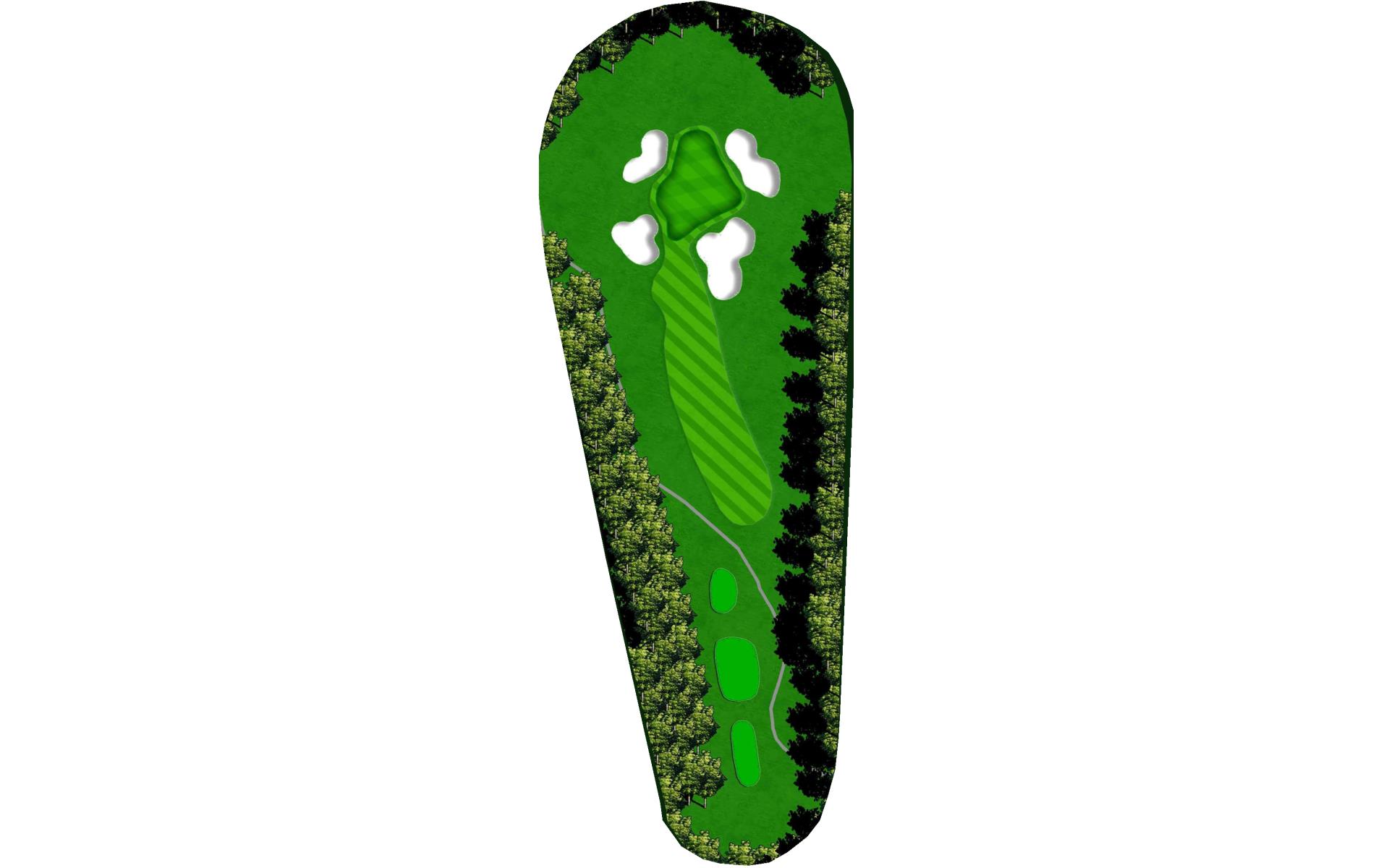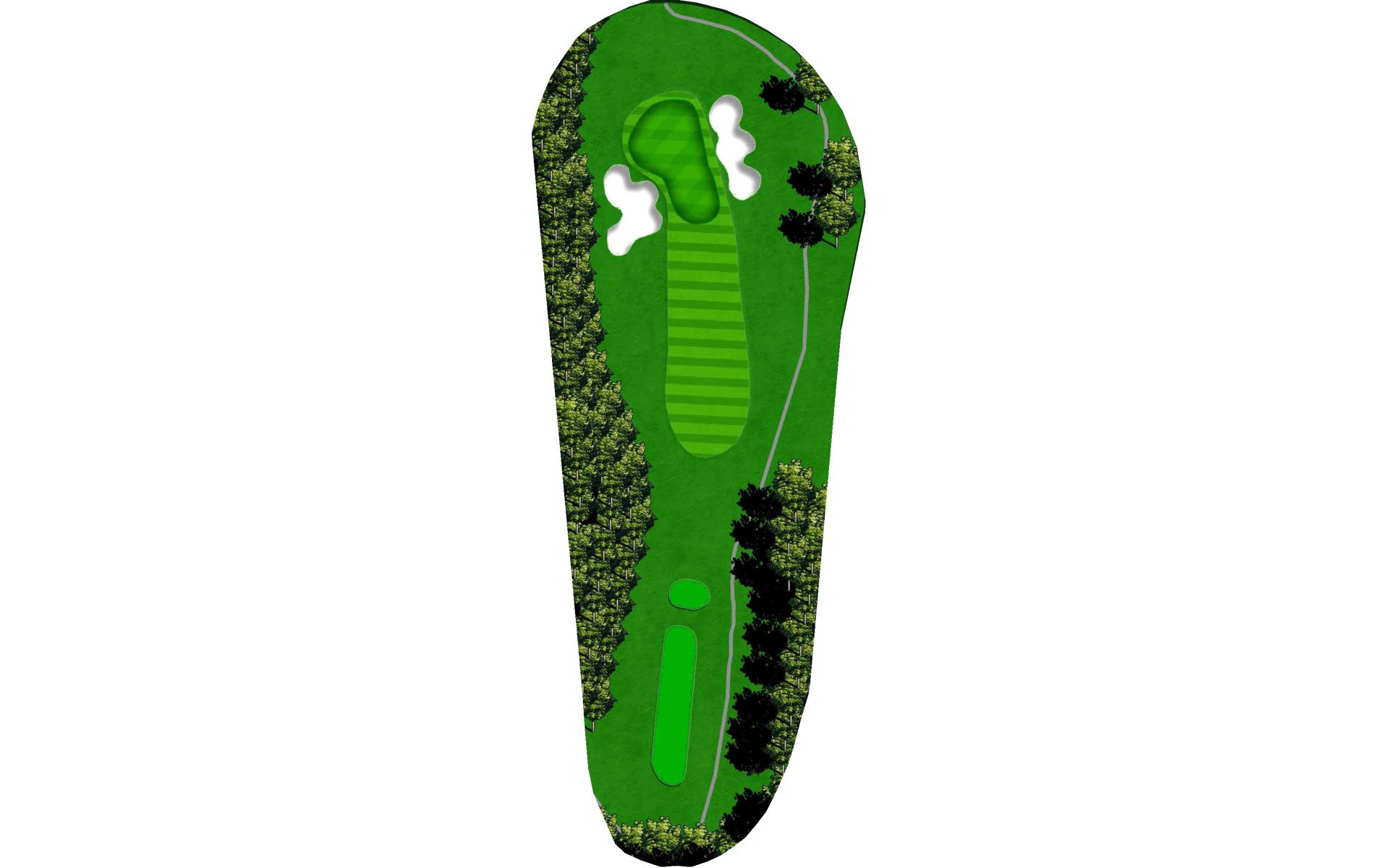 It’s all about the drive on this short par 4, with a green that’s protected by bunkers.It’s all about the drive on this short par 4, with a green that’s protected by bunkers.
