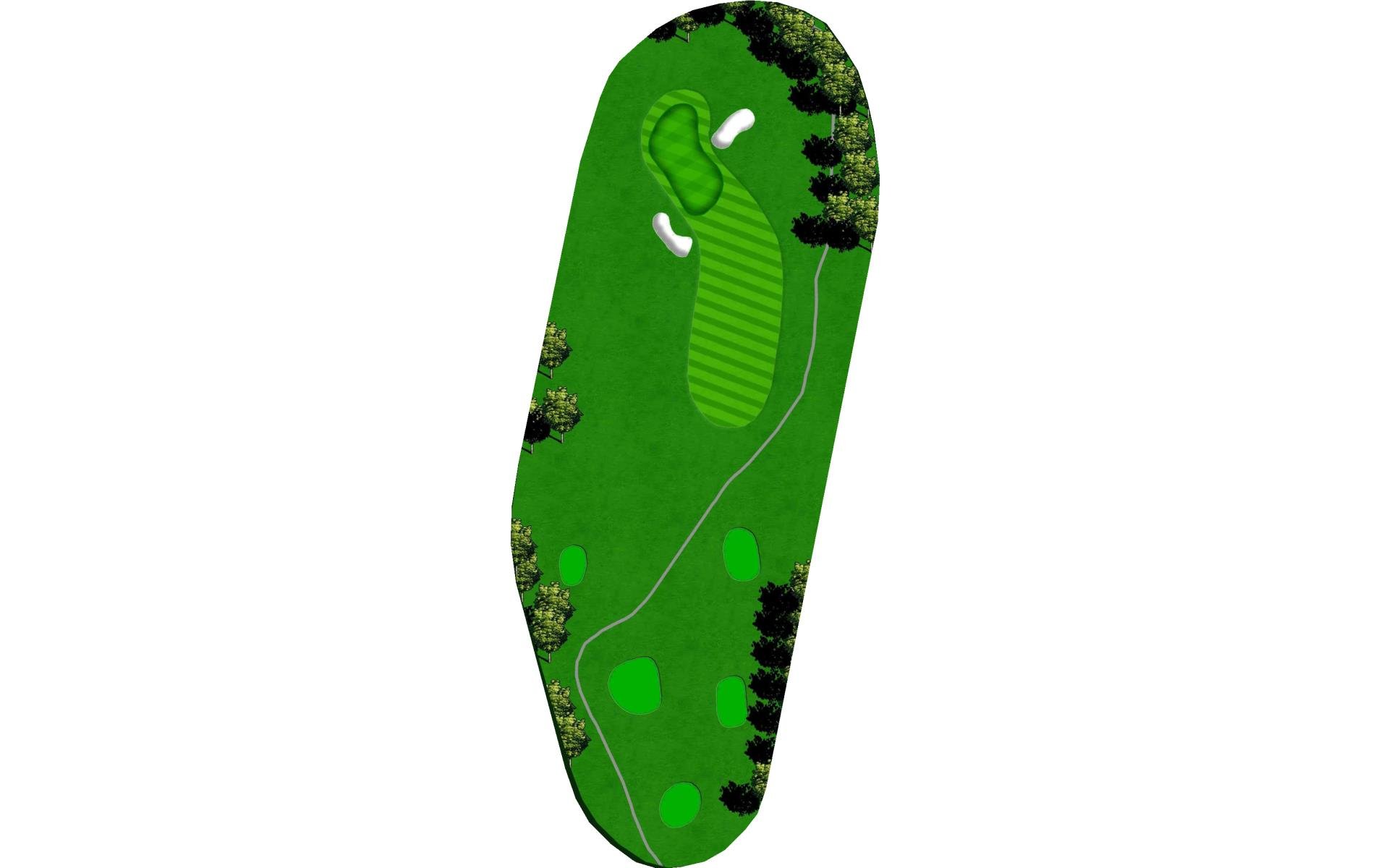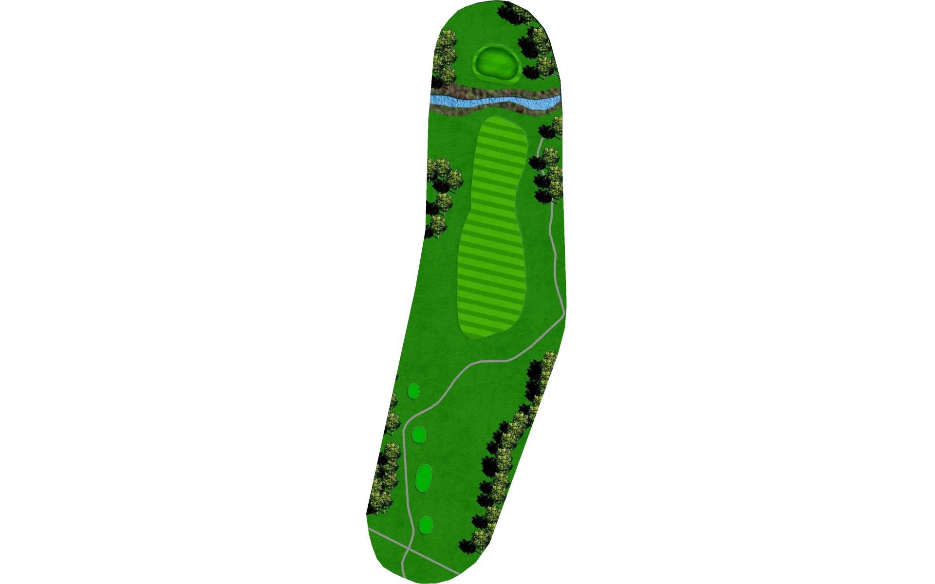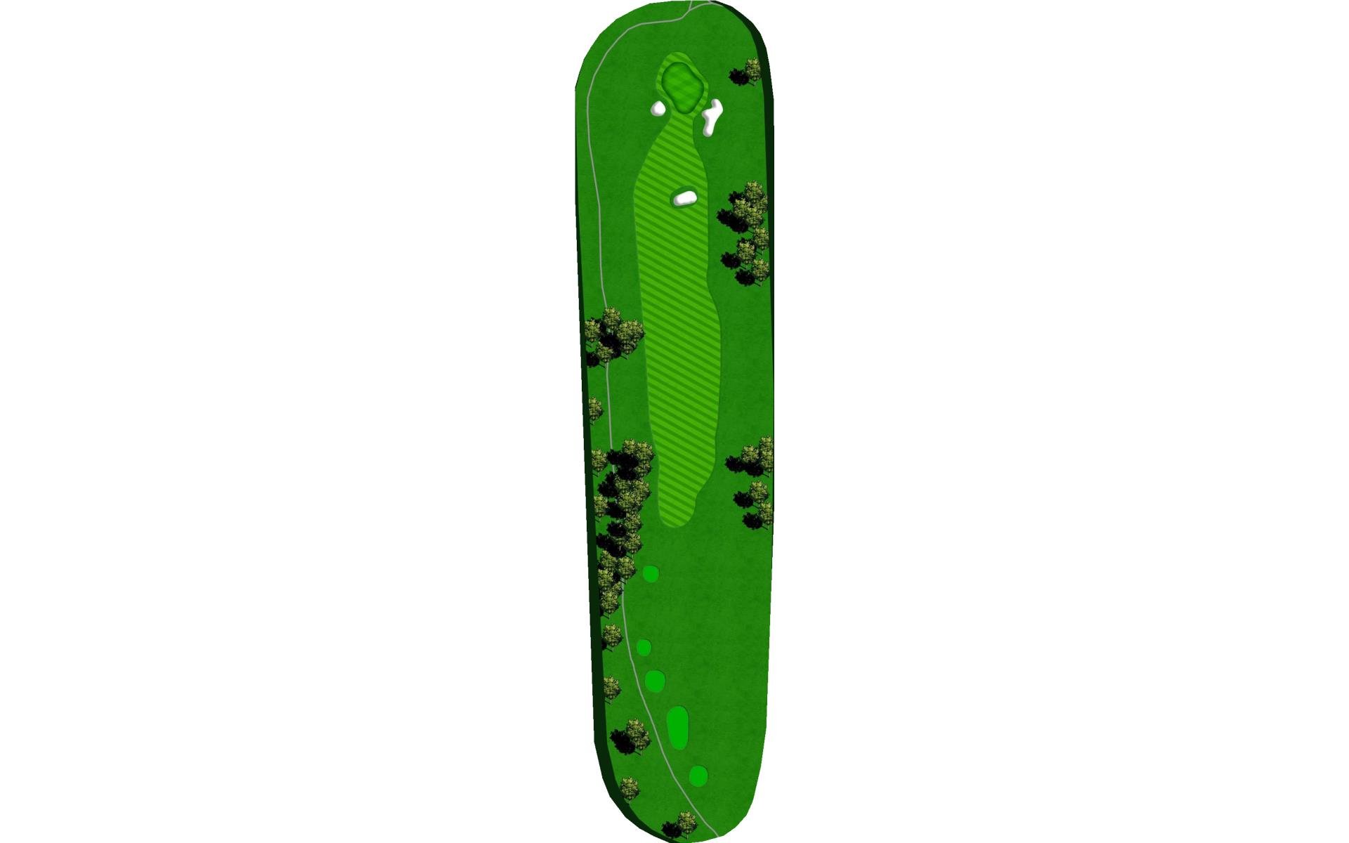 Favor the right side on this straight away Par 4. Bunkers on the left side of the fairway and green are waiting for errant shots.