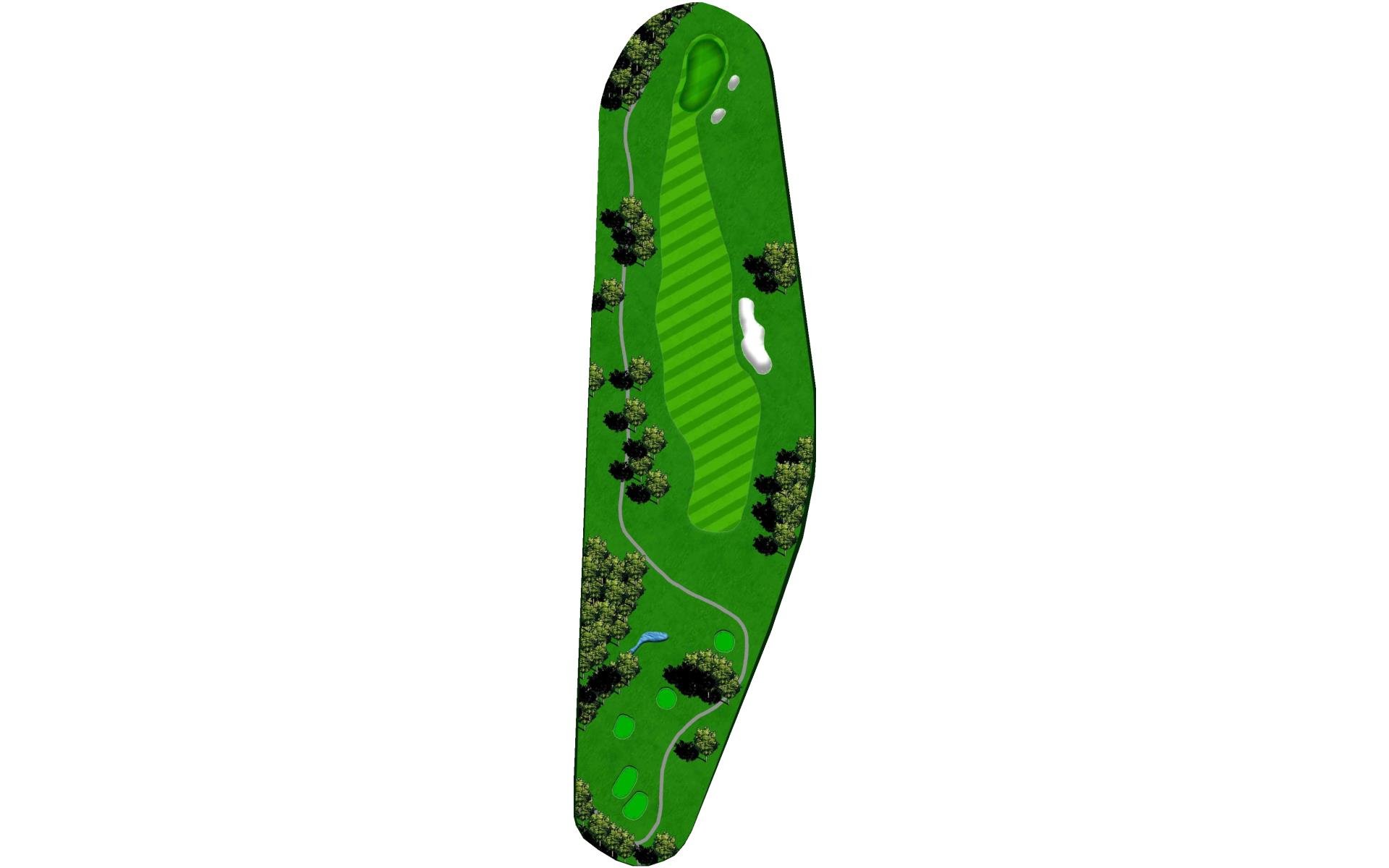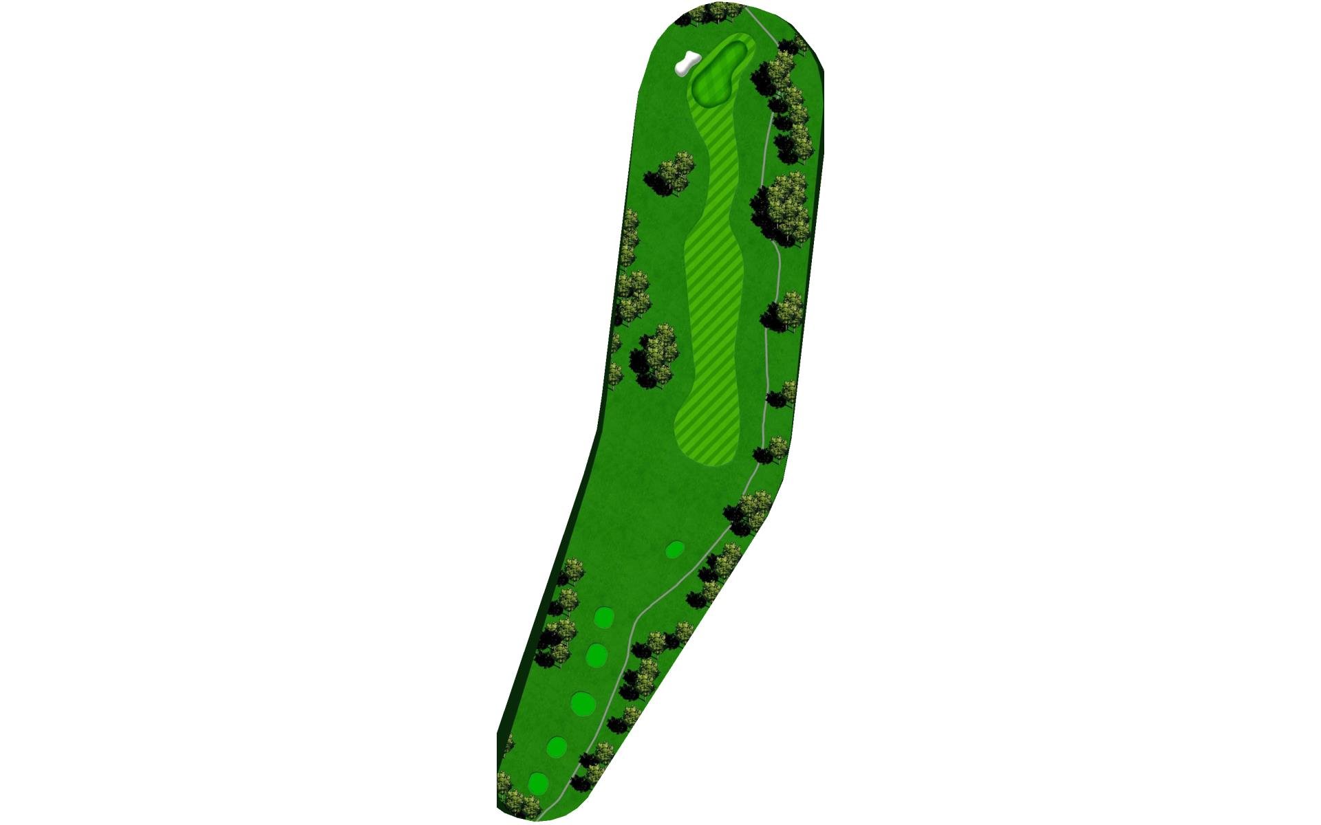 A large tee ball with a slight draw could roll out on the green. Be careful with your second shot as over the green will most likely lead to a double bogey or worse.
