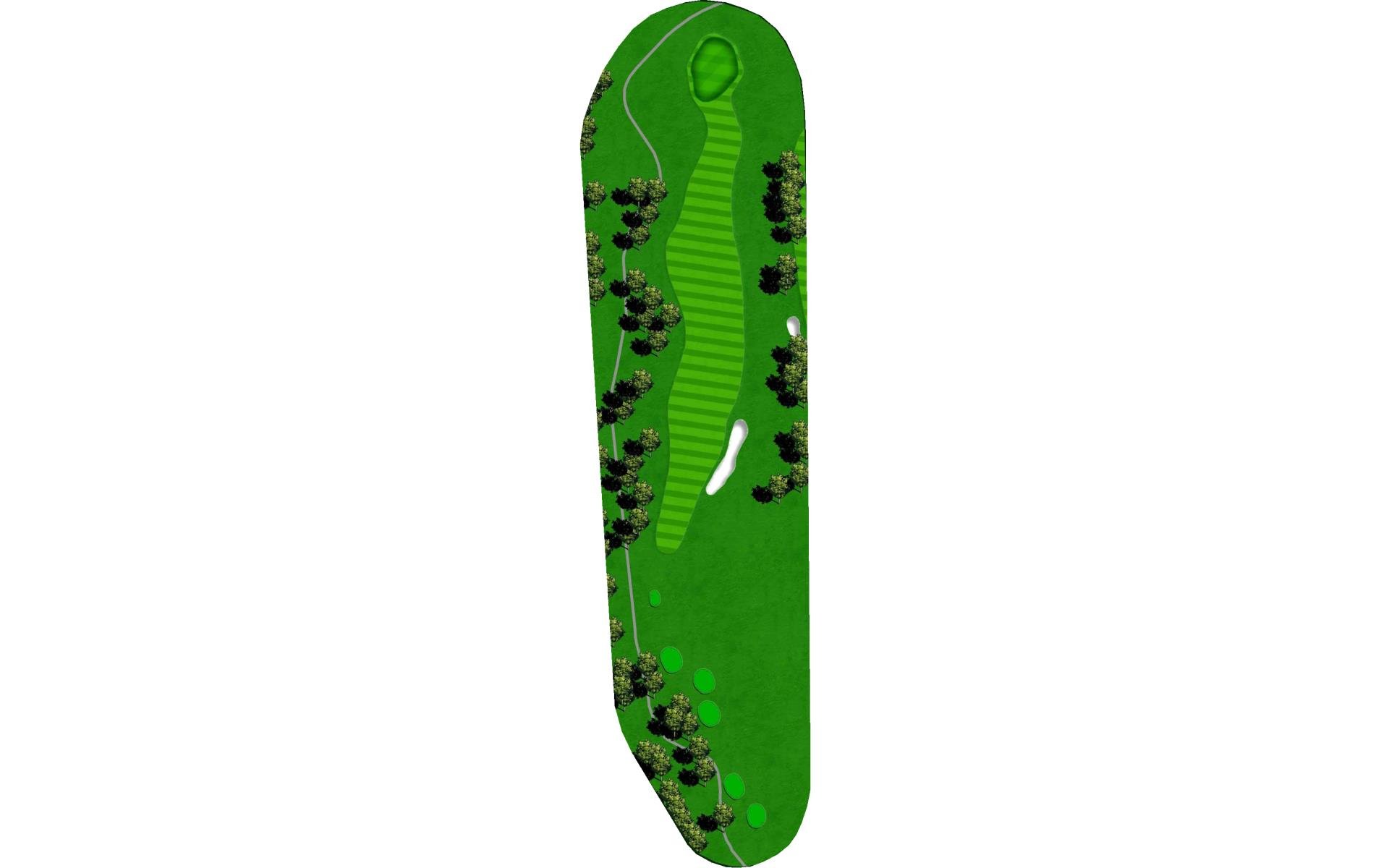 Can you turn it over? A slight draw is the play off the tee leaving you with a shot to a large green. Pick your club wisely on your second shot. Front to Back pin could be a 3 club difference.