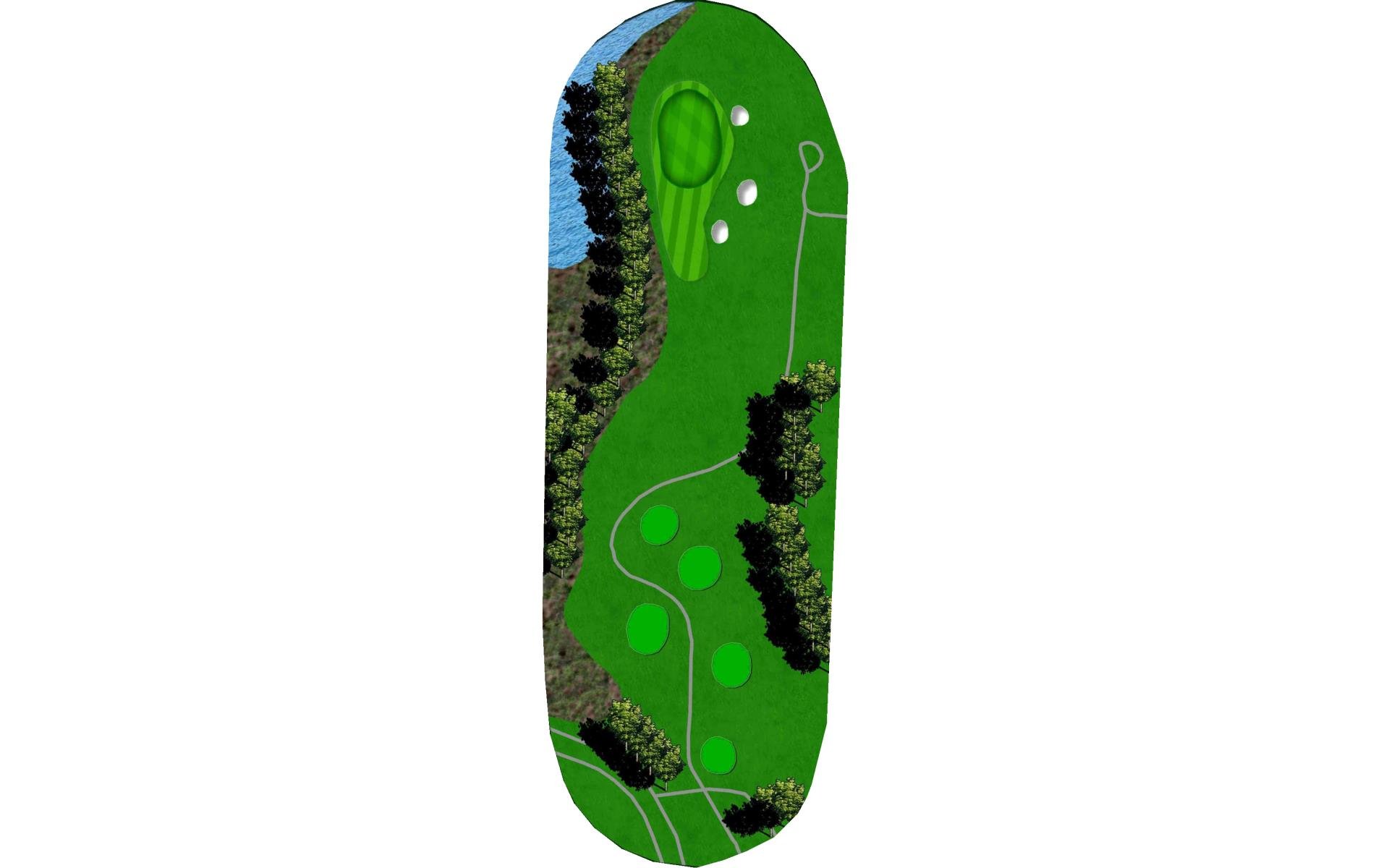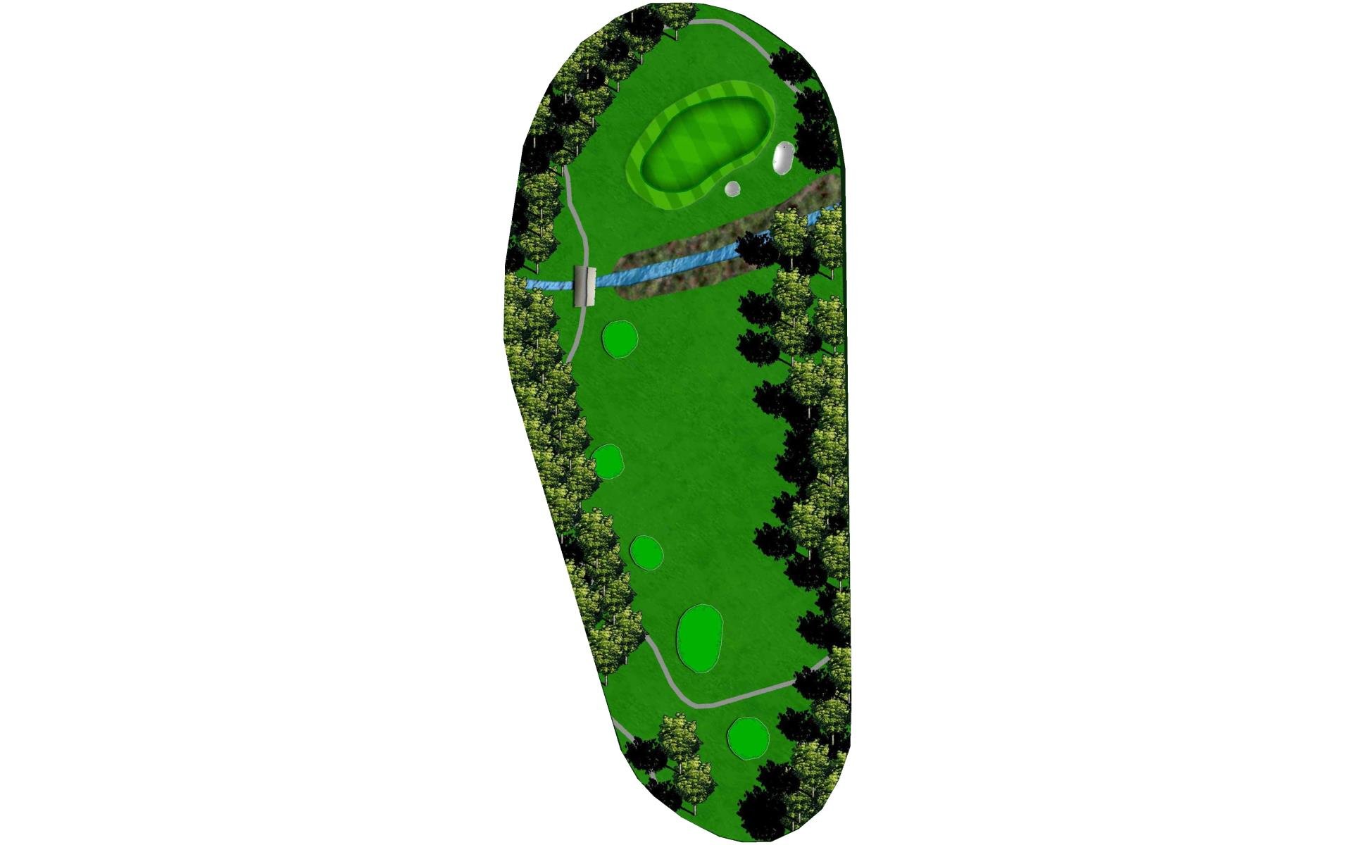 Take your time and make sure your tee ball hits the fairway. Your second shot must clear a large ravine that guards the front of this green. Accuracy on this hole a premium.