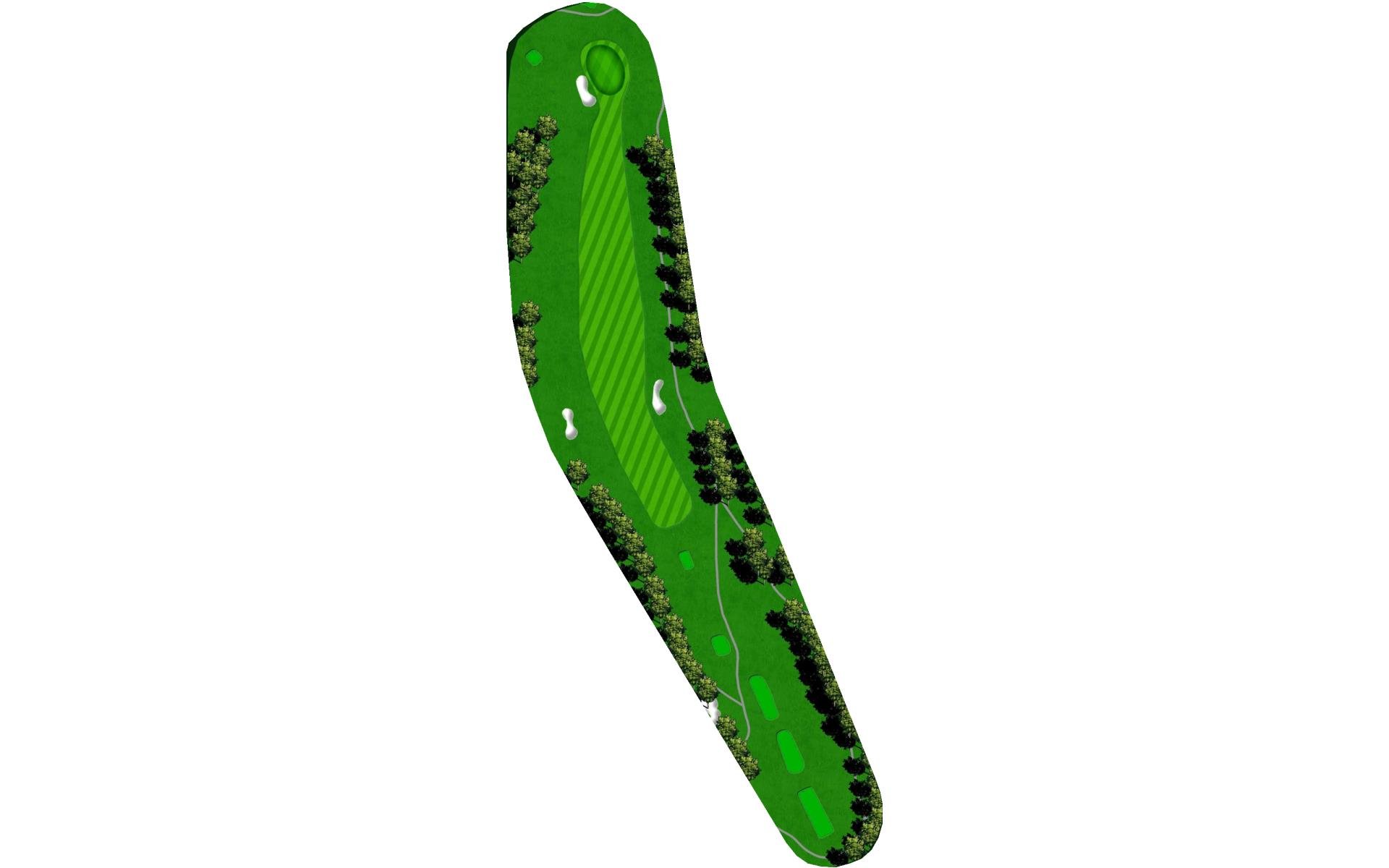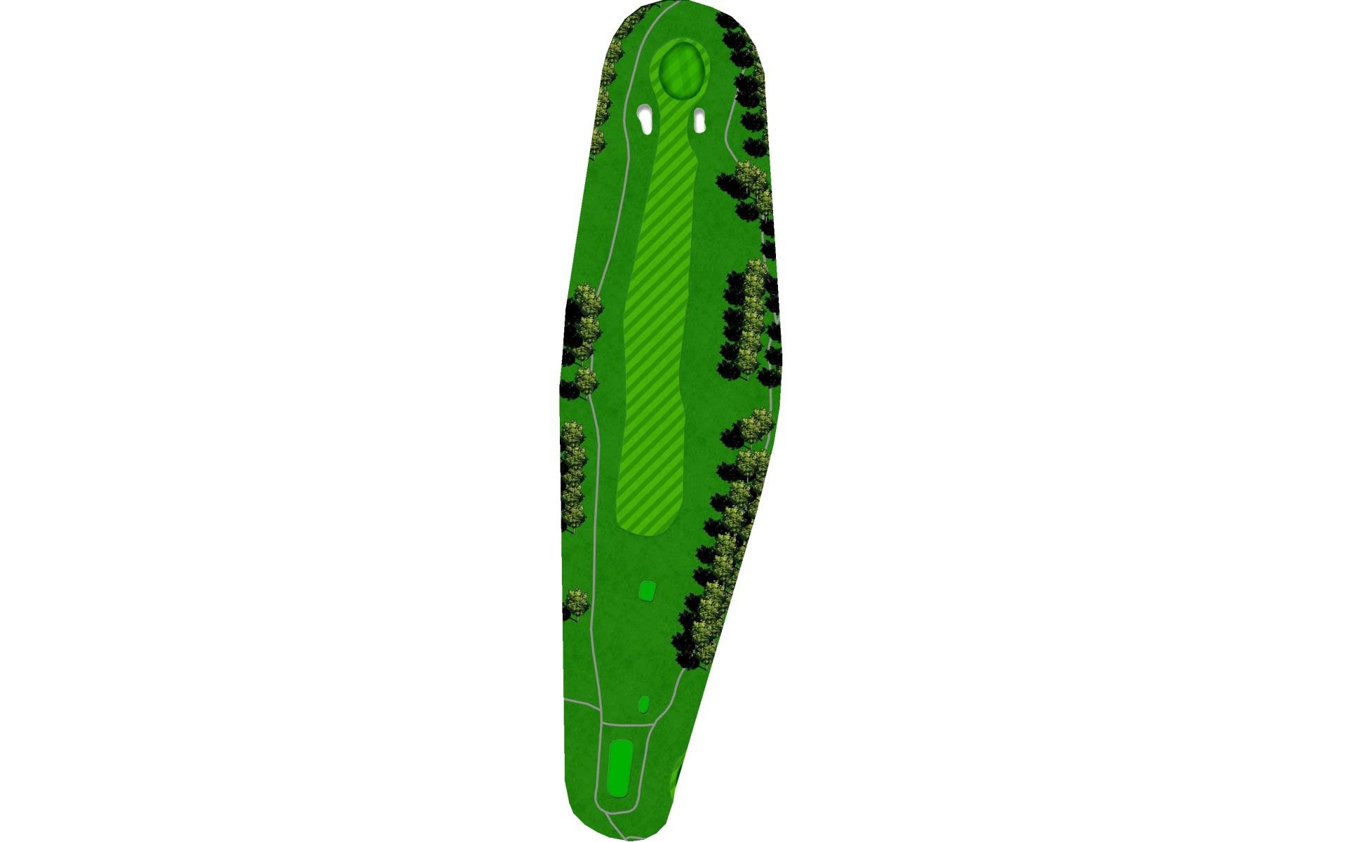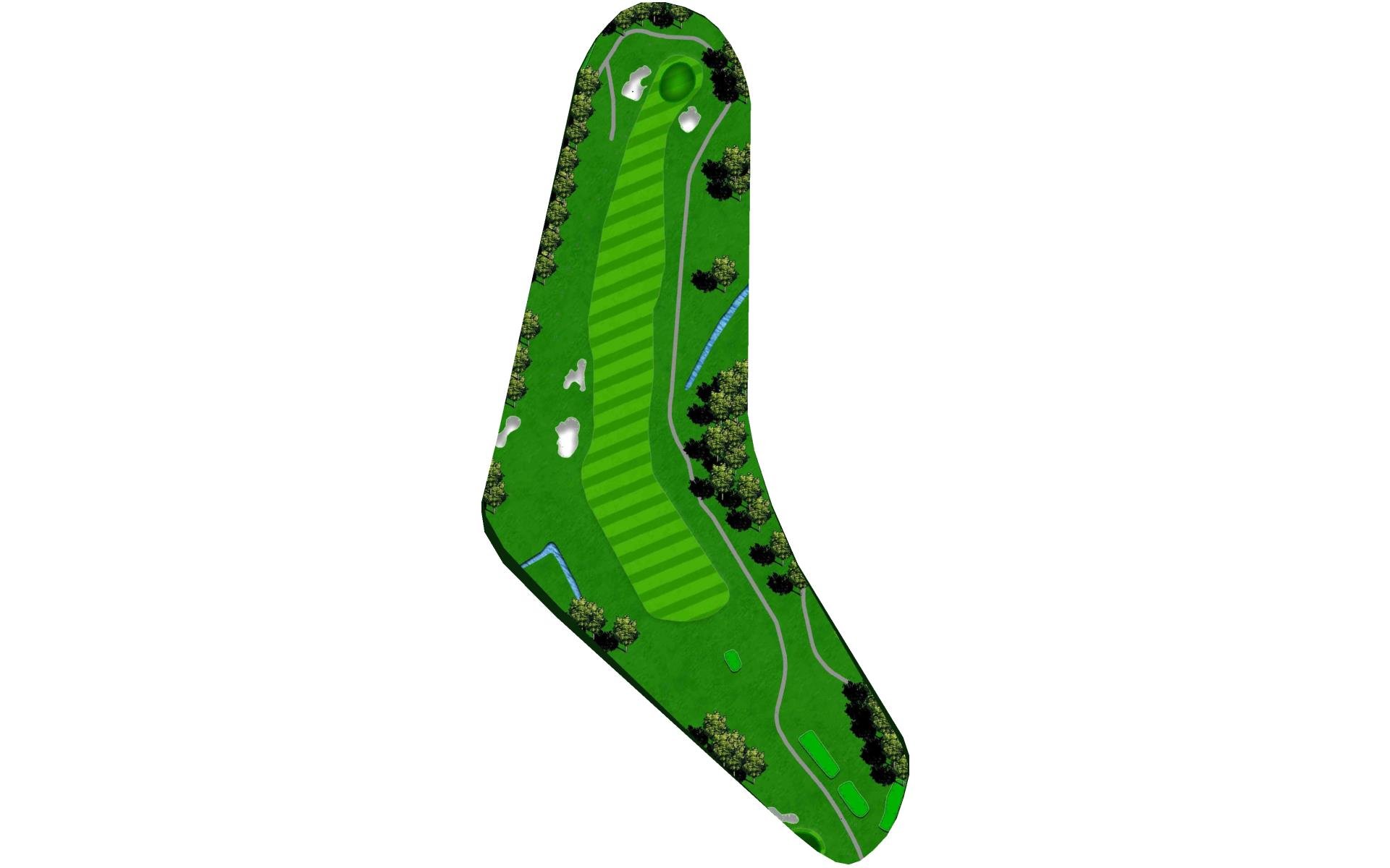 This hole slightly dog legs to the right and presents another quality par 4. Your tee shot has adequate area to land, but you will need to navigate a "chute" at the start. The green slopes severely from left to right allowing shots run up to reach even a back right hole location.
