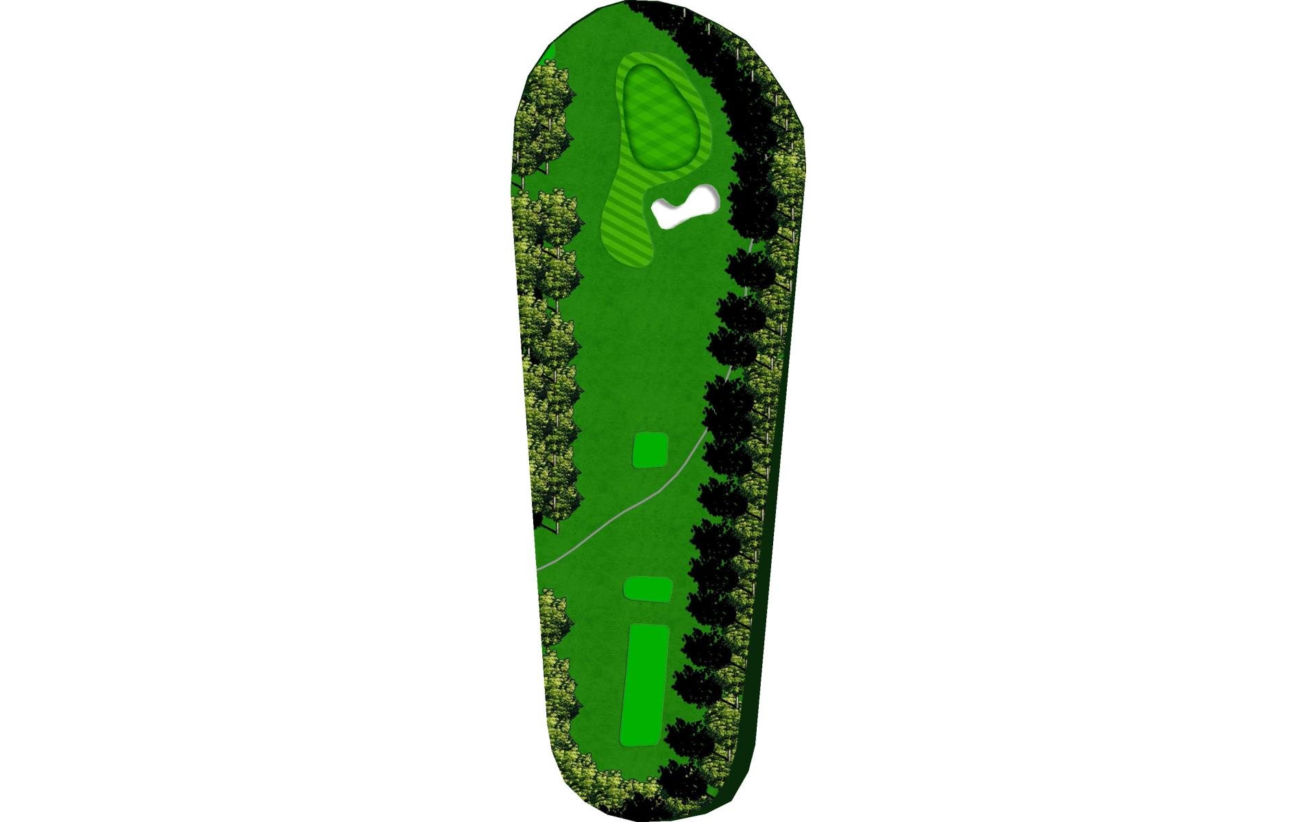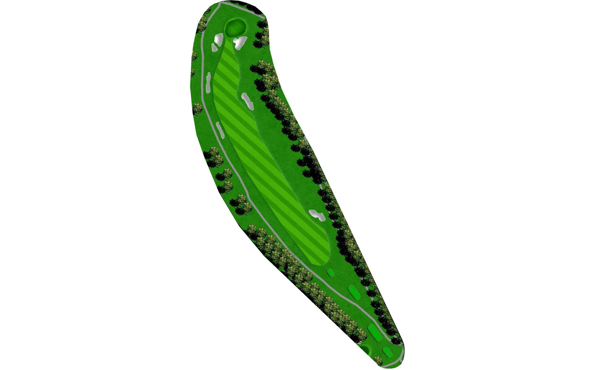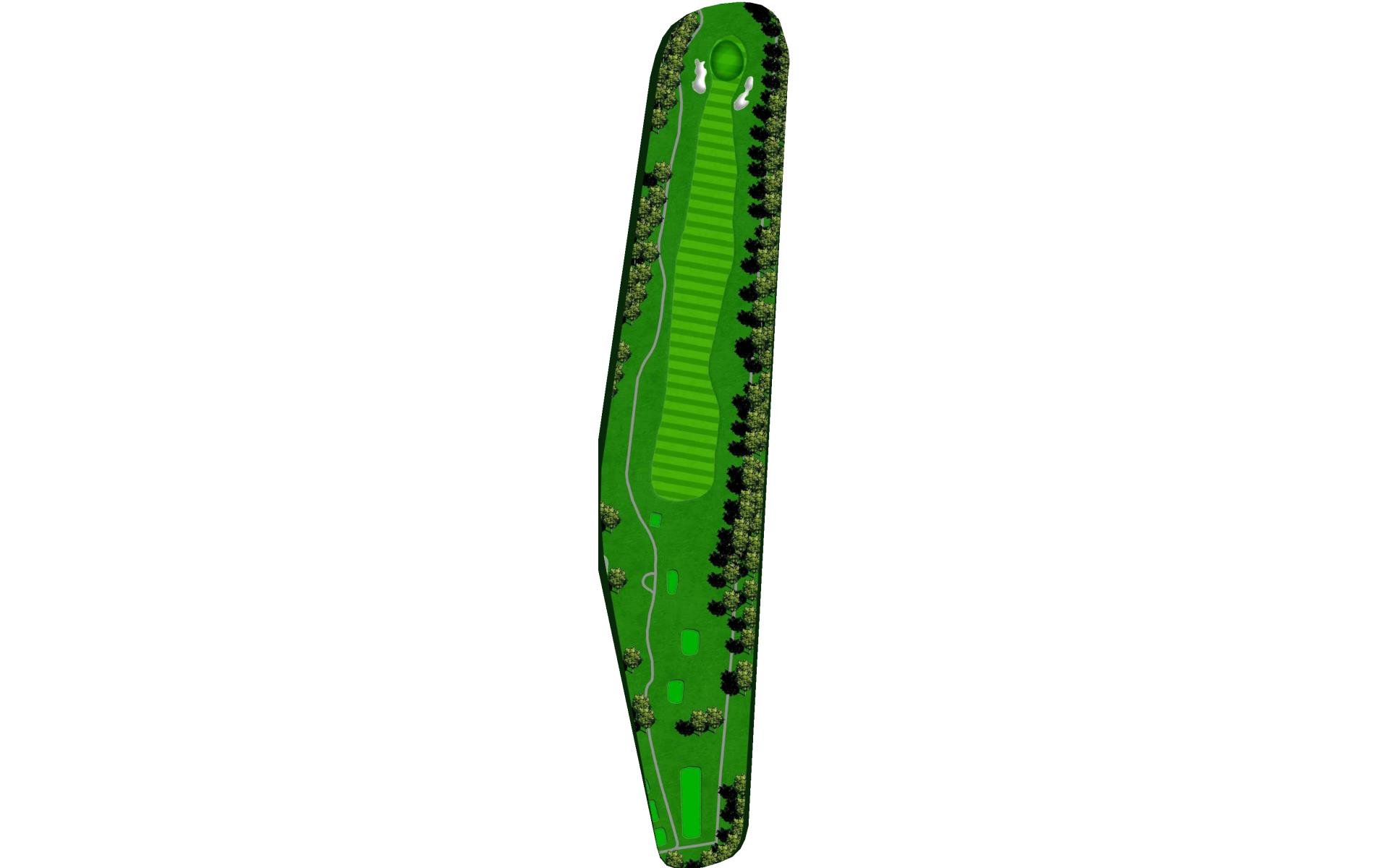 This hole slightly dog legs to the right and presents another quality par 4. Your tee shot has adequate area to land, but you will need to navigate a "chute" at the start. The green slopes severely from left to right allowing shots run up to reach even a back right hole location.