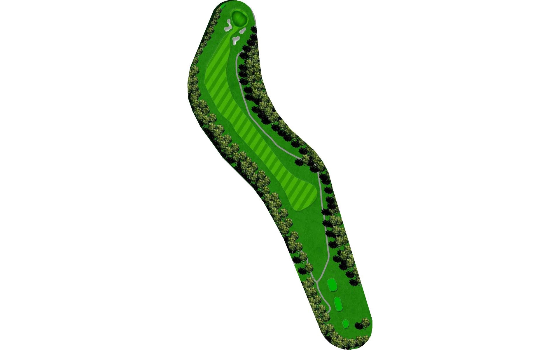 This hole slightly dog legs to the right and presents another quality par 4. Your tee shot has adequate area to land, but you will need to n…