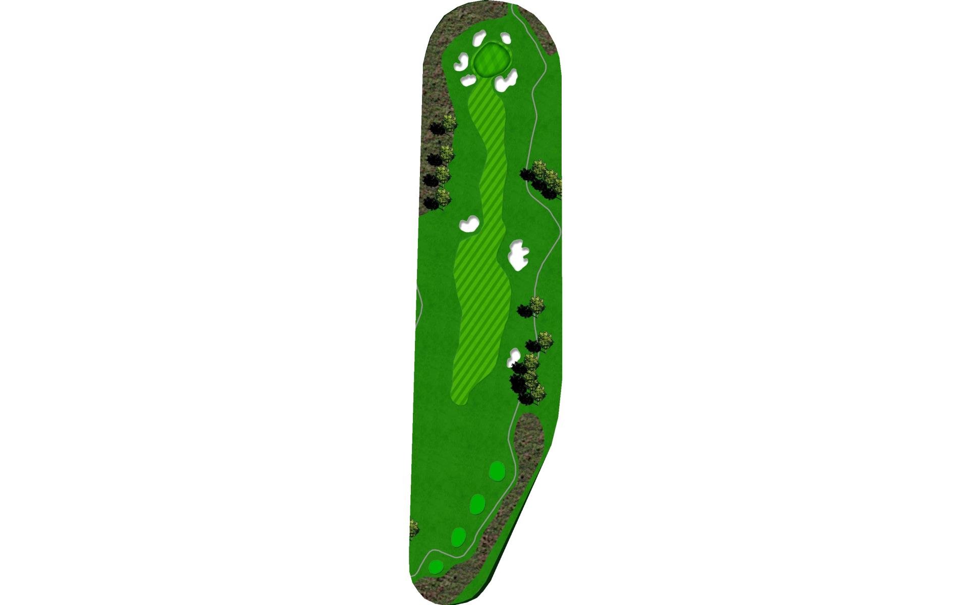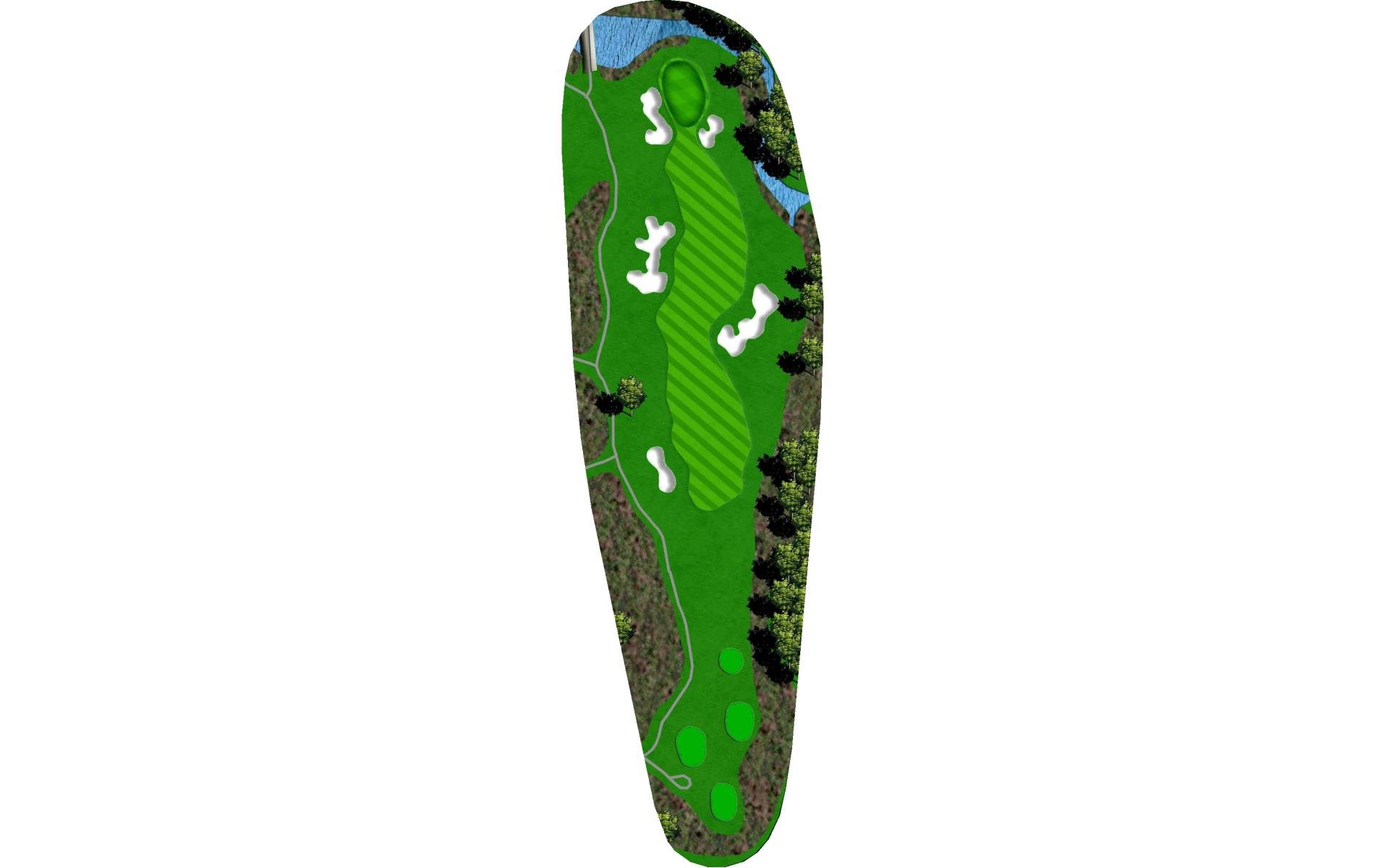 This long par 5 is flanked b the meandering stream. The water is right of the tee shot landing area, then crosses the fairway and must be c…