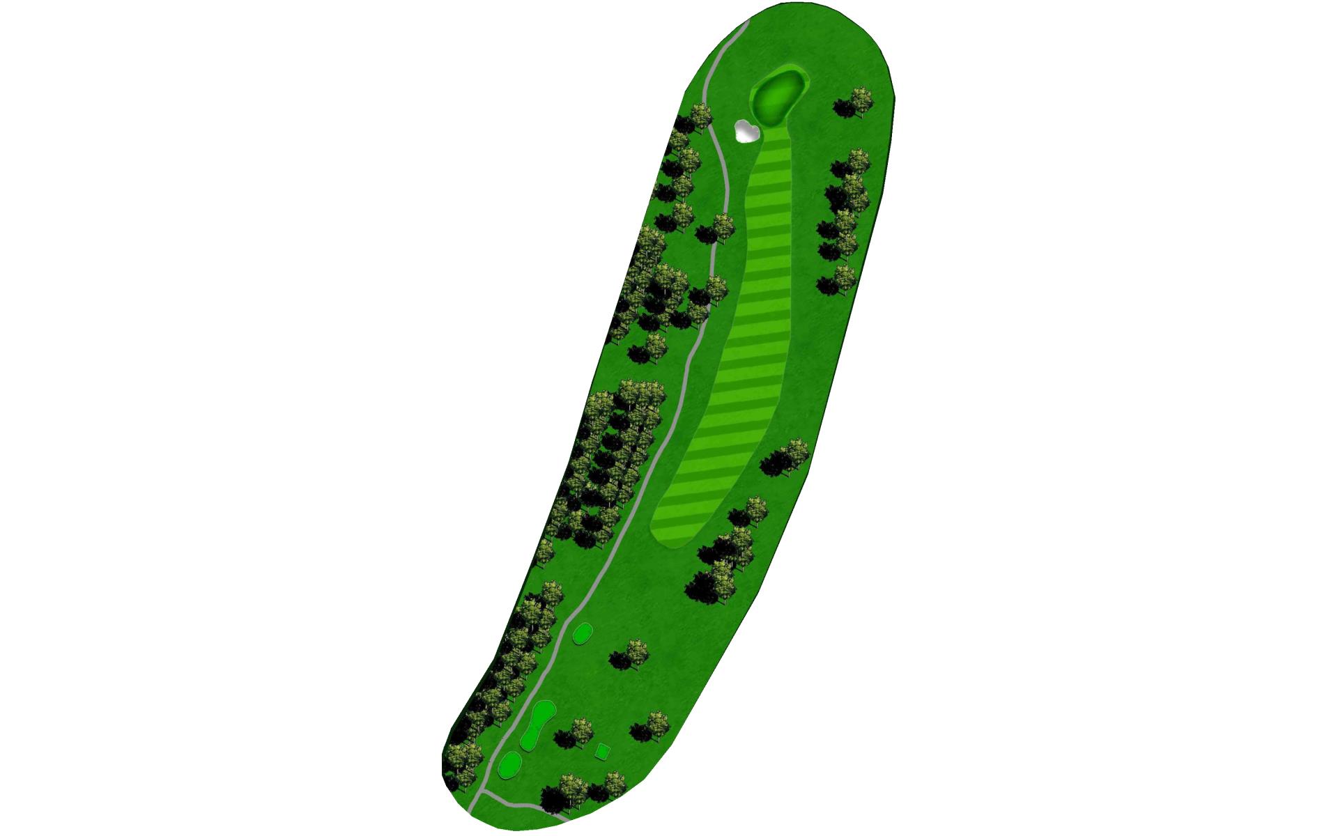 A medium length par 4 that dog legs slightly left. Tee shot should favor the right side of the fairway. A strong tee shot with some draw shape is ideal. The large tree on the left side of the hole will knock any tee shot too far left straight down into the rough. Favor the right side of the green with your approach shot. Any shot that lands left of the center of the green will release left quickly toward the creek. First bounce is typically firm, so play for some release.