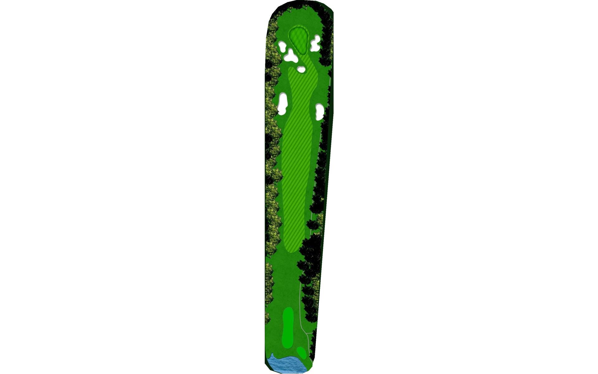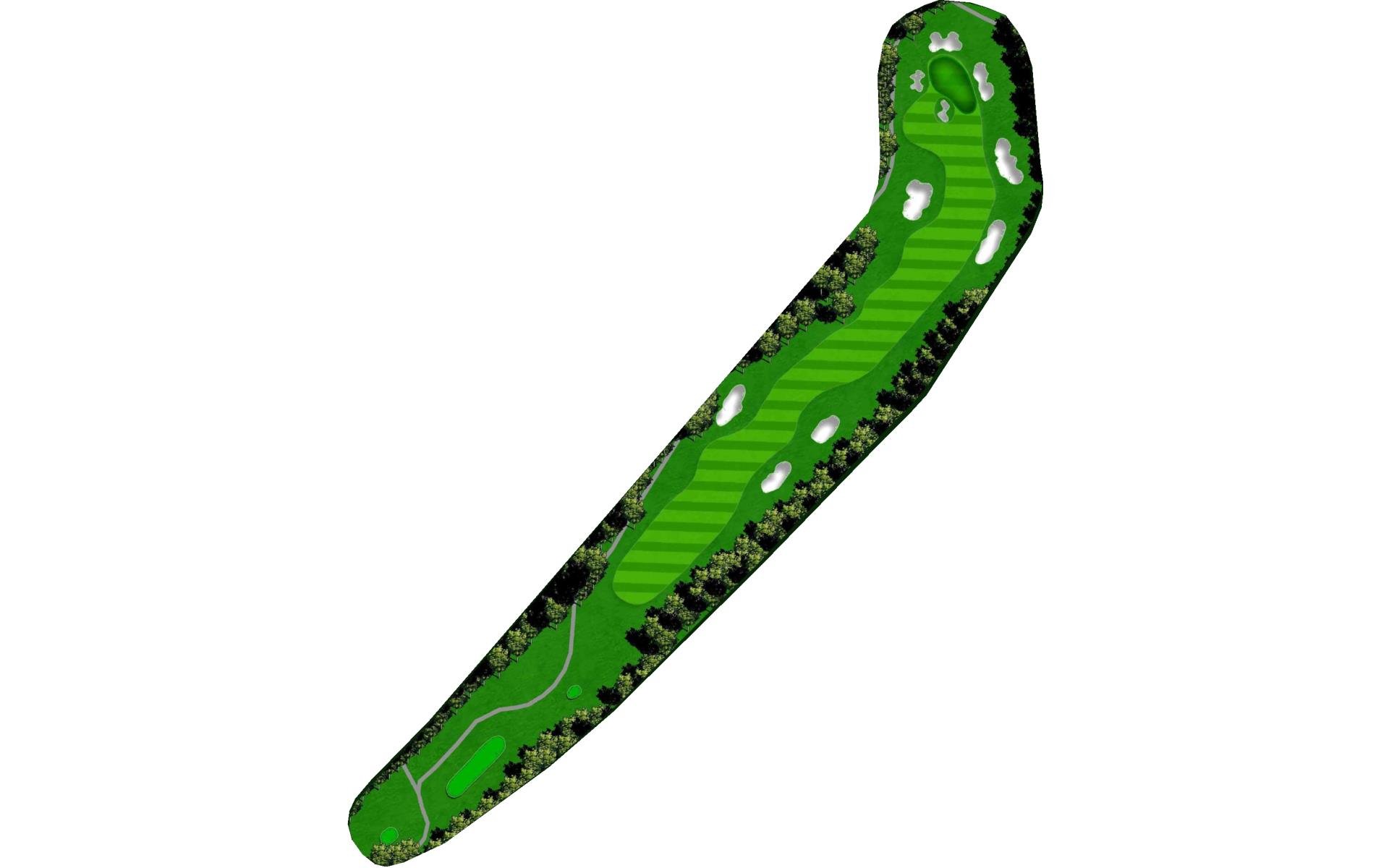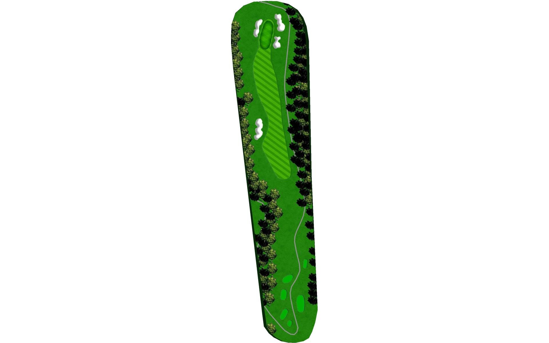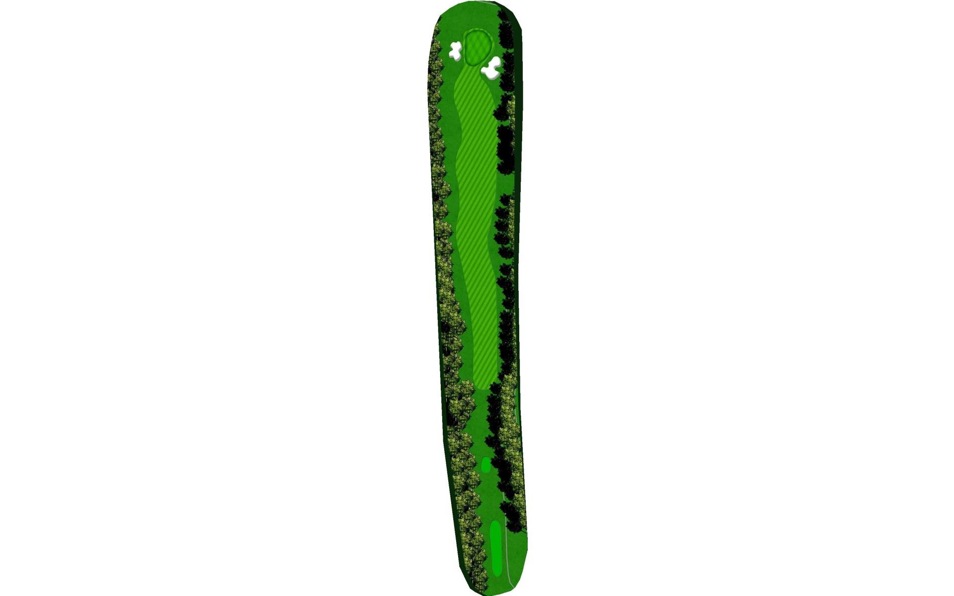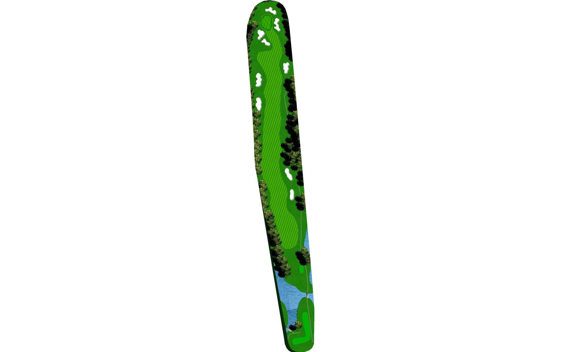 | Favor the left side of this narrow driving hole. Stay to the left of the green to avoid the large bunker on the right. |