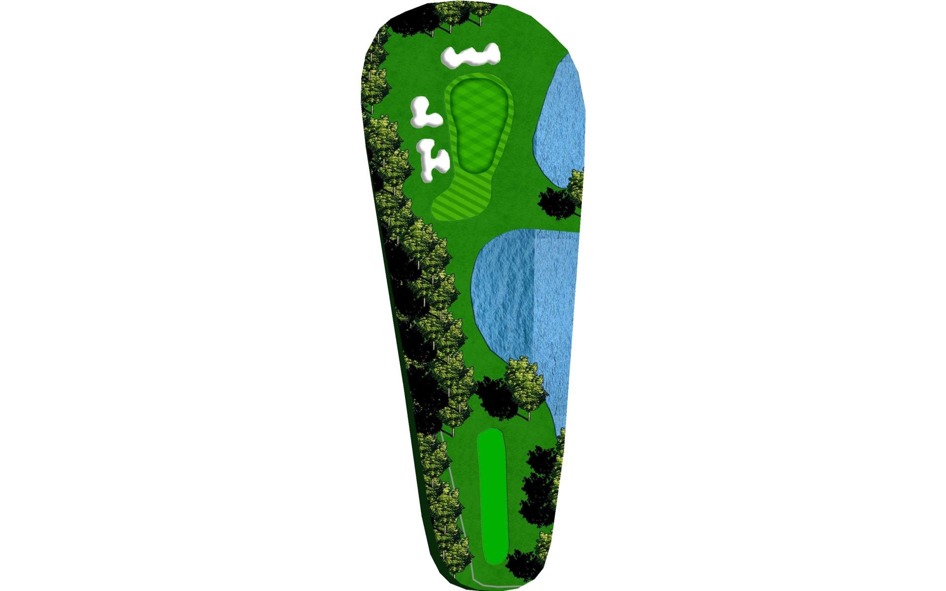 | A very challenging green that is well protected with both water and bunkers. Left is a safe miss. |